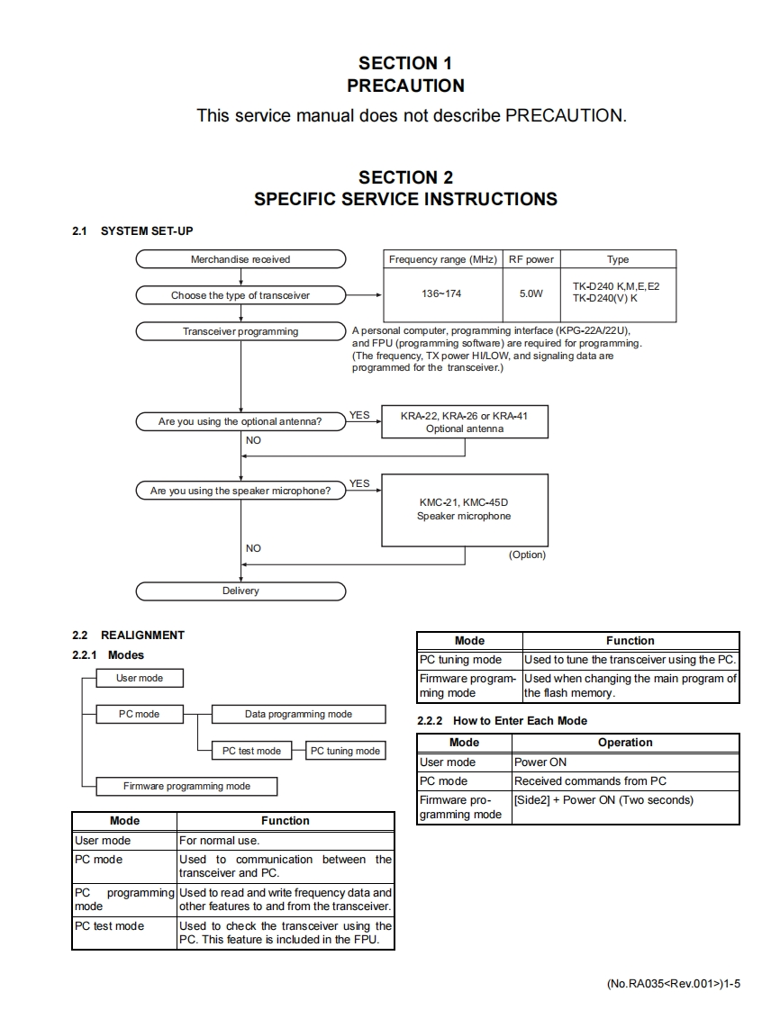 KENWOODSERVICE MANUALVHF DIGITAL TRANSCEIVERTK-D240,TK-D240(V)KENWOODTABLE OF CONTENTS1PRECAUTON.........................................................................1-52SPECIFIC SERVICEINSTRUCTIONS......................................................1-53DISASSEMBLY .......................................................................1-164ADJUSTMENT…………1195TROUBLESHOOTING.................1-46LFThis product complies with the RoHS directive for the European market.This product uses Lead Free solder.B5B-7218-00COPYRIGHT 2015 JVC KENWOOD CorporationNo.RA0352015/12