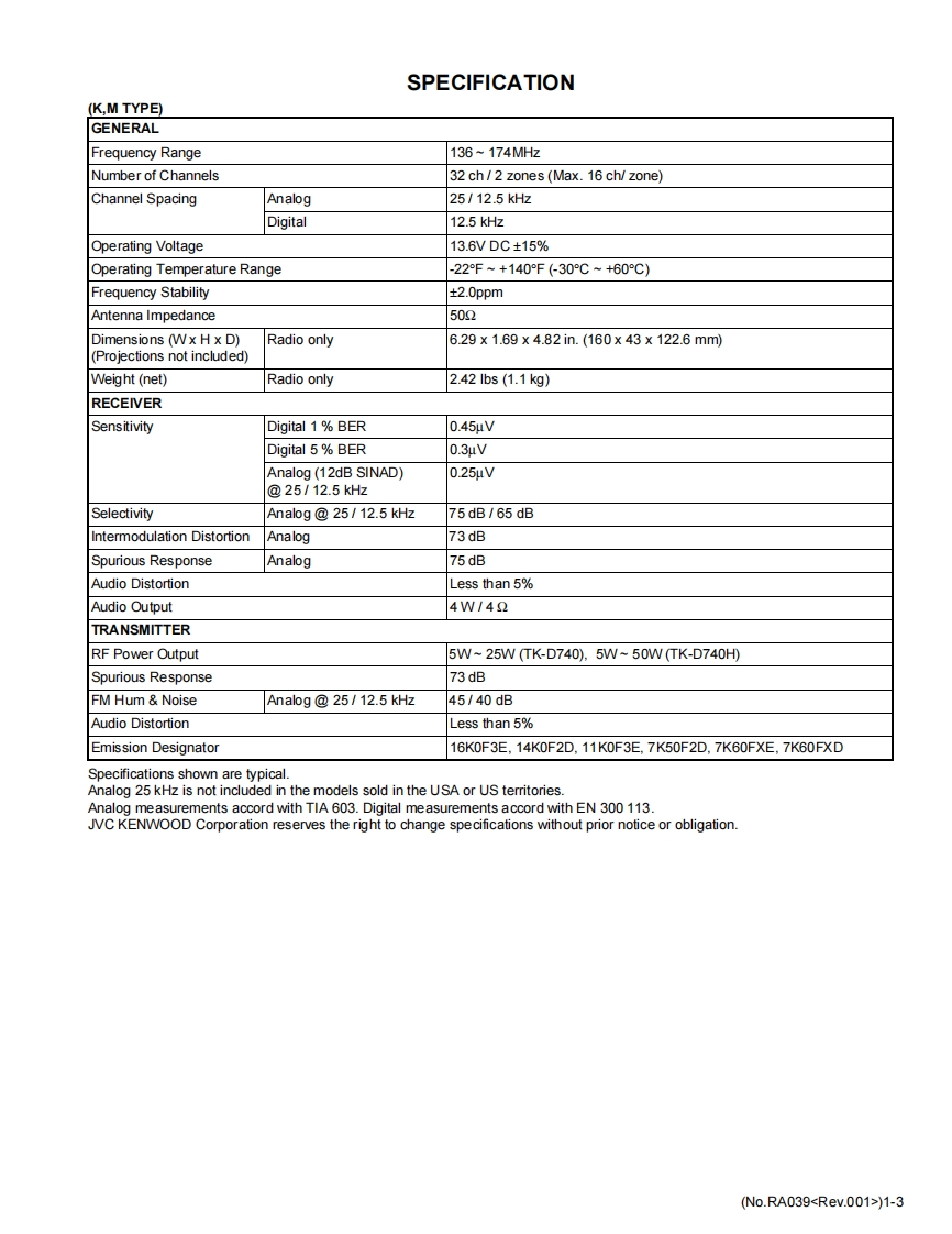 KENWOODSERVICE MANUALVHF DIGITAL TRANSCEIVERTK-D740H,TK-D740H(V),TK-D740AKBCKENWOODACCThe illustration is K,M types.TABLE OF CONTENTS1PRECAUTION....2……1-5SPECIFIC SERVICEINSTRUCTIONS......................................................1-5DISASSEMBLY1-234ADJUSTMENT ...1-26TROUBLESHOOTING.........1-51LFThis product complies with the RoHS directive for the European marketThis product uses Lead Free solderB5B-7222-00COPYRIGHT 2015 JVC KENWOOD CorporationNo.RA0392015/12