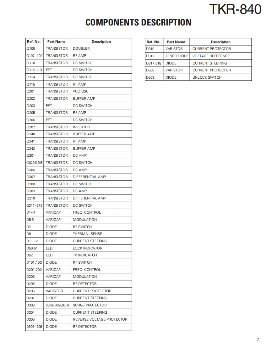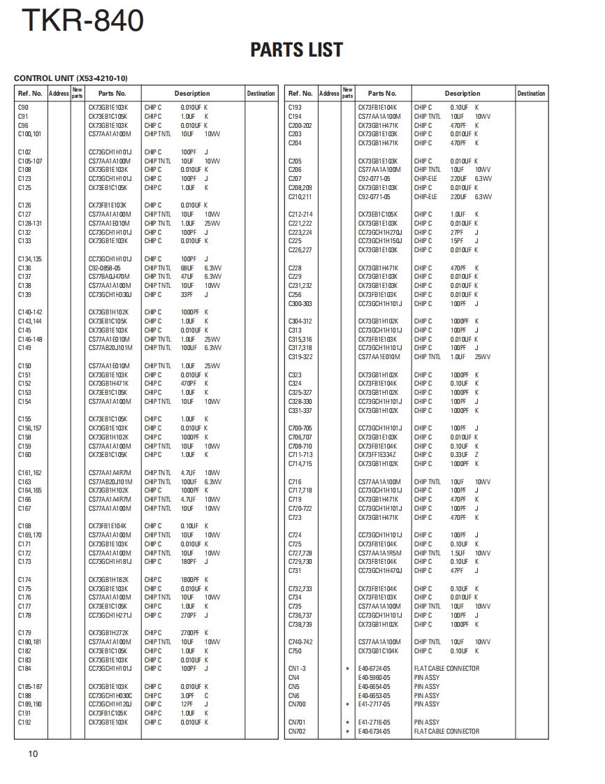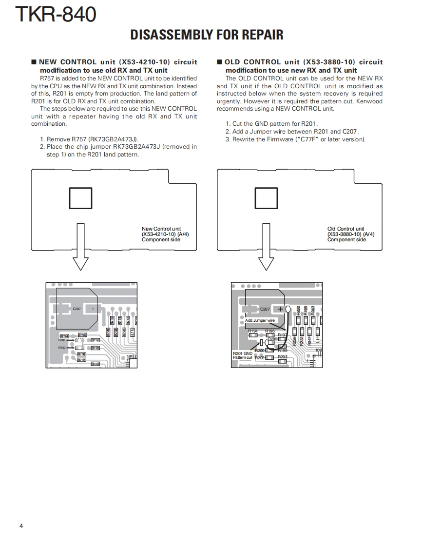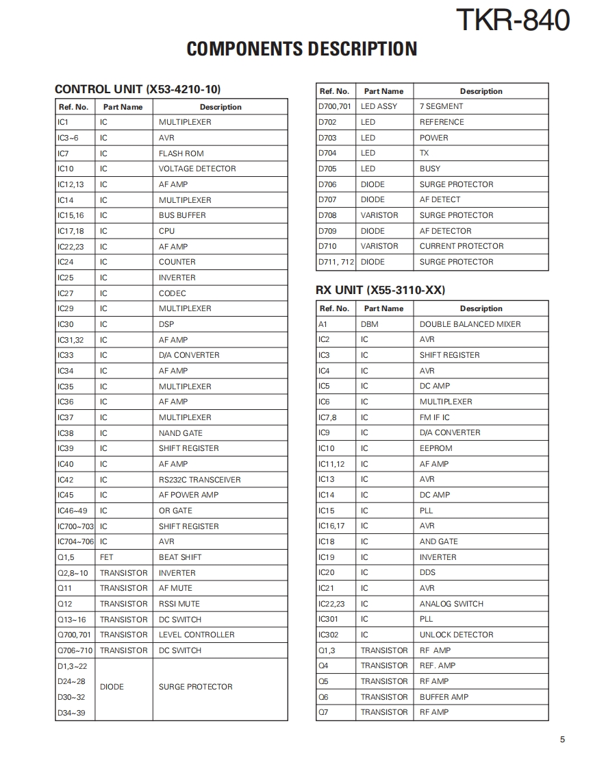 UHF FM REPEATERKENWOODTKR-840Kenwood CorporationSERVICE MANUALSUPPLEMENT2008-3 PRINTED IN JAPANB51-8829-00(S)625This service manual(B51-8829-00)applies to products with 907xxxxx or subsequent serial numbers.Refer to the TKR-840service manual(B51-8506-00)for any information which has not been covered in this service manual.Panel (Front)LEDPUSH KNOB(TEST)(A62-0726-13)(B30-2197-05)(K29-3002.14)4VoKENWOODLEDLED ASSYMODULAR JACK(B30-0864-05)(LA301DB(N))(E58-0526-05)】LEDKNOB (VOL)(B30-2198-05)K29-4539-04)CONTENTSGENERAL2PC BOARDDISASSEMBLY FOR REPAIR..............2C0NTR0 L UNIT(X53-4210-10)28COMPONENTS DESCRIPTION......5.RX UNIT(X55-3110-XX)....36PARTS LIST.8TX UNIT(X56-3130-XX040EXPLODED VIEW..........24SCHEMATIC DIAGRAM.....48PACKING.26SPECIFICATIONS.............BACK COVERSEMICONDUCTOR DATA..............27LFThis product uses Lead Free solder.