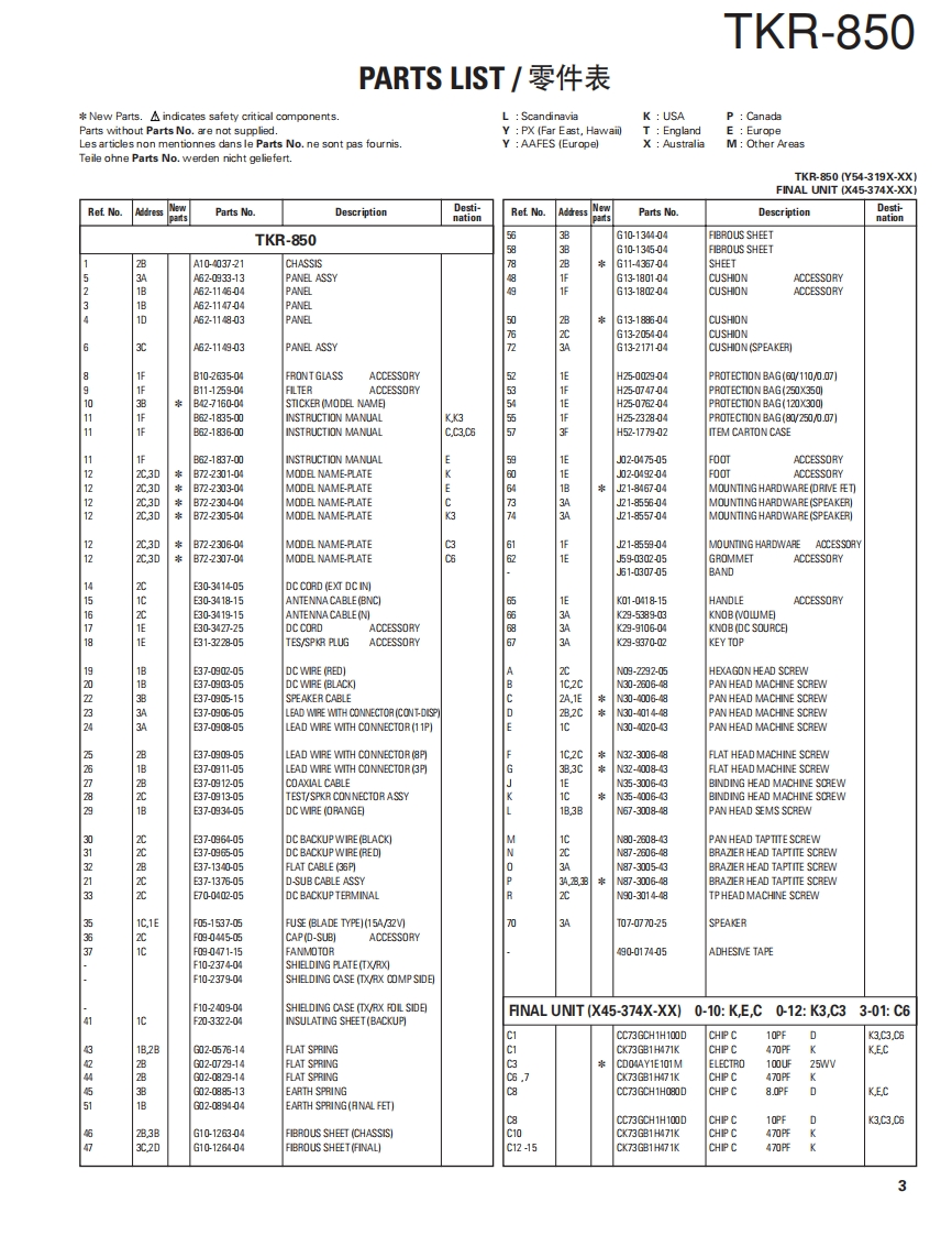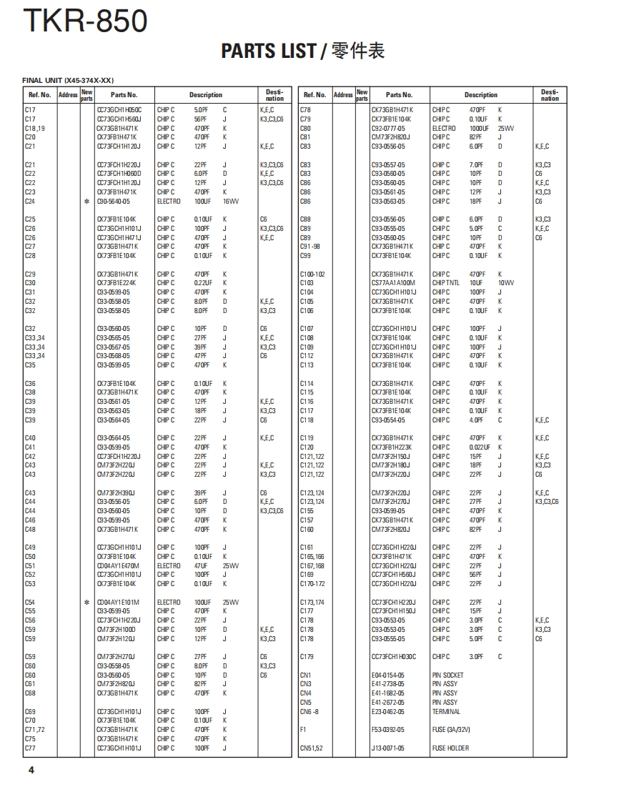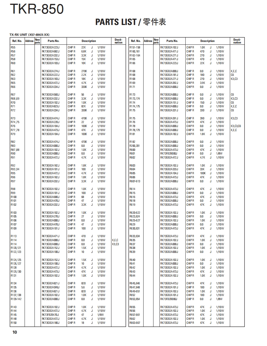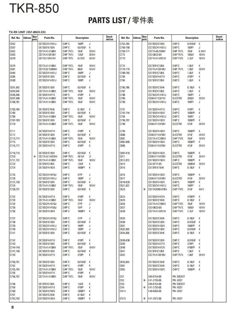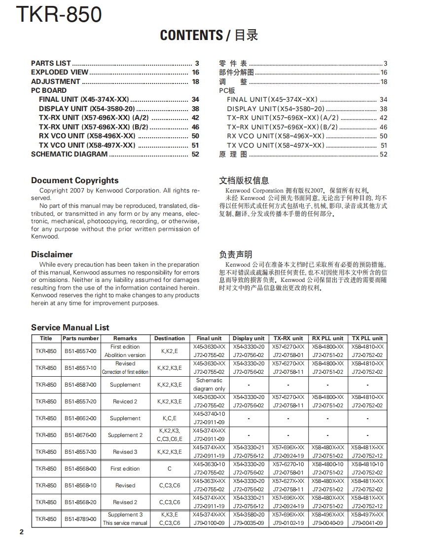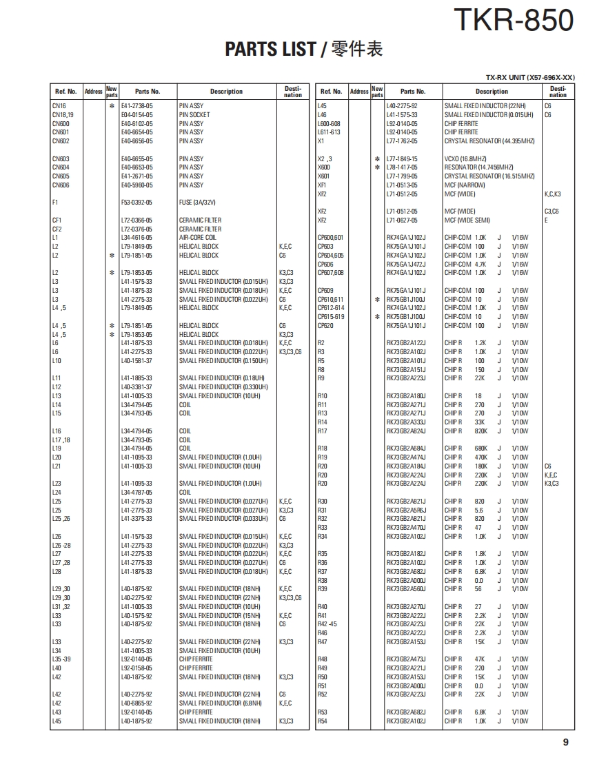 UHF FM REPEATER/UHF调频中继台TKR-850KENWOODKenwood CorporationSERVICE MANUAL/维修手册SUPPLEMENT IIL/追补版Ⅲ2007-5 PRINTED IN JAPANB51-8789-00(N)1098This service manual is applied from the following serial本维修手册适用于下列序号,numbers.K:809xxxxx-,K3:809xxxxx-,E:801xxxxx-,K:809xxxxx-,K3:809xxxxx-,E:801xxxxx-,C:809xxxxx-,C3:810xxxxx-C6:809xxxxxC:809xxxxx-,C3:809xxxxx-,C6:809xxxxx-Panel assyKnob(Volume)Knob (DC source)(A62-.1149-03)(K29-5389-03)(K29-9106-04)KENWOOD⑧88©oKey topModular jack(K29-9370-02)(E58-0522-05)Fuse(Blade,15A/32V)(fF05-1537-05)X2Antenna cable (N)Antenna cable (BNC)(E303419-15)(E30-3418.15)D-sub cable assyDC cord (Ext DCin)(E37-1376-05)(E30-3414-05)TEST/SPKR connector assyDC backup terminalE37-0913-05)(E70-0402-05)无铅焊接通信产品保护环境建伍领先△注意:本产品是无铅化焊接产品在维修时请使用无铅焊锡和相应的焊接工具详细事项请访问如下网址了解:http://www.kenwoodhk.com.hk/LFThis product complies with the RoHS directive for the European market.This product uses Lead Free solder.