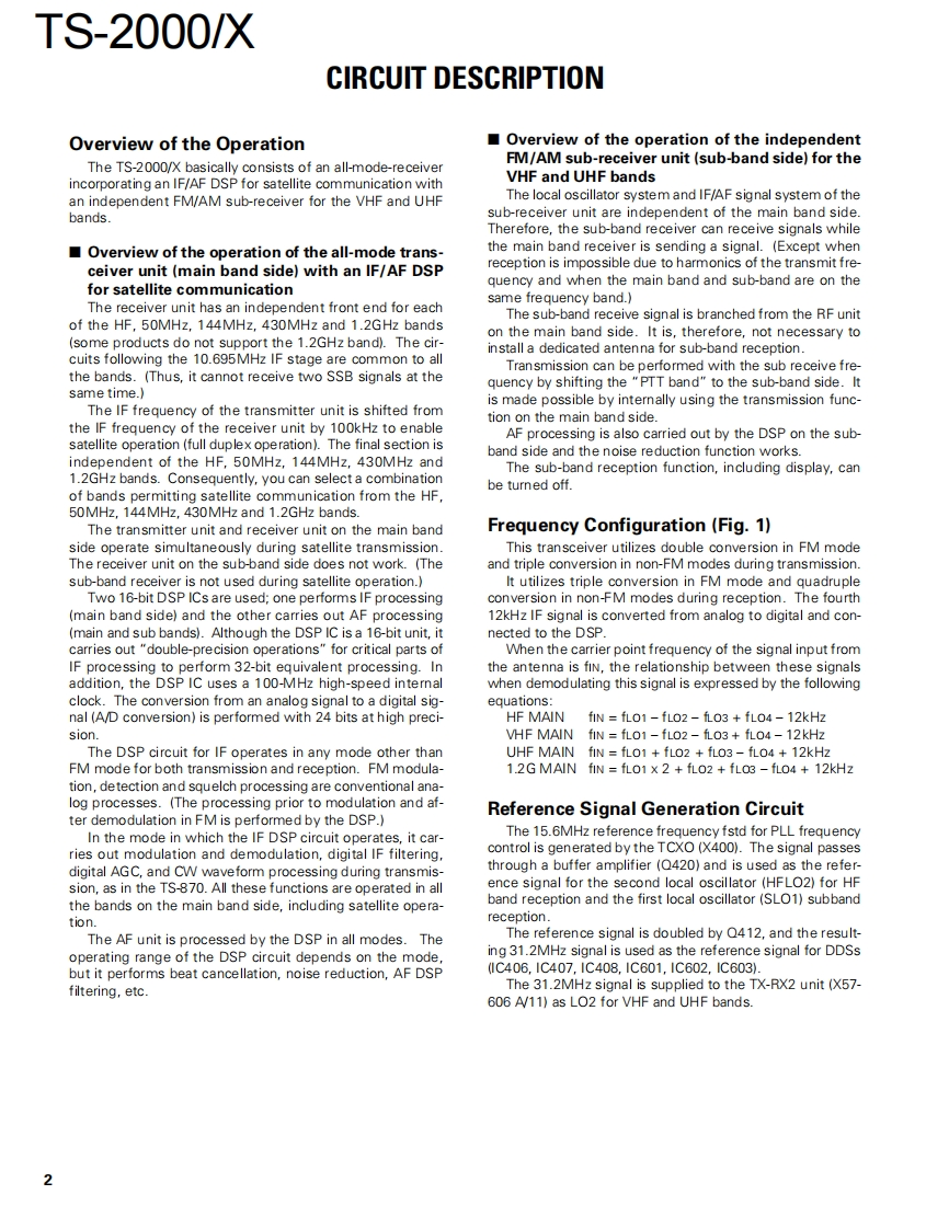 ALL MODE MULTI-BAND TRANSCEIVERTS-2000/XKENWOODDownloaded by☐SERVICE MANUALRadioAmateur.EU2000-12 PRINTED IN JAPANB51-8558-00(N)889Phone jack(9P)Cabinet(Upper)Front glassKey top(E11-0438-05)(A01-2176-01)(B10-2608-02)(K295394-12)Key topKnob ringKnobKnob(K29-5391-02)】(K29-5395-04)(K29-5399-03)×3(K29-5396-03)X2KENWOOD42d8004y5.05000KnobKey topKey topFoot(K29-5397.13)×2(K29-5392-12)(K295393-12)(J02-0442-04)×2RF coaxial receptacle (Round)FootKnobKnob(E06-0858-15)(J02-0440-04)(K21-1104-03)(K295398-03)×3CONTENTSCIRCUIT DESCRIPTION..........................2DISPLAY UNIT(X54-3320-00)....151DESCRIPTION OF COMPONENTS .........24CONTROL UNIT (X53-391X-XX).......155SEMICONDUCTOR DATA......................34TX-RX1UNIT(X57-605X-XX)....169PARTS LIST.............51TX-RX 2 UNIT (X57-606X-XX)...........186EXPLODED VIEW................93TX-RX3UNIT(X57-6070-00).....209PACKING97BLOCK DIAGRAM.........223ADJUSTMENT.......98LEVEL DIAGRAM...229TERMINAL FUNCTION.............124MC-52DM.....e..e233VIRING…133UT-20.235PC BOARD VIEWS CIRCUIT DIAGRAMSRC-2000.235FILTER UNIT (X51-315X-XX)..............135ARCP-2000…235FINAL UNIT (X45-360X-XX)..............137236