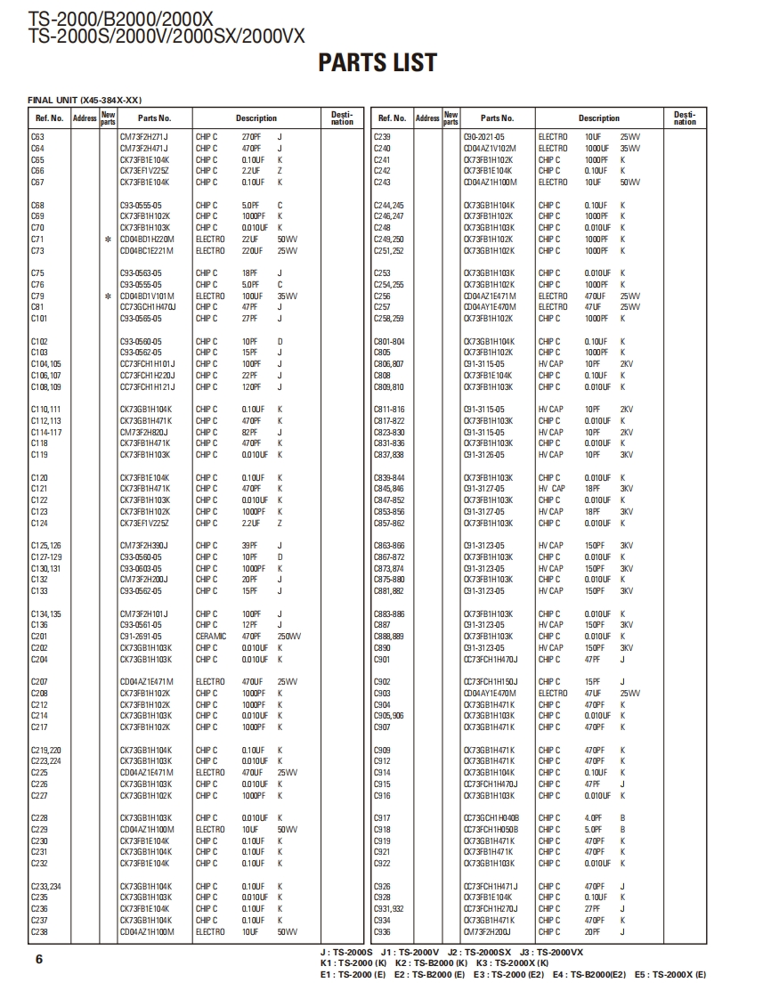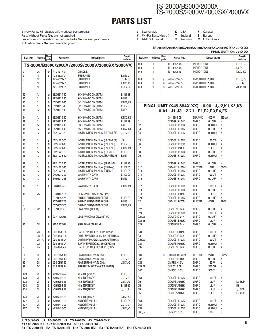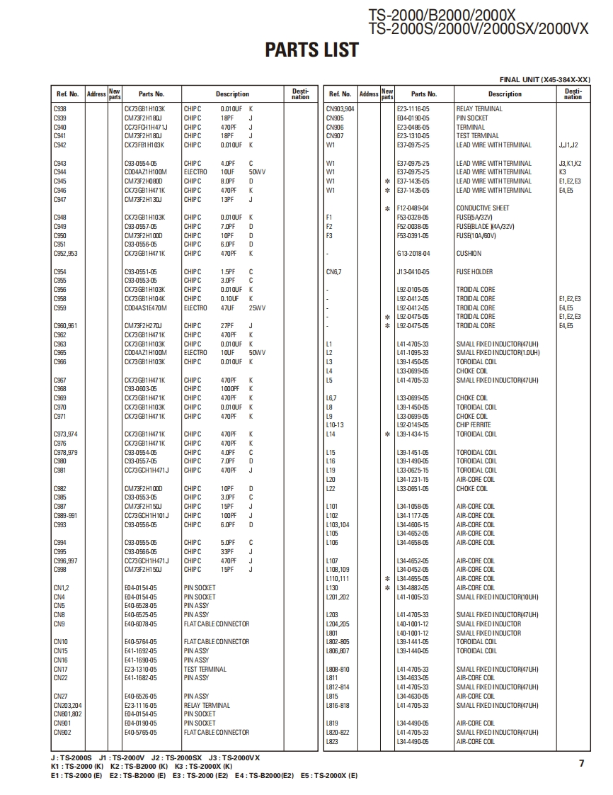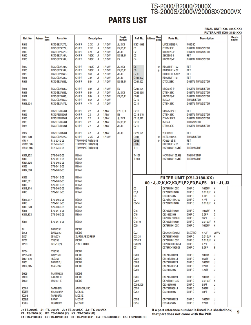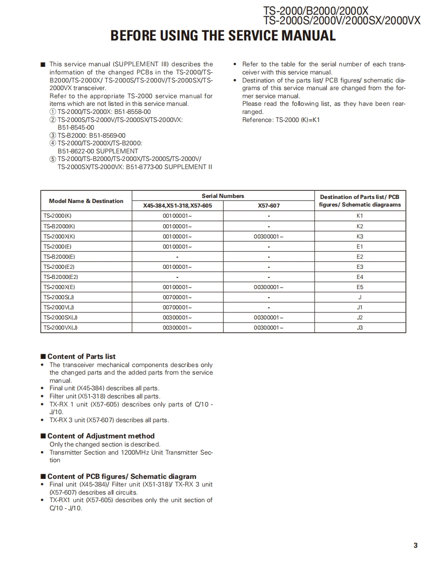 ALL MODE MULTI-BAND TRANSCEIVERTS-2000/B2000/2000XKENWOODTS-2000S/V/SX/VXKenwood CorporationSERVICE MANUAL SUPPLEMENT III2008-8 PRINTED IN JAPANB51-8846-00(N0242TS-2000/2000X/2000S/2000V/2000SX/2000VXPhone jack(9P)Cabinet(Upper)Front glassKey top(4 key)(E11-0705-05)(A01-2176-21)(B10-2727-02)(K29-5394-22)Key top (8 key)Knob ring (Main dial)Knob (Outside)Knob (RIT,MULTI)(K29-5391-12)(K29-5395-04)(K29-5399-03)X3(K29-9419-03)x2KENWOODHw1-2知ULTT HANCPR T4-o9回雪F42dG00145.05000USBKnobKey top(25 key)Key top (18 key)Foot(Front)(K29-5397-13)×2(K29-5392-22)(K29-5393-22)(J02-0442-04)×2MIC connector (8P)Foot(Front)Knob (Main dial)Knob (Inside)(E06-0858-25)(J02-0440-04)(K21-1104-03)K29-5398-03)×3TS-B2000Phone jack(9P)PanelDressing plateCabinet(Upper)(E11-0705-05)(A62-0916-03)(B03-3608-03)(A01-2176-21)KENWOODHF/WP/UHF ALLQMIC connector(8P)Foot (Front)(E06-0858-25)(J02-0442-04)×2LFThis product complies with the RoHS directive for the European market.This product uses Lead Free solder.