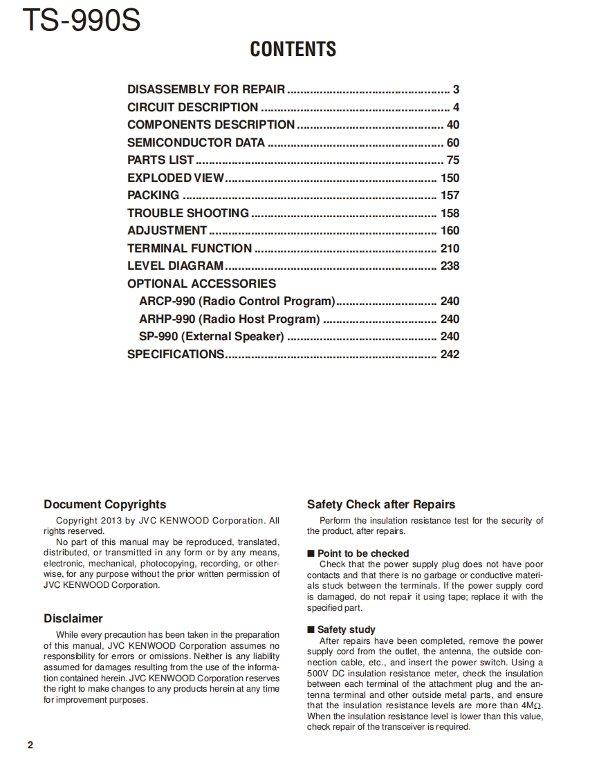HF/50MHz TRANSCEIVERTS-990SKENWOODEXTERNAL SPEAKERJVCKENWOOD CorporationSP-990SERVICE MANUAL2013-4 PRINTED IN JAPANTEXT EDITIONRQ004(Y)185(B53-7036-00)Button knobButton knob(F1)Button knob(SCOPE)KnobKnob (Intside)K29-9571-02☑K29-9518-12K29-9573-02(K29-9579-02x2(K29-9390-03x4BadoButton knob (F4)Button knob (F5)Button knobFront alassKnob (Outside)B43-0336-04)K29-9521-12K29-9522-12)(K29-957412x7(B10-0611-03)(K29-9596-03x49682Button knob(F2)Button knob (F6)LCDassyPanelBadge(K29-951912)K29-9523-12)B38-0944-05(A62-1194-11(B43-167-03Button Knob(K29-9515-02D卫Button knob5▣K29-9570-02心Button knob(K29-9516-02)Button knob-Button knob(K29-9517-02)可K29-9575-02x25当回当回8赔2Rectangular-Button knob(ILLUMI)882(K29-9576-02x13RF coa对al recept怕de(Round)(E06-0858-25Button knob (FBKKnob (Outside)Knob (Sub knob)Knob (Outside)Button knob (ESC)K29-9527-02)K29-9596-03x521-1111-13(K29-9581-13x2(K29-9572-02Button knob(O闪9628o0Knob (IntsidelKnob (Main knob)Knob (Outside)Foot (Front)k29-9390-03x5(21-1109-13K29-9578-13(J02-1310-02x2K29-9525-02Button knob (F3)Button knob (MONI)Button knob (F7)Knob (Intside)Knob (Intside)(K29-9520-12)(K29-9528-02(K29-9524120K29-9577-03(K29-9580-03x2Lead wire with connector3.5D phone jack (3P)(EXTAT)(E37-1634-05)(E11-0455-05)66.2沟2际20162得Electronic circuit moduleSub socket(D)W02-3765-05(E58-0529-05⑧@6@i@module(W02-3778-05)p自。⊙⑧向DIN socket3.5D phone jack (3P)Optic receiving moduleRectangular rece ptacleModular jack(E56-0408-15月(E11-0455-05W02-3779-05(E58-054805(E58-054405Foot (Rear)DIN'socketPin jackRectangular receptade3.5D phone jack (3P)3.5Dphone jack (3P)(J02-1312-03x2(E08-0752-15)(E13-0166-25)(E58-0537-05)(E11-0455-05(E11-0414-15LFThis product complies with the RoHS directive for the European market.This product uses Lead Free solder