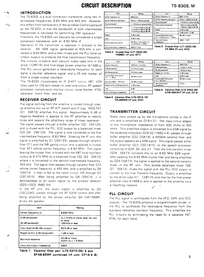 REVISED EDITIONKENWOODSERVICE MANUALModel TS-830S,M(M:EXCEPTUSA MARKETSP-230,VFO-230,AT-230,DS-2(W)TYPE ONLYSP.230TS-830SVF0-230AT-230CONTENTSTS-8305,MVF0-230SPECIFICATIONS2BLOCK DIAGRAM...45CIRCUIT DESCRIPTIONSPECIFICATIONS46AC VOLTAGE CONVERSIONCIRCUIT DESCRIPTION46INSIDE VIEWS.....10PC BOARD VIEWS49PC BOARD VIEWS11PARTS LIST.51PARTS LIST.ADJUSTMENTS............53PACKING......26PACKING53DISASSEMBLY......27AC VOLTAGE CONVERSION56ADJUSTMENTS.32SCHEMATIC DIAGRAM...57LOCATION OF ADJUSTMENTS42AT-230LEVEL DIAGRAM............4458TS-830M SCHEMATIC DIAGRAM61DS-2....60TS-830S SCHEMATIC ABBREVIATION62sP-230BACK COVERTS-830S SCHEMATIC DIAGRAM63BLOCK DIAGRAM..64HF SSB TRANSCEIVER