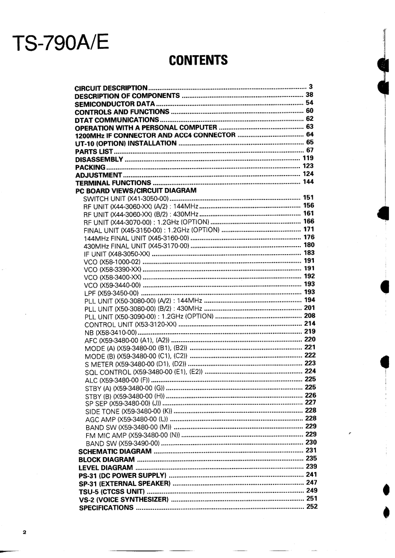 ALL MODE TRANSCEIVERTS-790A/EKENWOODSERVICE MANUALC1989-1 PRINTED IN JAPANB51-3723-00(0)839Knob (F.LOCK,144ATT,1200ALT)(K29-3002-14)×3Knob (POWER)(K29-0757-04)Metallic cabinet (Up side)Knob (MUTE,RIT,AGC FAST,NB)Badge(A01-1045-01)K29-3108-04)×5{B43-1095-14):TS-790AFront glass{B43-1096-14}:TS-790E(B10-0700-03):片420在OOD8P metal receptacle (MIC)Knob (SQL,IF SHIFT,RF PWR)Foot (Outside)(E06-0858-15)K29-3110-04}×4J02-0423-04)×2Foot (Inside)Phone jack (PHONES)Knob (AF,RIT,MIC)(J02-0424-04)×2(E11-0431-05)Knob (MAIN)(K29-3109-14)×4Knob (VOICE,PROC,ALC/RF)(K21-0784-02)K29-3001-14)×3BCKnob (OFFSET)Knob (TONE)Knob (CALL)Knob (FM/AUTO】Knob (MAIN)Knob (SUB)(K27-3002-04)(K27-3005-04K27-3004-04)(K27-3016-04)K27-3019-04)(K27-3023-04)Knob (SAT)Knob (CTCSS)Knob (STEP)Knob(USB/LSB)Knob (A/B)Knob (MAIN SUB)(K27-3006-04)K27-3003-04):TS-790AK27-3007-04)K27-3017-04)(K27-3020-04)(K27-3022-04)Knob (ALERT)Knob (CW/N)Knob (VFO/M)Knob (A=B)(K27-3030-04):TS.790g{K27-3018-04}K27-3024-04}(K27-3021-04}Knob (REV)Knob (SPLIT)Knob (SCAN)Knob (CH.Q)Knob (BAND)Knob (MHz)(K27-3008-04)(K27-3009-04)K27-3010-04K27-3025-04)(K27-3025-04)(K27-3025-04)Knob (M>V)Knob (M.IN)Knob (CLEAR){K27-3011-04)K27-3012-04}K27-3013-04)Knob (F)Knob (ENT){K27-3014-04){K27-3015-04)Photo is TS-790A.Caution1.Please connect the dummy load to ANT connector,whenadjust a transmit output.Caution2.In case of repair in the 1.2GHz final unit (option)afterrepaired a radio conform the receiver sensitivity.