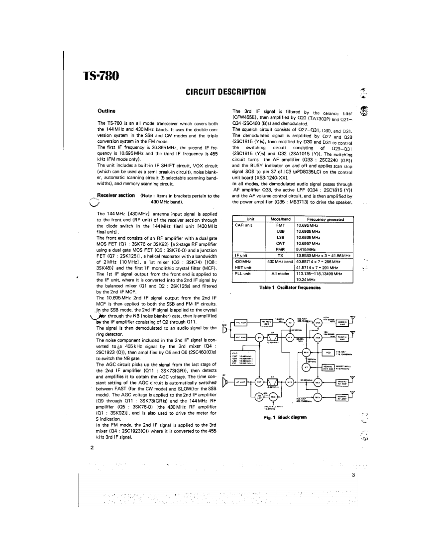 REVISED EDITIONKENWOODSERVICE MANUALTS-780SP-71V-UHF ALL MODE DUO BANDERR3150IICONTENTSRCUIT DESCRIPTION......................2OPTION (DC CABLE).......................11CW SHIFT (J253055-04......27PARTS LIST……12430 HET UN1T(X50-1790-00)......28DISASSEMBLY ..........................TX UNIT(X561420-00)........28PACKING...............................30PC BOARD VIEWSCONTROLUNIT(X53-1240-XX).............29LEVEL DIAGRAM.,30SWITCH UNIT (X41-1370-XX)...............23ADJUSTMENT.,··31ENC0 DER UNIT (W02-0324-05)...23REFERENCE DATA.·,,···,,48AVR UNIT(X43-1420-00)....24BLOCK DIAGRAM.........................49RF UNIT(X441470-00,...,,··.49144 FINAL UN1T(X451200-00)..:·CIRCUIT DIAGRAM.25430 FINAL UNIT(X45-1210-00.·IF UNIT ......50CAR UNIT(X501780-00)..·SCHEMATIC DIAGRAM511FUNT(X481350XX)..·2CIRCUIT DIAGRAM26PLL UN1T(X50-1770-00),....,···CONTROL,PLLand ENCODER..............52.27SPECIFICATIONS................BACK COVER