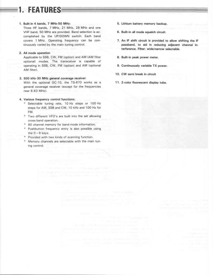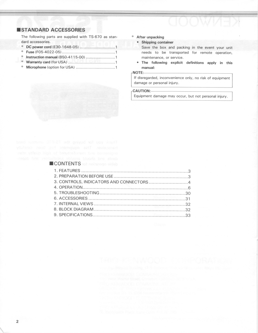 KENWOODTS-670ALL MODE OUAD BANDERINSTRUCITON MANUAL502500Thank you for buying the TS-670 amateur bandtransceiver.This equipment has been carefullyengineered and manufactured to rigid quality stan-dards and should provide satisfactory and depen-dable operation for many years.2月022943