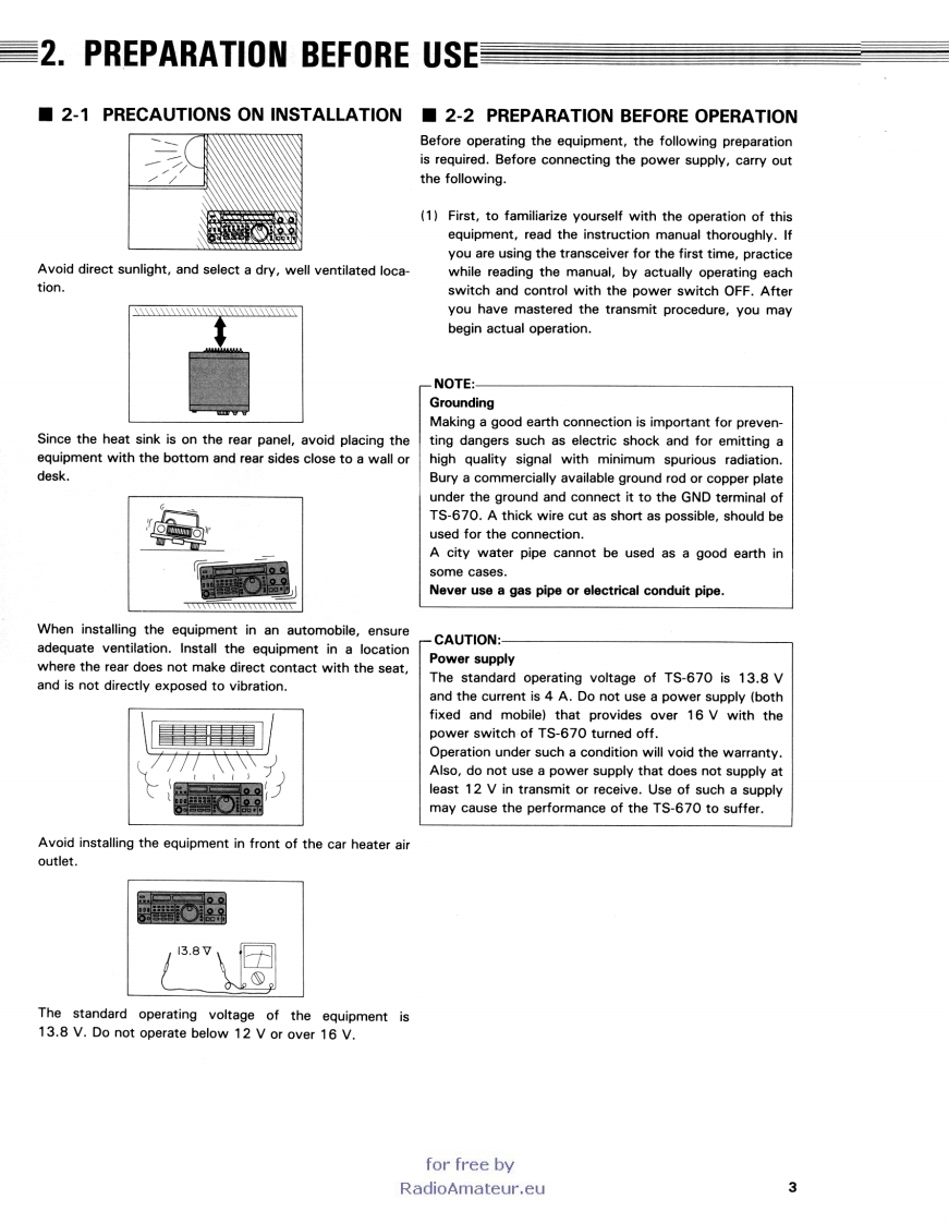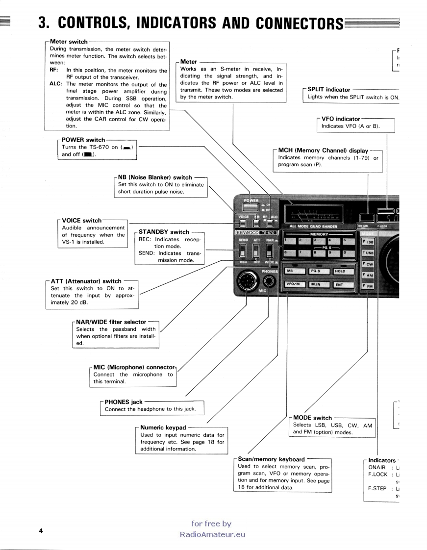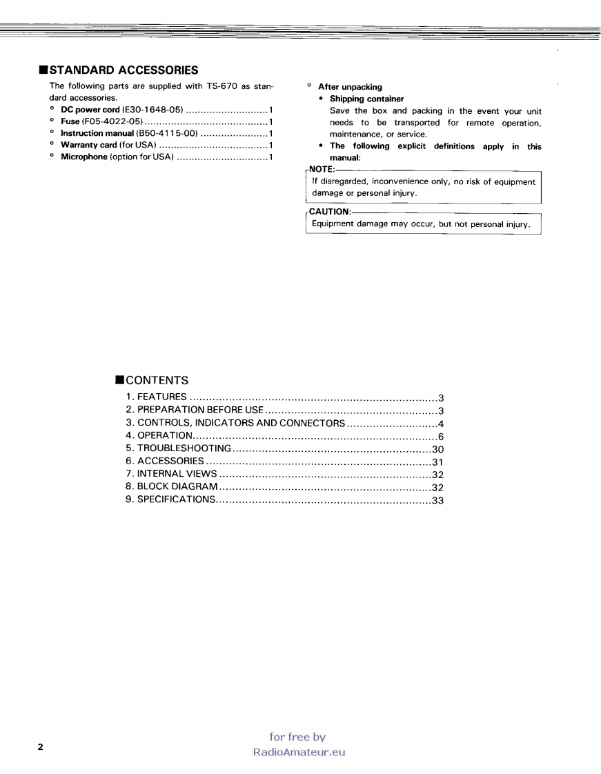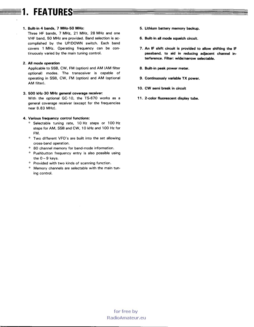 KENWOODTS-670ALL MODE QUAD BANDERINSTRUCITON MANUALThank you for buying the TS-670 amateur bandtransceiver.This equipment has been carefullyengineered and manufactured to rigid quality stan-dards and should provide satisfactory and depen-dable operation for many years.for free byRadioAmateur.eu