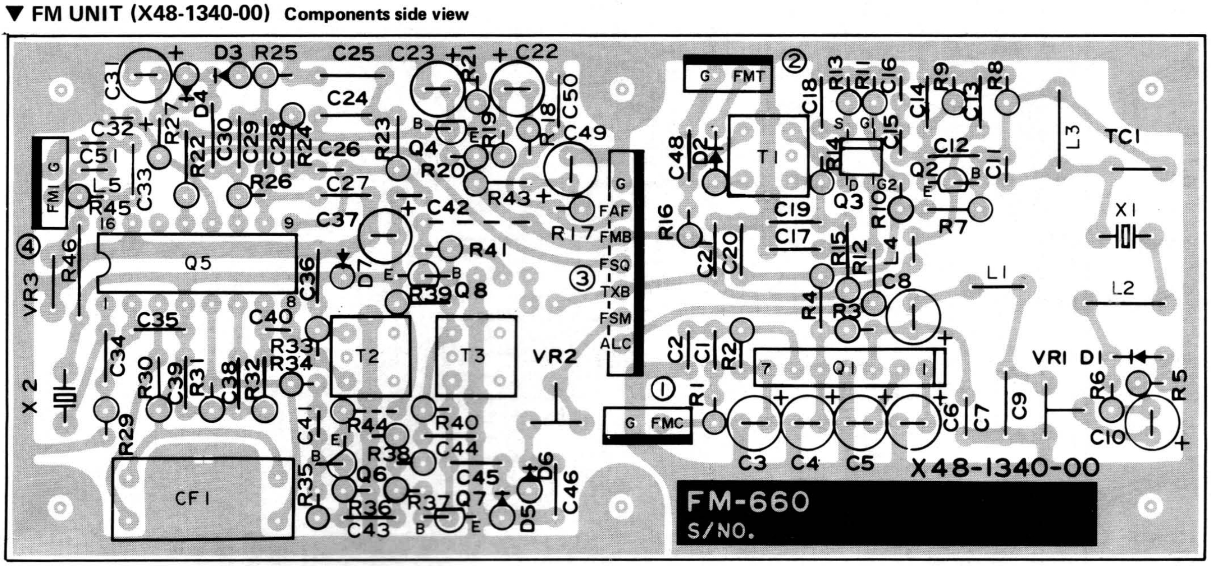 VSWITCH UNIT (X41-1340-00)Components side viewRIT/IF(D/8)R32SHIFTX41-1340-00本8本8本8GGHo鸦S4.LOC2SA1015S32SC9452SC1815815)2SC2240MODES>RITSQUELCH/FUNCTIONS6S9RF/ALOGNDS7X41-1340-00AF/RF(A8)SCANSTBYTransistor terminalindicationJ15S12HOLD02U148s11MIC/CARs10VFO/MEMOX41-1340-00定Q1:2SC2240(GR)Q2~4:2SC1815(Y)Q5:TC4011BPQ6~9:2SC945(R)D1,2,7~9:1S1555D3:PR2112DD4:SR538DD5:SG238DD6:SY438DD10:WZ071VENCODER UNIT (X54-1640-00)VBAND SWITCH UNIT (X41-1350-00)Components side viewComponents side viewR7T/BLKX54-/M01640-00WHT/BLR9DOWNS1DOWN-0608S2 UPRI6