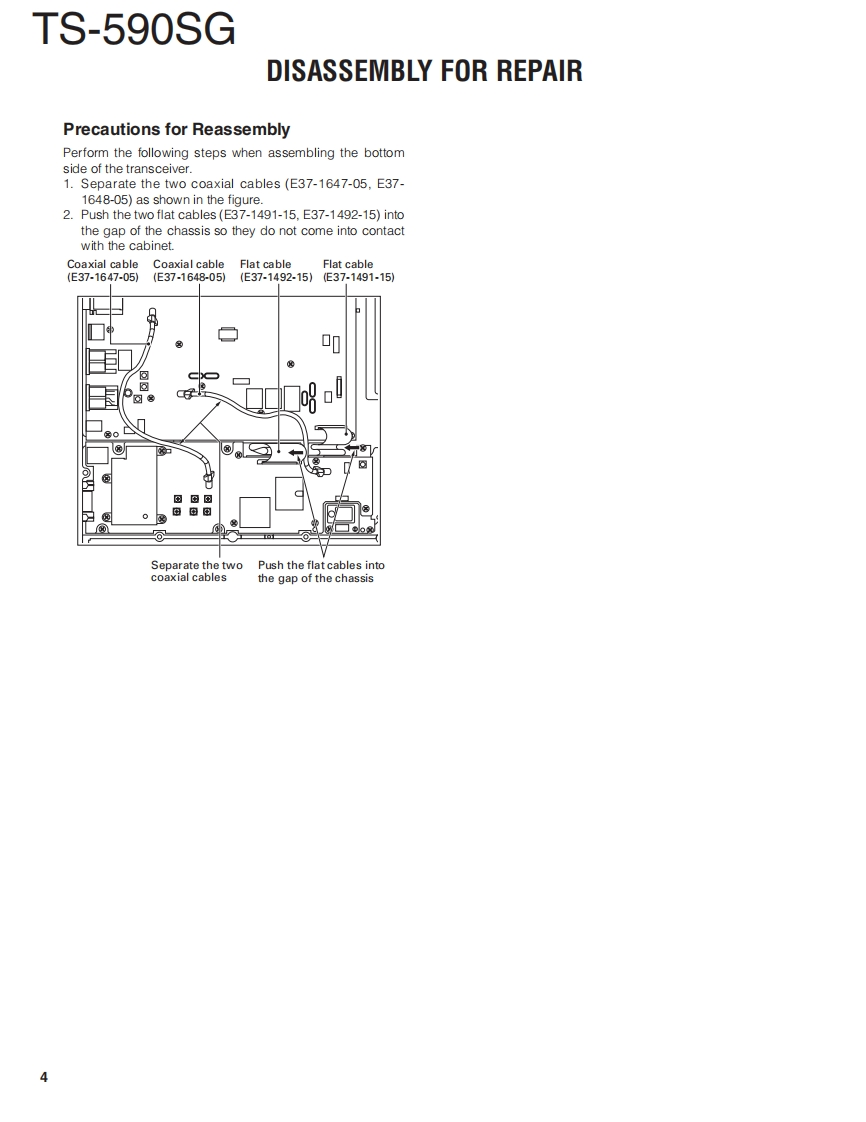 HF 50MHz TRANSCEIVERTS-590SGKENWOODJVCKENWOOD CorporationSERVICE MANUAL2014-12 PRINTED IN JAPANRQ045(0B5B-7163-00Phone jack (9P)Knob(RIT/XIT)(E11-0705-15)(K299471-03)Key top(8key)PanelFront glassKey top (5key)Knob(MULTI/CH,PF-C)(K2K-0121-00)A6C-0009-00)(B1A-0022-00)(K2K-0124-00)(K29-9456-23)PF AKENWOODTS-590PREAGCTOXSEND AT42S000"HIc-50PF Bm高高筒KEYNEFoot (Front)Key top(25key)Knob (Main knob)Key top (20key)Knob (Inside/HI)Knob (Outside/SQL,RF)(J02-0442-04)x2(K2K-0122-00)(K2B-0001-00)(K2K-0123-00)(K29-9477-03)(K29.9596-03)x2RF coaxial receptacle (Round)Foot(Front)Knob(Outside/LO)Knob (Inside/NOTCH,AF)(E06-0858-25)(J02-0440-14)(K2K-0125-00)(K29-9390-03)x2RF coaxial receptacle (M)Lead wire with connector (EXT.AT)Lead wire with terminal(E04-0167-15)x2(E37-0891-25)(E37-1480-05)⊕②①ANT 2ANT 1○GNDCOMEXT.SP 8R ACC 2 REMOTE KEY PADDLEDRV RX ANTSub socket(D】3.5D phoneDIN socketPhone jack(9P)Foot(Back)(E58-0529-05)jack (3P)(E06-0752.15)(E11-0705-15)(J02-0475-15)x2(E11-0414-15)Rectangular receptacleDIN socket3.5D phone jack(3P)Pin jackE58-0537-05)(E56-0408.15(E11-0455-05)(E13-0166-25)x2LFThis product complies with the RoHS directive for the European market.This product uses Lead Free solder