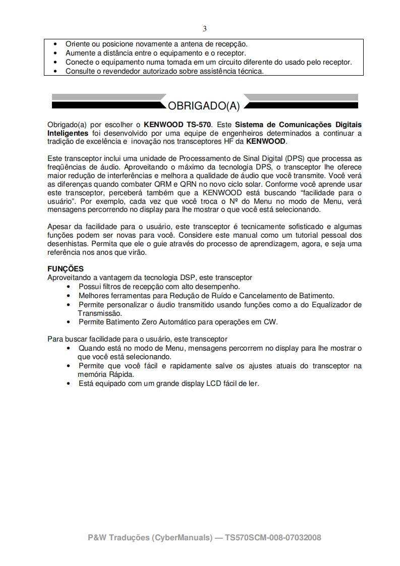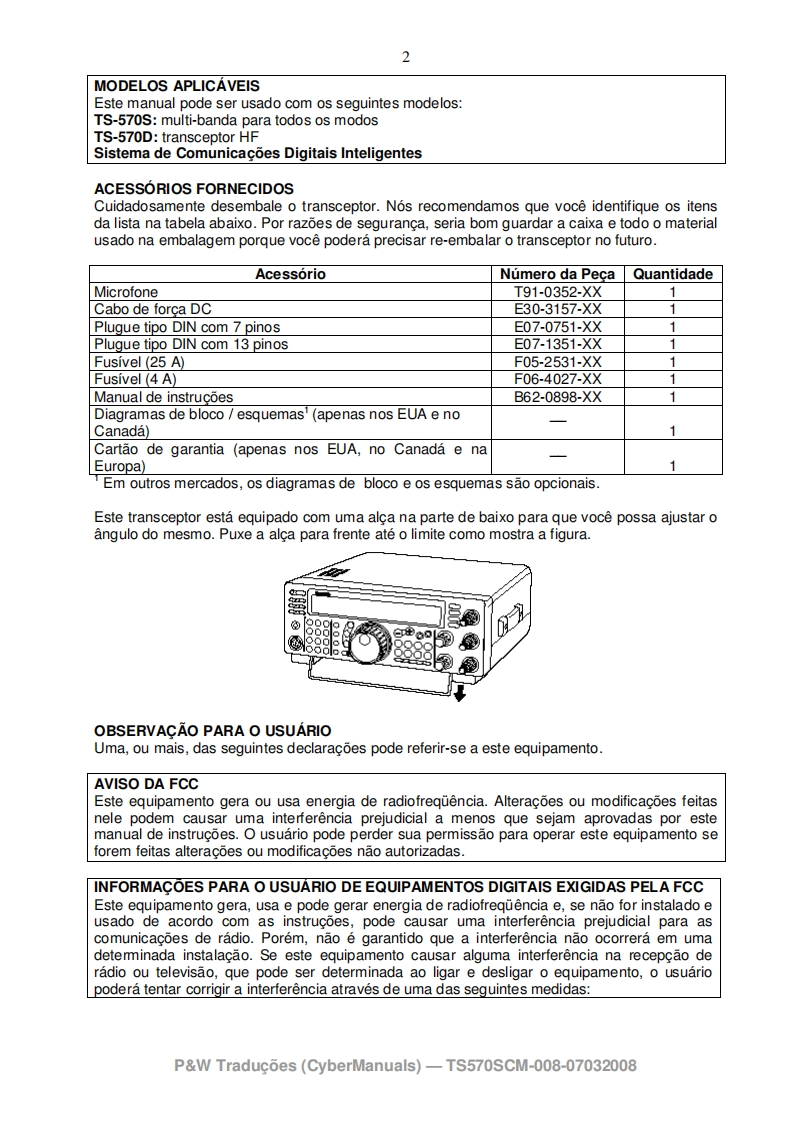 MANUAL DE INSTRUCOESKENWOOD28008Sistema de Comunicacoes Digitais InteligentesTRANSCEPTOR MULTI-BANDAPARA TODOS OS MODOSTS-570STRANSCEPTOR HFTS-570DKENWOOD CORPORATION0B62-0898-00KE.MMC)09080706050403020100Este manual e para uso exclusivo do Sr.ADRIANO CORREA(PU6MAC).Reproducao proibida!