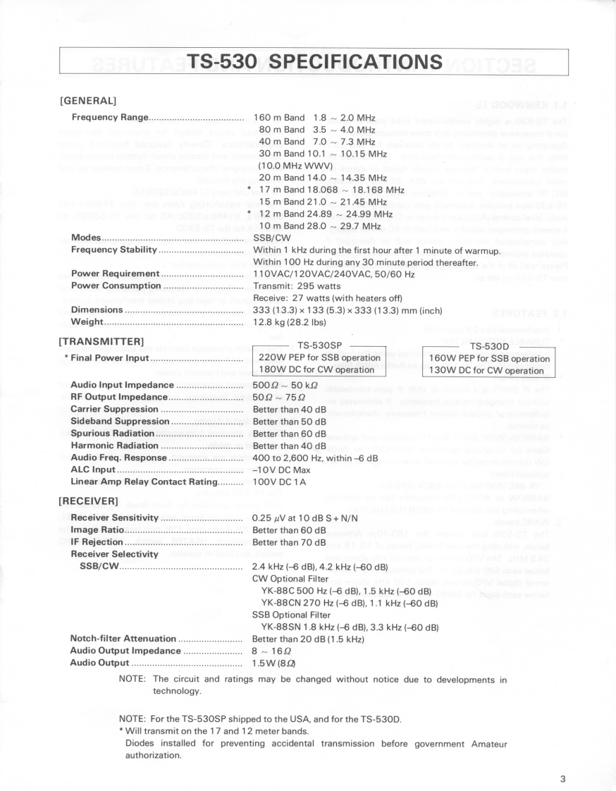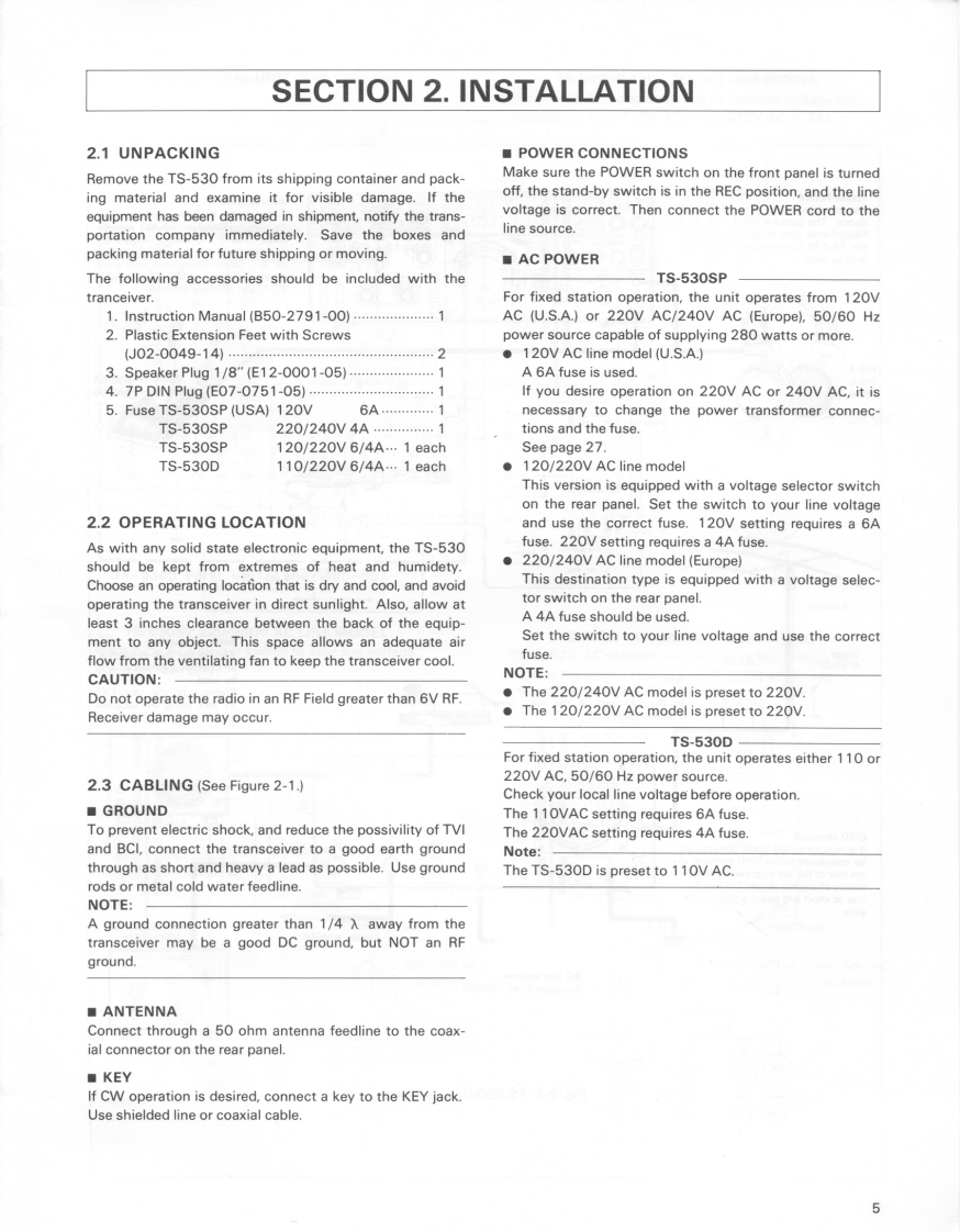 KENWOODTS-530SPHF TRANSCEIVERINSTRUCTION MANUALI20a0This instruction manual covers TS-530SP and TS-530D.Ifinstructions differ from each other,those are mentionedseperately.Please refer to an instruction corresponding to your type oftransceiver.