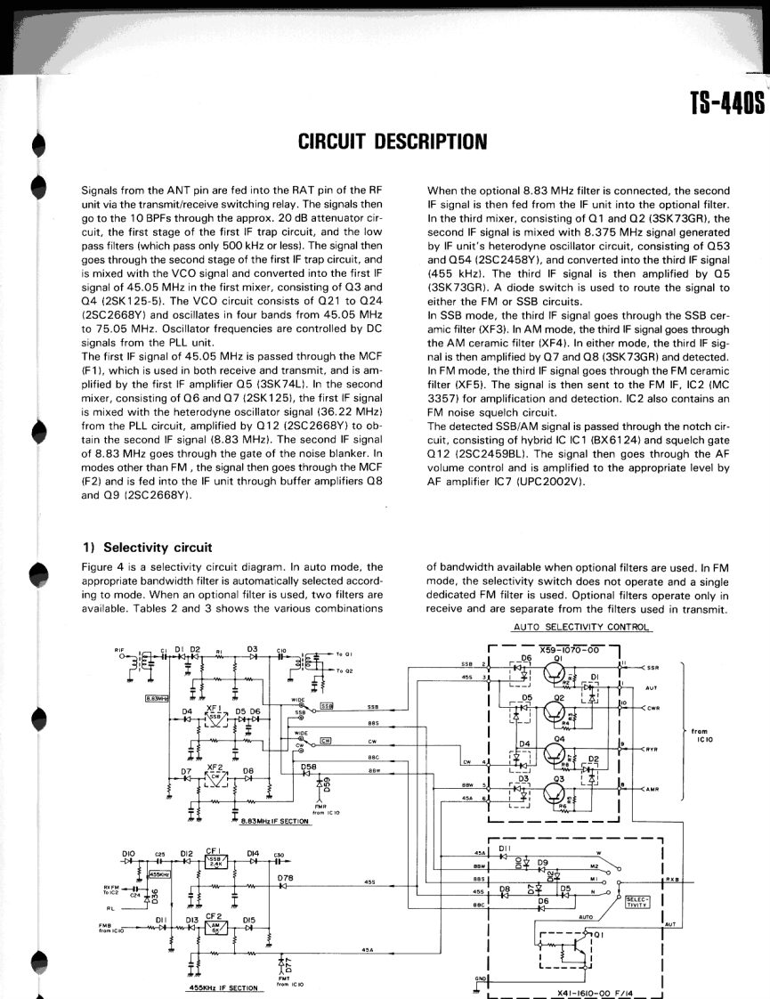 KENWOODSERVICE MANUALTS-440SPS-50,PS-430,SP-430,MB-430,S-1AT-440,YK-88C/CN.YK-88S/SNHF TRANCEIVERCONTENTSSPECIFICATIONS…2PACKING88CIRCUIT DESCRIPTION..........4ADJUSTMENT..........89SEMICONDUCTORS...............................27LEVEL DIAGRAM..101PARTS LIST…35BLOCK DIAGRAM...........103PC BOARD SCHEMATIC DIAGRAMOPTIONSWITCH UNIT…69PS-50.…104FILTER UNIT....70,71PS-430…109PLL UNIT.....72,73VS-1…111RF UNIT.…74,75SP.430.…114CONTROL UNIT.…76,77MB-430…114DISPLAY UNIT.............6,77AT-440…114FINAL UNIT...........................8YK-88S/SN.…114IF UNIT.......78,79YK-88C/CN...........…114AT UNIT ..80DISASSEMBLYSCHEMATIC DIAGRAM....113.81