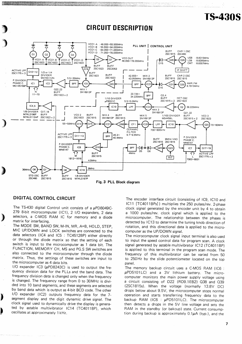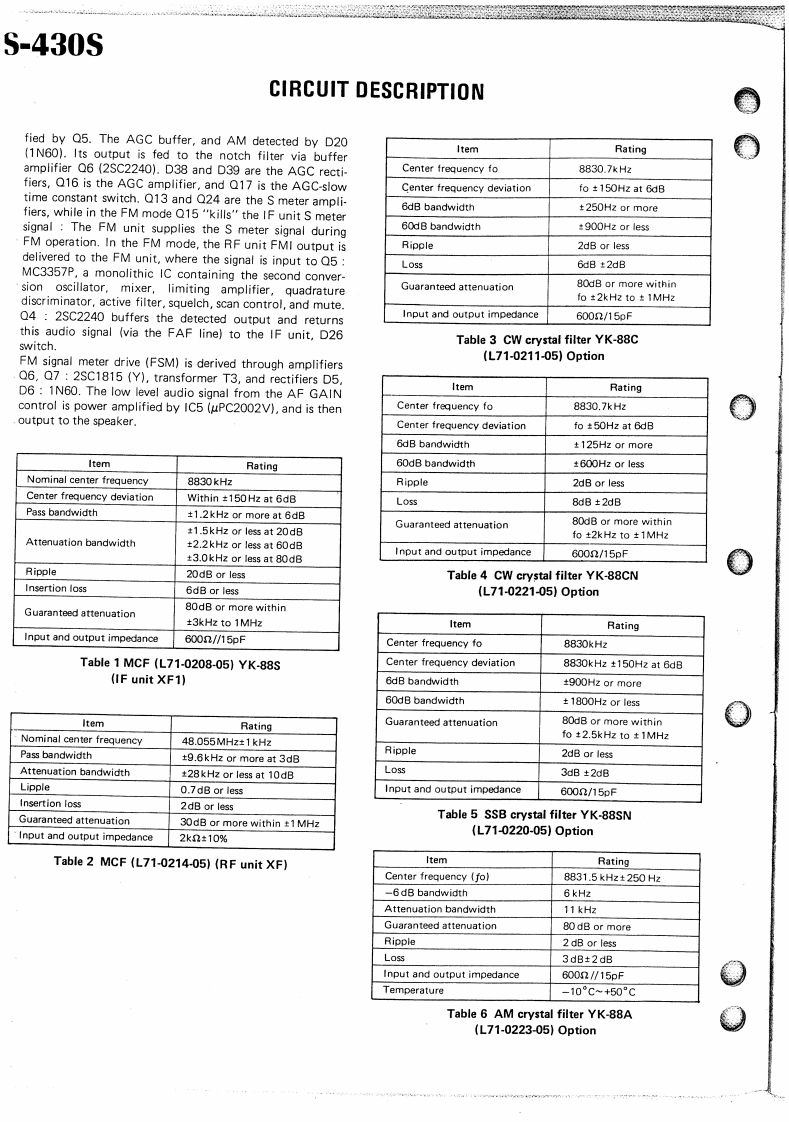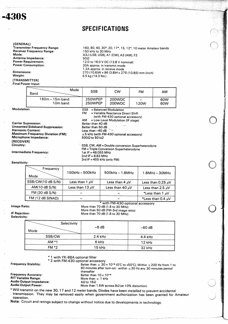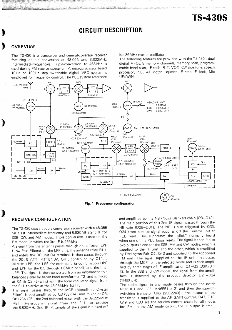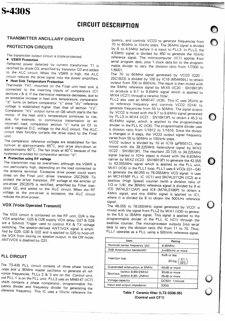 KENWOODSERVICE MANUALTS-430SFM-430,MB-430,SP-430,PS-430HF TRANSCEIVER:200CONTENTSSPECIFICATION·,,,·····3CIRCUIT DESCRIPTIONCONTR0LUN1T(X53-1290-00)·.,···.·32.33100 N FINAL UN1T(X45-1280-00)SEMICONDUCTOR DATA349100WF1 LTER UN1T(X51-1290-00)PARTS LIST3416DISASSEMBLYPC BOARD VIEWS/CIRCUIT DIAGRAMS…。35PACKINGSW1 TCH UN1T(X41-1470-00)3824ADJUSTMENTRELAY BOARD3925LEVEL DIAGRAMENCODER ASS'Y (J25-3141-04)50425BLOCK DIAGRAMDISPLAY UNIT (X54-1710-00)5125FM-430RFUN1T(X44-1510-11......,,,5226,27PS-430541FUN1T(X48-1370-00)28,29MB.430BACK COVERPLL UN1T{X50-1910-0030.31SP.430BACK COVER