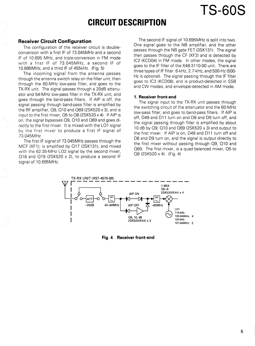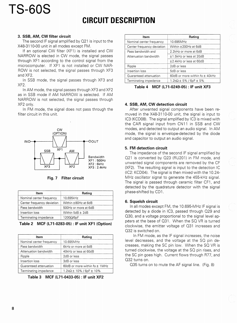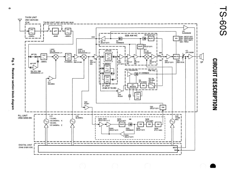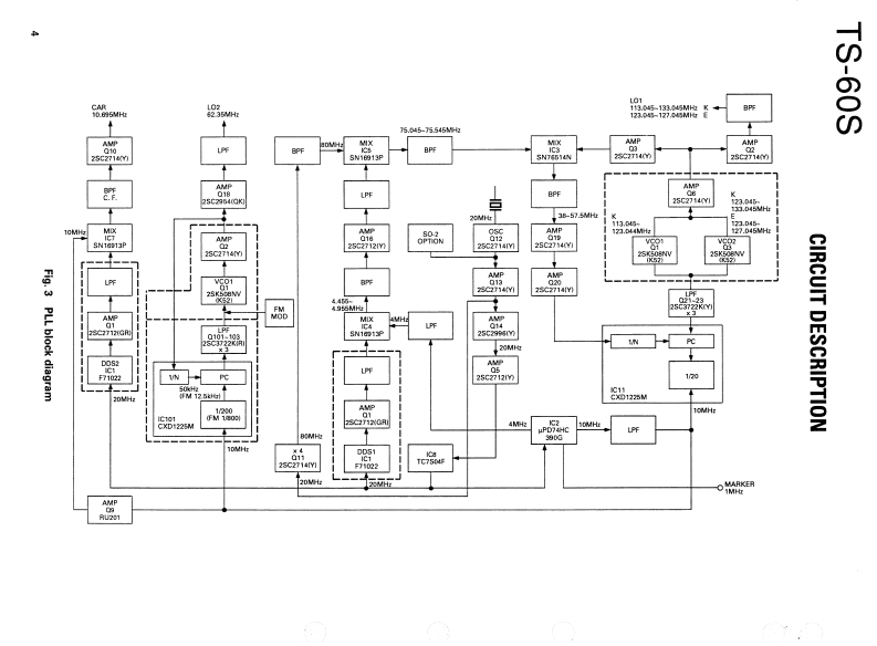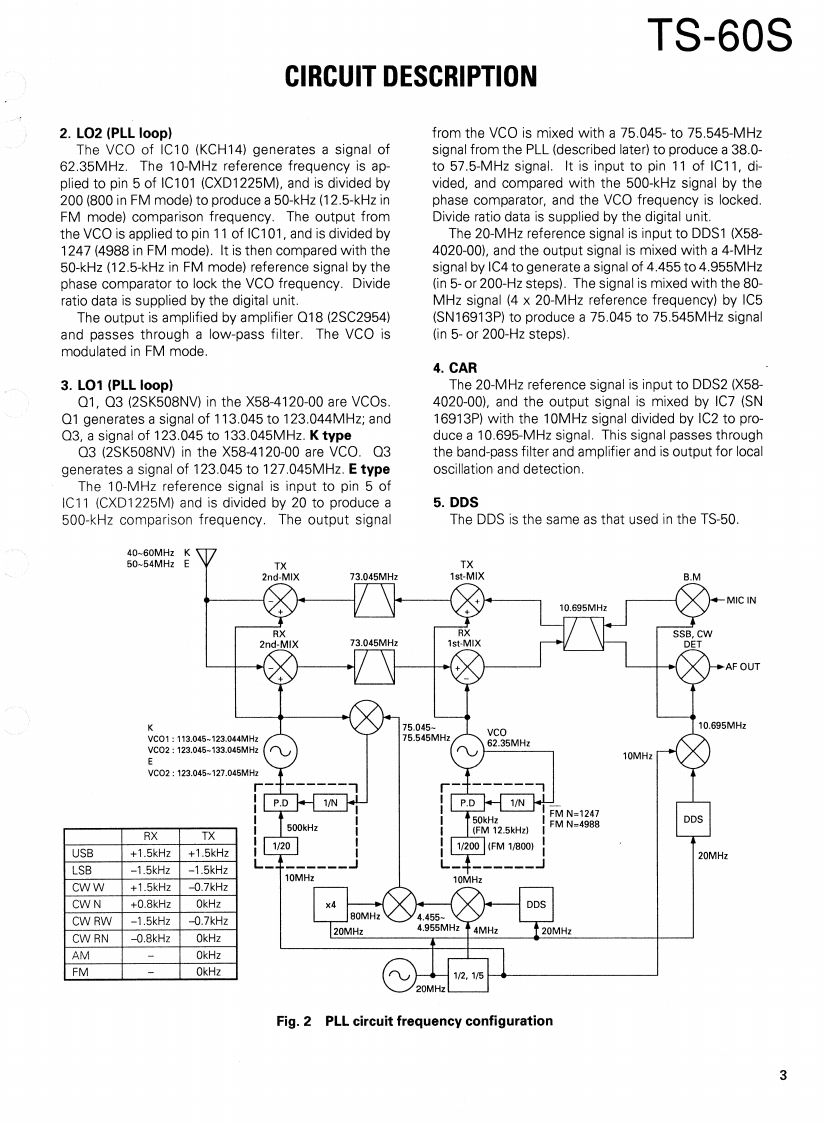 50MHz ALL MODE TRANSCEIVERKENWOODTS-60SSERVICE MANUAL1994-1 PRINTED IN JAPANB51-8252-00(0)1095Knob(Power)MicrophoneKnob(MHz)Knob (UP)(K29-4811-04)(T91-0528-05)(K29-4813-04)(K29-4815-04)Phone jackPanelKnob (F.LOCK)Knob (DOWN)Knob(E11-0454-05(A62-0296-03)(K29-4812-04)(K29-4814-04)(K29-4817-04)×3KENWOOD502500m8Knob (AF/RIT)KnobFoot(K29-4809-04)X2(K29-4816-04)×6(J02-0441-05)×4KnobKnob (SQL/IF SHIFT)Knob (MAIN)Knob(K29-4817-04)×3(K29-4810-04)×2(K21-0793-04)(K29-4818-04)×2CONTENTSCIRCUIT DESCRIPTION2DDS(X58-4020-00).…99SEMICONDUCTOR DATA.........21VC0(X58-4120-00)..100DESCRIPTION OF COMPONENTS...........25IF UNIT(X48-3110-00)..104PARTS LST...............80ALC(X59-3990-00).104EXPLODED VIEW……61TX-RX UNIT(X57-4570-00)..105PACKING64DSST(X59-4000-00).109ADJUSTMENT..65SCHEMATIC DIAGRAM...........115TERMINAL FUNCTION83BLOCK DIAGRAM..117CIRCUIT DIAGRAMS/PC BOARD VIEWSMB-13(MOUNTING BRACKET)....119LCD ASSY(B38-0719-15)…86PG-2Y(DC CABLE)…119FINAL UNIT(X45-3490-00).MC-47 (MULTI FUNCTION MICROPHONE)........120DIGITAL UNIT (X46-318X-XX).............93SPECIFICATIONS.…121PLL UNIT(X50-3200-00)....97