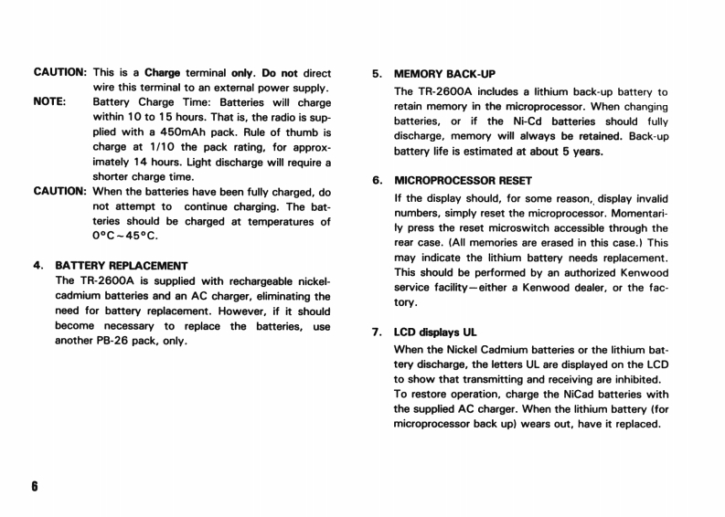 INTRODUCTIONCONTENTSYou are the owner of our newest product,theSPECIFICATIONS.…3TR-2600A Transceiver.Please read this instructionSection 1 PREPARATION FOR USE..........................4manual carefully before placing your transceiver inSection 2 CONTROLS AND TERMINALS..................7service.Section 3 DCS............13The unit has been carefully engineered and manufac-Section4 KEY BOARD OPERATION.........................14tured to rigid quality standards,and should give youSection 5 OPERATION................29satisfactory and dependable operation for manySection 6 ADDITIONAL INFORMATION...................30years.BLOCK DIAGRAM .........32AFTER UNPACKING:SCHEMATIC DIAGRAM (another sheet)Save the box and packing material in the event your unitneeds to be transported for remote operation,maintenance,or service.The following explicit definitions apply in thismanual:NOTE:If disregarded,inconvenience only,norisk of equipment damage or personal in-jury.CAUTION:Equipment damage may occur,but notpersonal injury.CAUTION:DO NOT CONNECT AN EXTERNAL DC SUP-PLY DIRECTLY TO THE CHARGE TERMINAL.Use only the supplied charger unit,optionalbase stand ST-2,or mobile stand MS-1.Exten-sive damage will occur if this is disregarded.CAUTION:DO NOT ATTEMPT TO MODIFY OR OTHER-WISE TOUCH CMOS LSI CIRCUITS.Leave allservice to a qualified,experienced technician.2Another PDF restoration brought to you by www.rigpix.comSorry,but the fromt page was unoblanium at the time of restoration