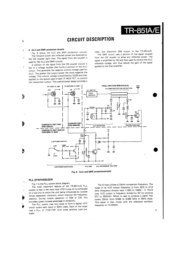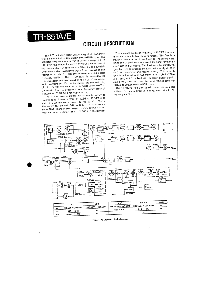 430MHz ALL MODE TRANSCEIVERTR-851A/EKENWOODSERVICE MANUALC1987-1 PRINTED IN JAPAN651-3176-00(O}801Photo is TR-851A.CONTENTSCIRCUIT DESCRIPTION。,”””44·“……·”“MIC AMP(X593000-01).,..71ELEMENT FUNCTIONSLCD ASS'Y (W02-03XX-05)。44g”72PARTS LIST…44··。…,”””,””,EXPLODED VIEW研CONTROL UNIT (X53-1460-XX)PC80 ARD VIEWS.,,.···73LEVEL DIAGRAM.,.,,.,,,,,,··-57CIRCUIT DIAGRAM .....76ADJUSTMENT,。,,。,t…444·…·”FINAL UNIT(X45-3030XX).·..,·......77TERMINAL FUNCTION.·:·,,····CAR UNIT(X50-3040-00).PACKING:,,,,。,,,,,,0··78COMPOSITE UNIT (PLL,DRIVE,FRONT)PC BOARD VIEWS/CIRCUIT DIAGRAMX50-3050-110..·······79VC0(X58-1000-01)..71C0MPOS1 TE UNIT(RX)(X60-1320-01)......,810.24MHz05C(X583060-001,·····:·71SCHEMATIC DIAGRAM....................83R1T(X583070-00}...····71MU-1 (MODEM UNIT)....................-6VDC-DCX59110000},,·········VS-1VO1 CE SYNTHESIZER,····,·gAF PRE AMP(X59111000,·...··..··.71TU-7 (TONE UNIT]90SQUELCH SWITCH (X59-1120-00)BLOCK DIAGRAM91CW BREAK IN (X59-1130-00)...·..,····SPECIFICATIONS ...............BACK COVER