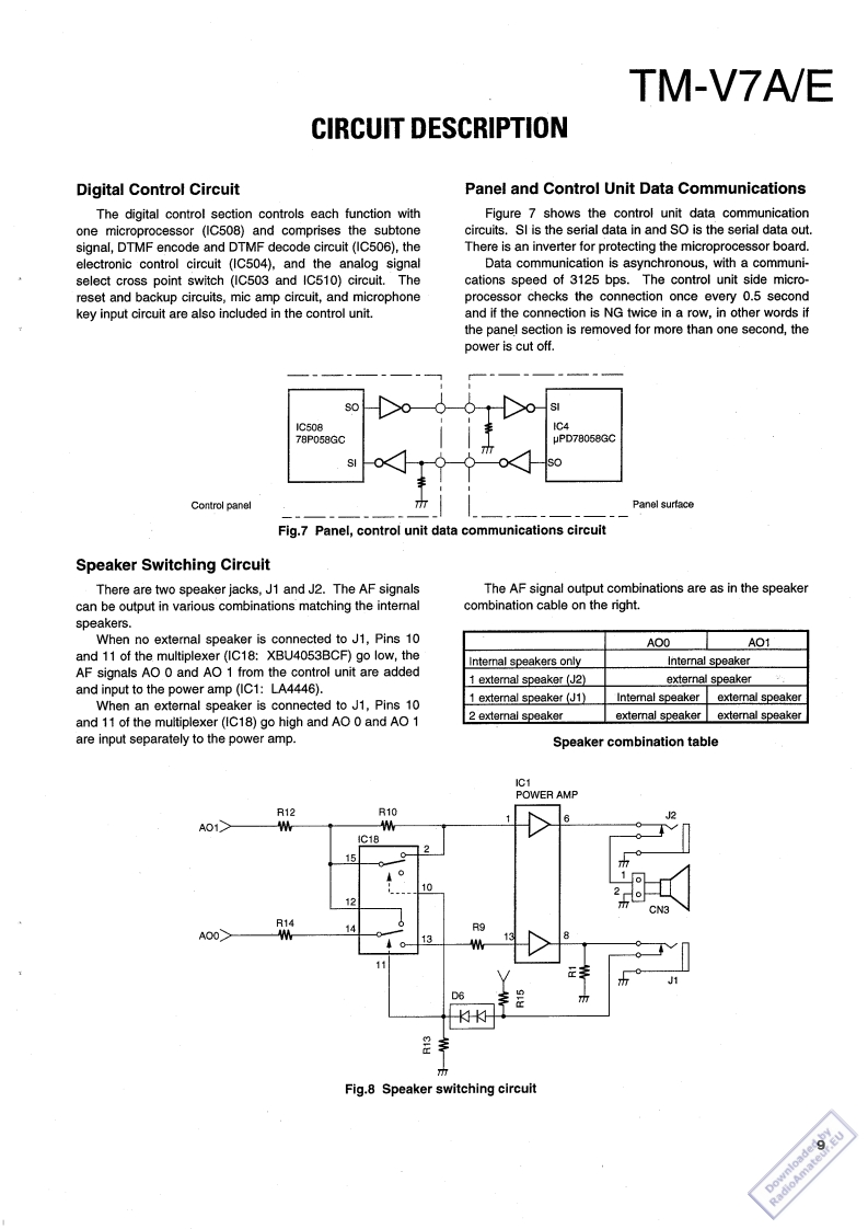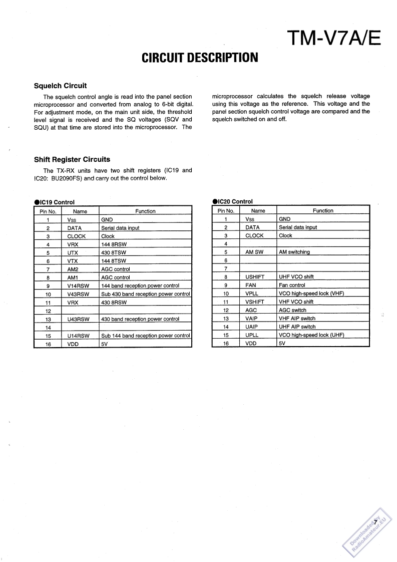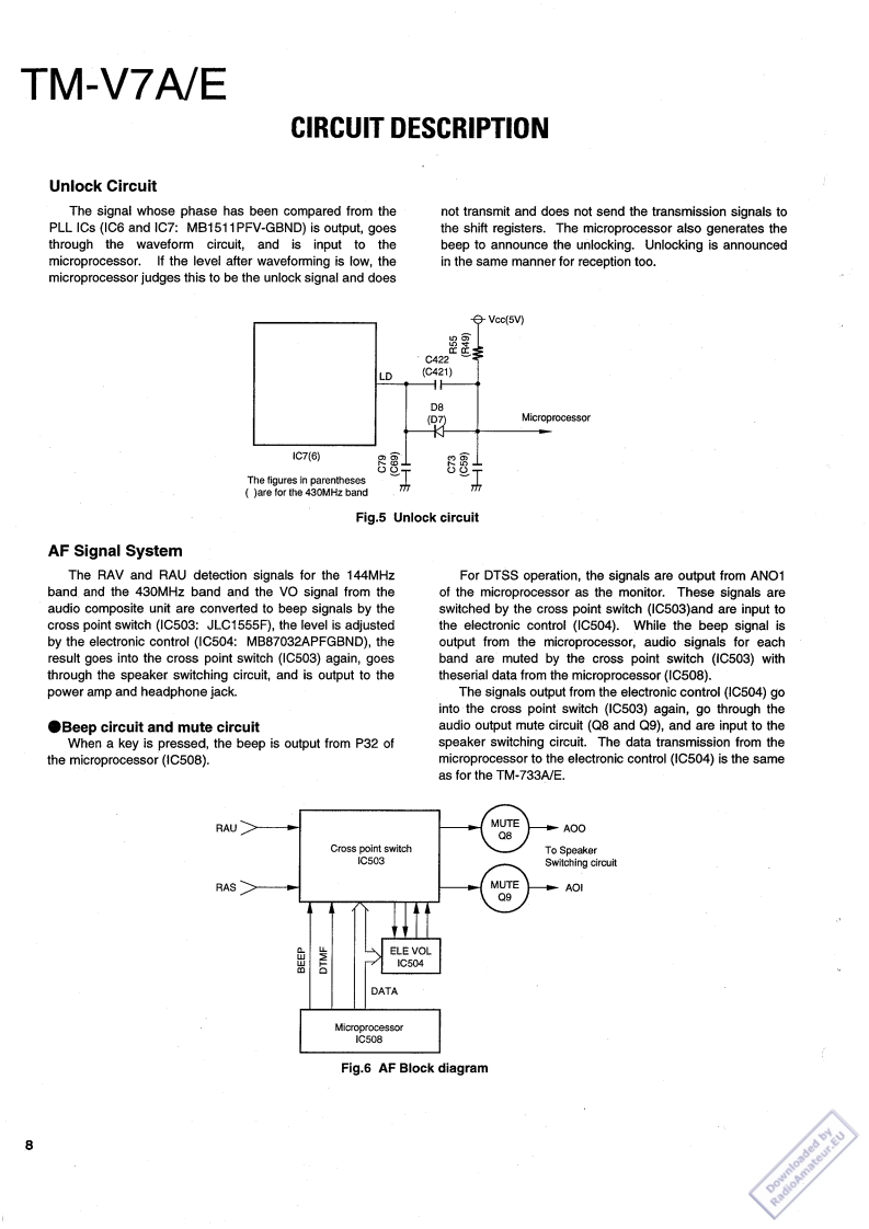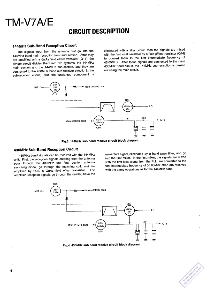 144/430MHz FM DUAL BANDERKENWOODTM-V7A/ESERVICE MANUAL1996-11 PRINTED IN JAPANB51-8348-00(B)1100Microphone assy(T91-0568-05):K,M3Metallic cabinet(Upper)(A01-2122-13)Knob(PM)(K27-3168-23)KENWOOD FM DUAL TM-VKnob(MNU)Knob (VFO)_(K27-3169-33)(K27-3166-23)Knob (MR)(K27-3167-23)46970448525Cover (DIN 6P)(f07-1428-23)Sub panelKnob(MAIN)Panel assyKnob (VOL)Knob (SQL)(A22-0798-11)(K29-5133-03)(A62-0492-33)(0K29-5134-03)(K29-5135-03)Button knob (MAIN,PUSH)(K273172-03)Photo is K TypeCONTENTSCIRCUIT DESCRIPTION..2PC BOARD VIEWSEMICONDUCTOR DATA.........19LCD ASSY(B38-0772-15)…52DESCRIPTION OF COMPONENTS...........23TX-RX UNIT (X57-52XX-XX)(A/3)..........53TERMINAL FUNCTION.26TX-RX UNIT (X57-52XX-XX)(B/3)..........57PARTS LIST…29TX-RX UNIT (X57-52XX-XX)(C/3).........59EXPLODED VIEW..40SCHEMATIC DIAGRAM.....61PACKING…41BLOCK DIAGRAM.69ADJUSTMENT........2WIRING DIAGRAM71LEVEL DIAGRAM…72OPTIONS(DFK-3C/DFK-4C/DFK-7C)........73SPECIFICATIONS.....coverded.EUDo
