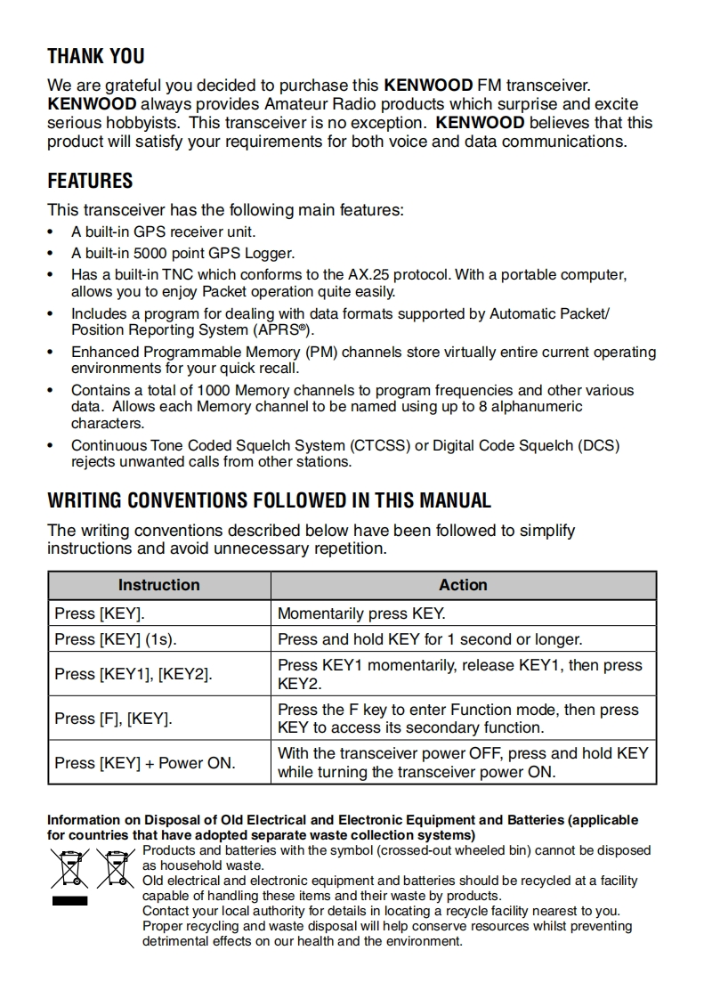 TM-D710GA/TM-D710GEKENWOODFM DLAL RANDER TM-0710回回回回回回回《144/440 MHz FM DUAL BANDER/144/430 MHz FM DUAL BANDERINSTRUCTION MANUAL144/440 MHz FM DOUBLE BANDE144/430 MHz FM DOUBLE BANDEMODE D'EMPLOIDOBLE BANDA DE 144/440 MHz EN FM/DOBLE BANDA DE 144/430 MHz EN FMMANUAL DE INSTRUCCIONESOnly basic operations are explained in this instruction manual.For a detailed explanation on the operations,refer to the PDF filesupplied on the CD-ROM.Seules les fonctions de base sont expliquees dans ce moded'emploi.Pour le detail sur les autres operations,reportez-vousau fichier PDF a votre disposition sur le CD-ROM.En este manual de instrucciones solamente se explican lasoperaciones basicas.Si desea obtener una descripcion detalladade las operaciones,consulte el archivo PDF correspondienteincluido en el CD-ROM.JVCKENWOOD Corporation©B62-2562-00(K,E)09080706050403020100(€0682①
