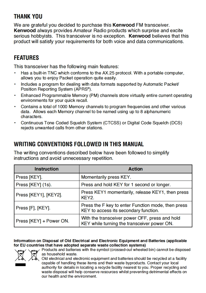 INSTRUCTION MANUALKENWOOD回回回回回回回《144/440 MHz FM DUAL BANDERTM-D710A144/430 MHz FM DUAL BANDERTM-D710A/TM-D710EOnly basic operations are explained in thisinstruction manual.For a detailed explanation on theoperations,refer to the PDF file supplied on the CD-ROM.NOTIFICATIONThis equipment complies with the essential requirements ofDirective 1999/5/EC.The use of the warning symbol means the equipment is subjectto restrictions of use in certain countries.This equipment requires a licence and is intended for use in thecountries as below.ATBEDKFIFRDEGRISIEIT山LUNLNOPTESSECHGBCYcZEEHULVLTMTPLSKSIBGRO1S03166Kenwood Corporation©B621986-30(K,E,M4)09080706050403C∈0682①