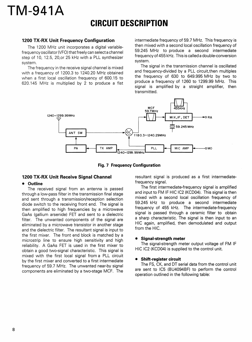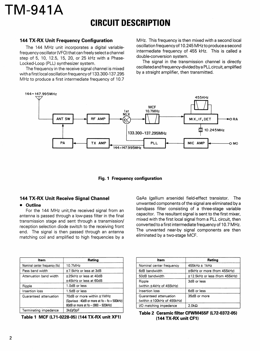 140/430/1200MHz FM TRIBANDERTM-941AKENWOODBnan@☑rya4Pcl仍.ntBryan Ficids LAcRSERVICE MANUALC1990-10 PRINTED IN JAPAN-B51-8079-00(A)582MICROPHONE(T91-)KENWOODFM TRIBANDER TM-841AKNOB (VFO)(K27-3078-04)PANNEL ASSY8525(A62-0021-031KNOB(MR)(K27-3079-041y6.970296b00KNOB (MHz)SS装i8器u(K27-3080-04)KNOB (POWER)(K27-3091-04)KNOBKNOB (RELEASE)(K29-3156-04)[K27-3092-04)DRESSING PLATEB03-0562-04)KNOB (SQL)KNOB (VOL)(K29-4576-04)(K29-4575-04)KNOB (CALL)KNOB (SHIFT)KNOB(REV)KNOB(LOW)K27-3081-04K27-3089-04K27-3085-04K27-3087-04BKNOB (F)KNOB (TONE)KNOB (DTSS)KNOB (MUTE)*Refer to parts list on page 41.K27-3082-04K27-3084-04K27-3086-04K27-3088-04CONTENTSCIRCUIT DESCRIPTION ..........2LEVEL DIAGRAM.........DESCRIPTION OF COMPONENTS.7927SCHEMATIC DIAGRAM ........81SEMICONDUCTOR DATA.36BLOCK DIAGRAM.....89PARTS LIST..........................38DTU-2 (DTMF UNIT)...........91EXPLODED VIEW.............60PG-4K/L (PANEL SEPARATE KIT K:4m,L:7m)......93PACKING.61TSU-7 (CTCSS UNIT).............................94ADJUSTMENT......62MC-45 (MULTI FUNCTION MICROPHONE)...........96PC BOARD VIEWSMC-45DM (MULTI FUNCTION MICROPHONECONTROL UNIT (X53-3310-11).....................70WITH AUTOPATCH)...97144MHz TX-RX UNIT (X57-3580-XX)...............72SPECIFICATIONS..........BACK COVER430MHz TX-RX UNIT (X57-3590-XX)...............741200 MHz TX-RX UNIT(X57-3600-11).76