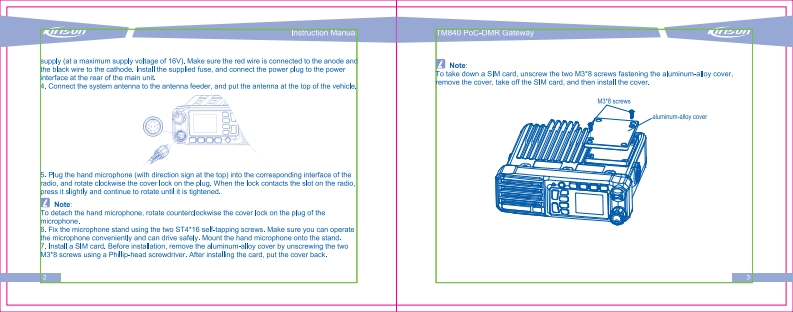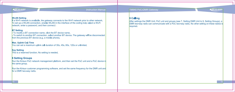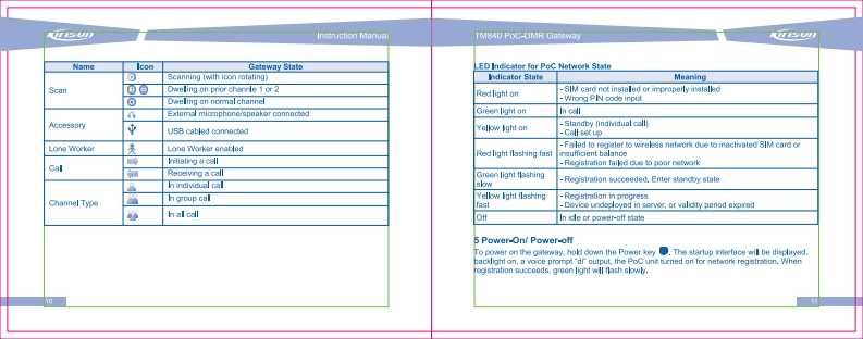 TM840-GW-操作说明书手册找手册网31天前发布关注私信2.11MB9页022TM840-GW-操作说明书手册此内容为付费资源,请付费后查看¥19¥21黄金会员免费钻石会员免费登录购买付费资源 第1页 / 共9页 第2页 / 共9页 第3页 / 共9页 第4页 / 共9页 第5页 / 共9页 第6页 / 共9页 第7页 / 共9页 第8页 / 共9页 第9页 / 共9页 已完成全部阅读,共9页 THE END建武 文本预览 KrISunQuick Installation GuideTM840 PoC-DMR GatewaynsunKirisun Communication Co_Ltd.htlp:iian.kirisun.com可可Kirisun Communication Co.,Ltd. 查看更多 收起部分 喜欢就支持一下吧收藏