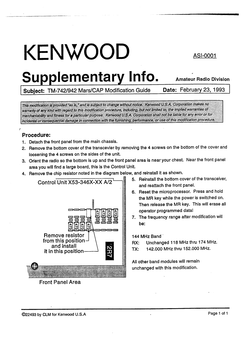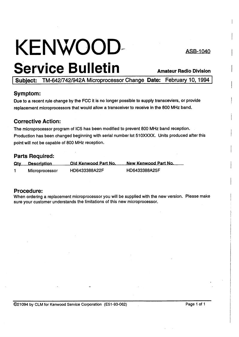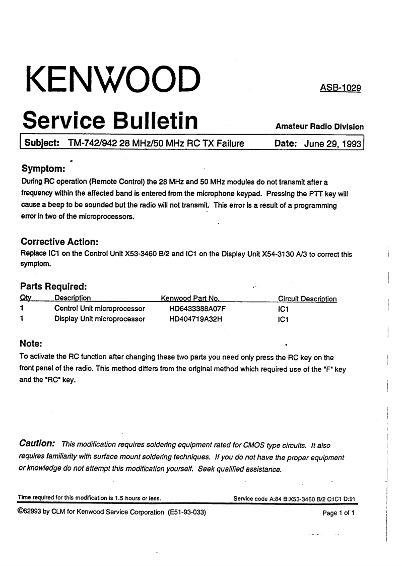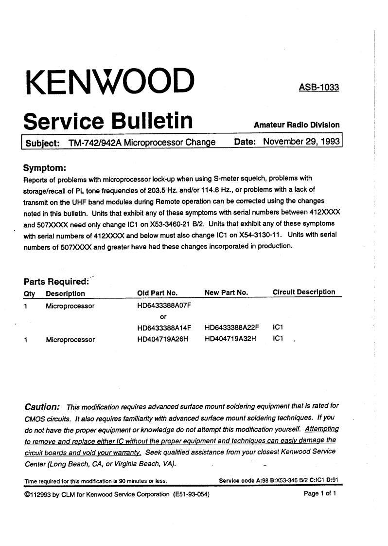 144/430 MHz,FM MULTI BANDERKENWOODTM-742 A/E144/430/1200 MHz FM TRIBANDERTM-942 ASERVICE MANUAL1992-12 PRINTED IN JAPANB51-8192-00(S)1094Panel Ass'yLA62-0221-03:TM-742AA62-022203:TM-742EMettallic cabinet (TOP)Knob (S Q L]A62.0197-03:TM-942A{A01-2068-03】K29-4808-04199y5500992F92B5BKnobPanel Ass'yKnob Ass'y IVOLl[K29.4806-0411A62-0219-031(K29.4840-041KnobK29-4805-041Photo is TM-942ACONTENTSOVER VIEW430/440M TX-RX UNIT (X57-359X-XX149CIRCUIT DESCRIPTION.····..3220MTX-RXUN1T1X57-3810-10)153DESCRIPTION OF COMPONENTS,51144M TX-RX UNIT (X57-3580-XX)157SEMICONDUCTOR DATA....,,,,,,,,,···6850MTX-RX UNIT(X57-3800-01)161PARTS LIST..,,.7128MTX-RX UNIT(X57-3790-01)165EXPLODED VIEW.,,·········.116BLOCK DIAGRAM,169PACKING120LEVEL DIAGRAM,,175ADJUSTMENT122TSU-7 (CTCSS UNIT).....177PC BOARD VIEWS/SCHEMATIC DIAGRAMMC-45 (MULTI FUNCTION MICROPHONE)...179CONTROL UNIT (X53-346X-XX]135MC-45DM (MULTI FUNCTION MICROPHONEDISPLAY UNIT (X54-3130-11)137NITH AUTOPATCH).··:,,.180SCHEMATIC DIAGRAM139UT-28S/50S/UT-220S/1200 SPECIFICATION ...1811200MTX-RX UNIT(X57-3600-11)143SPECIFICATION.··...·.·.,..BACK COVER