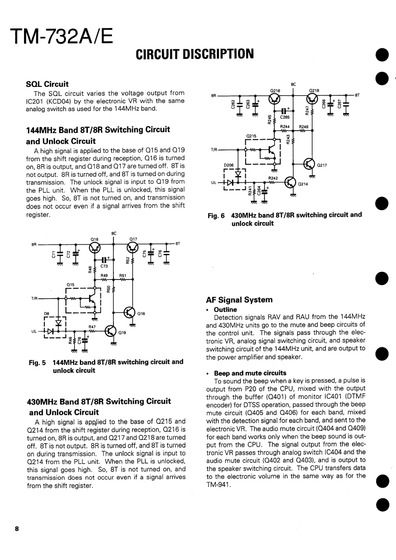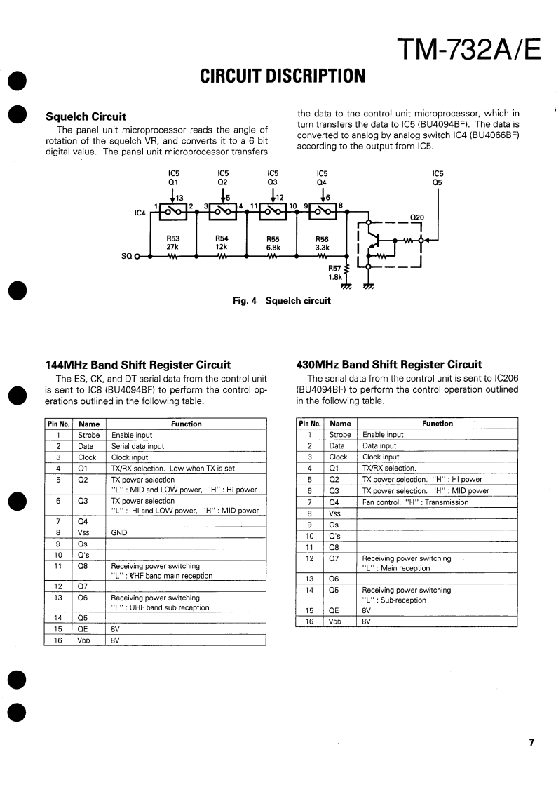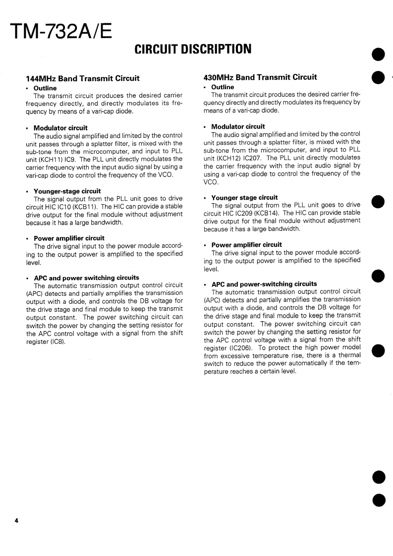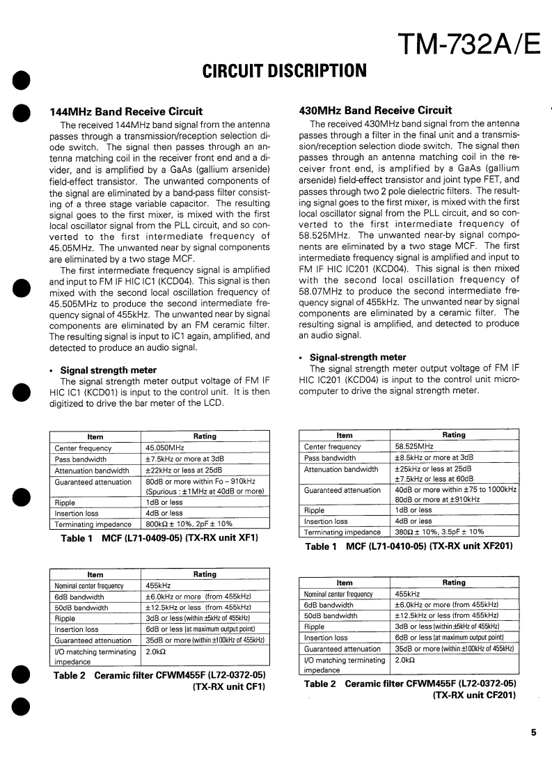 144/440MHz FM DUAL BANDERKENWOODTM-732A/ESERVICE MANUAL1991-11 PRINTED IN JAPANB51-8144-00(0)1740Knob (VFO)Microphone(K27-3124-03)(T91-0516-05)M.M2(T91-0517-05)K,PM3(T91-0521-05)E,E2,E3Panel(A62-0174-03)KP,M,M2,M3(A62-0175-03)E,E2,E3Knob (POWER)(K27-3121-04)w597025Knob (LOW)(K27-3122-04¥w8525Metallic cabinet (BOTTOM)(A01-2051-13)Knob (VOL)Knob (MAIN)Knob (CALL)Knob (SEL)(K27-3123-04)(K29-4575-04)×2(K29-3156-04】{K27-3120-04)×6Knob (SQL)(K29-4576-04)×2CONTENTSCIRCUIT DESCRIPTION ......2CONTROL UNIT (X57-400X-XX)(C/4).........67SEMICONDUCTOR DATA.......18VOLUME UNIT (X57-400X-XX)(D/4)................70DESCRIPTION OF COMPONENTS22LCD ASSY (B38-03XX-15)70MODIFICATION......26SCHEMATIC DIAGRAM71PARTS LIST........27BLOCK DIAGRAM…74EXPLODED VIEW45LEVEL DIAGRAM76PACKING.47MC-45 (MULTIFUNCTION MICROPHONE).........77ADJUSTMENT.......48MC-45DMTERMINAL FUNCTIONS...........56·(MULTI FUNCTION MICROPHONE WITH AUTOPACH )...78PC BOARD VIEWS/CIRCUIT DIAGRAMPG-4K/L (PANEL SEPARATE KIT K 4M,L 7M)....79144MHz TX-RX UNIT (X57-400X-XX)(A/4)......57TSU-7(CTCSS UNIT)…80430MHz TX-RX UNIT (X57-400X-XX)(B/4)........62SPECIFICATIONS…BACK COVER