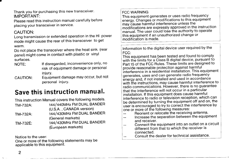 TM-732操作说明书手册找手册网31天前发布关注私信2.61MB80页030TM-732操作说明书手册此内容为付费资源,请付费后查看¥19¥21黄金会员免费钻石会员免费登录购买付费资源 第1页 / 共80页 第2页 / 共80页 第3页 / 共80页 第4页 / 共80页 第5页 / 共80页 第6页 / 共80页 第7页 / 共80页 第8页 / 共80页 第9页 / 共80页 第10页 / 共80页 试读已结束,还剩70页,您可下载完整版后进行离线阅读 THE END建武 文本预览 144/440 MHz FM DUAL BANDERTM-732A144/430 MHz FM DUAL BANDERKENWOODTM-732A144/430 MHz FM DUAL BANDERTM-732EINSTRUCTION MANUALKENWOOD CORPORATIONPRINTED IN JAPAN B62-0201-10(K)(MC)93/121110987654321921211109 查看更多 收起部分 喜欢就支持一下吧收藏