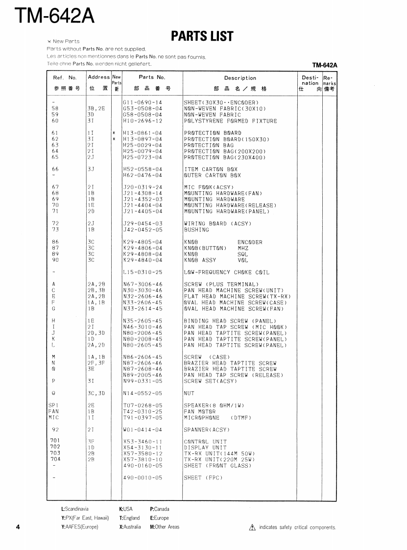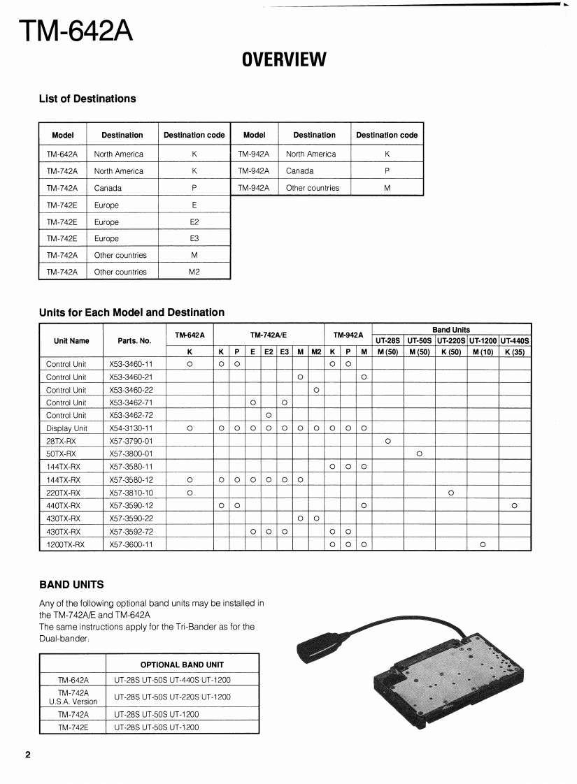 144/220 MHz FM MULTI BANDERKENWOODTM-642ABRyan Frelds wqcRBRYan Bryan Felds.neTSERVICE MANUAL1994-6 PRINTED IN JAPANB51-8275-00(B)450MicrophoneT91-0397-05)Knob (SQL)(K29-4808-04)Metallic cabinet (TOP)Panel ass'y(A01-2068-03)(A62-0309-03)99981948/697022H980Knob (MHz)Knob (ENC)Panel ass'yKnob ass'y(VOL)(K29-4806-04)(K29-4805-04)(A62-0219-03(K29-4840-04)This service manual describes mainly about the partslist.the schematic diagram and the PC board ofTM-642A.For the circuit description and thesemiconductor information,refer to the service manualotTM742AVE,TM-942A(B51-8192-00).CONTENTSOVERVIEW......2PC BOARD VIEWS .........43PARTS LIST........3144MTX-RX UNIT(X573580-12).43EXPLODED VIEW.............21SCHEMATIC DIAGRAM......................47PACKING.25144MTX-RX UNIT(X57-3580-12)..47ADJUSTMENT.........26PC BOARD VIEWS.49PC BOARD VIEWS..................31220MTX-RX UNIT(X573810-10).49C0 NTROL UNIT(X53-3460-11)31SCHEMATIC DIAGRAM..............................53DISPLAY UNIT (X54-3130-11)....35220MTX-RX UNIT(X573810-10).53SCHEMATIC DIAGRAM.........................39BLOCK DIAGRAM..................55CONTROL UNIT39LEVEL DIAGRAM....57DISPLAY UNIT.........39SPECIFICATIONS..................BACK COVER
