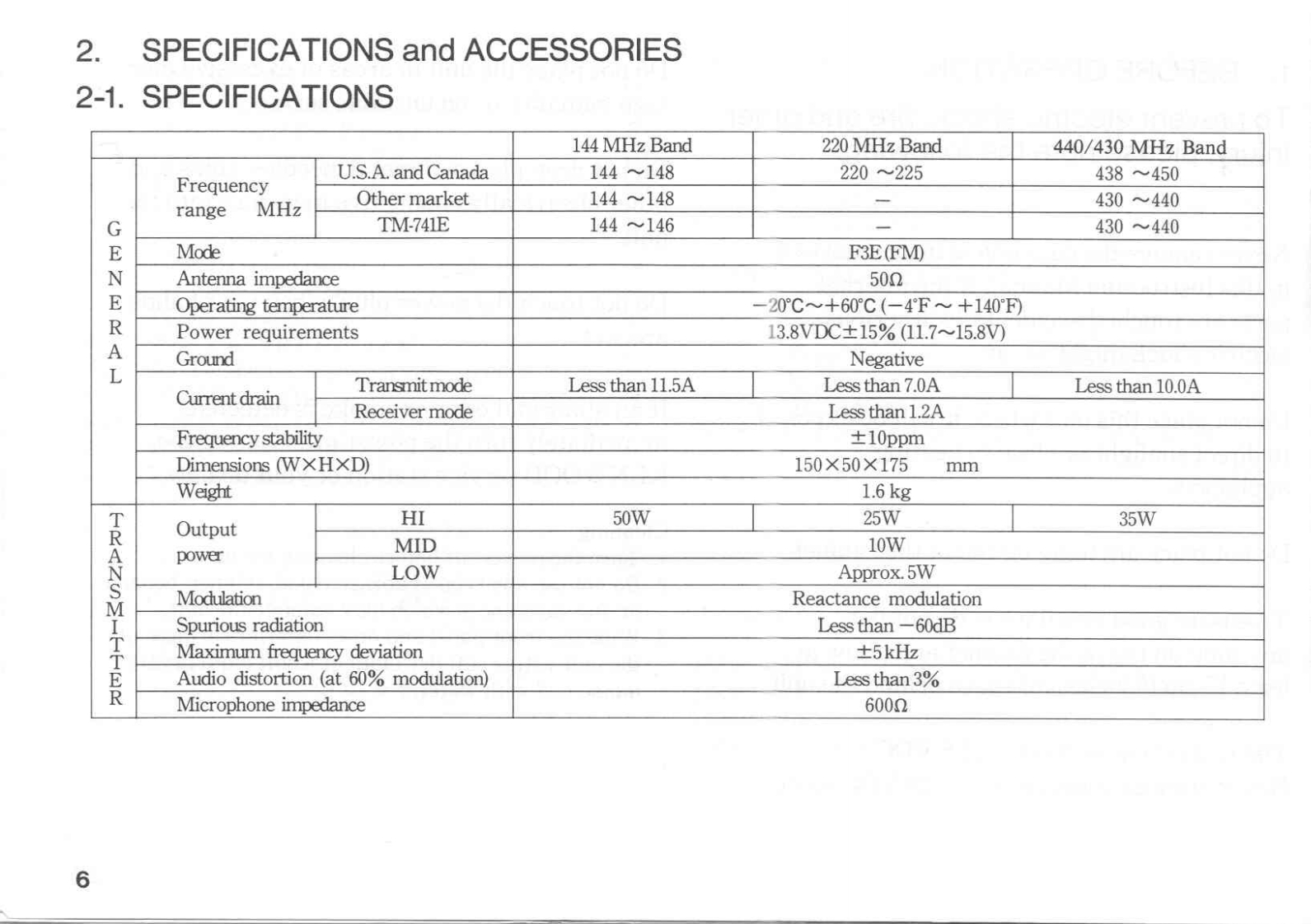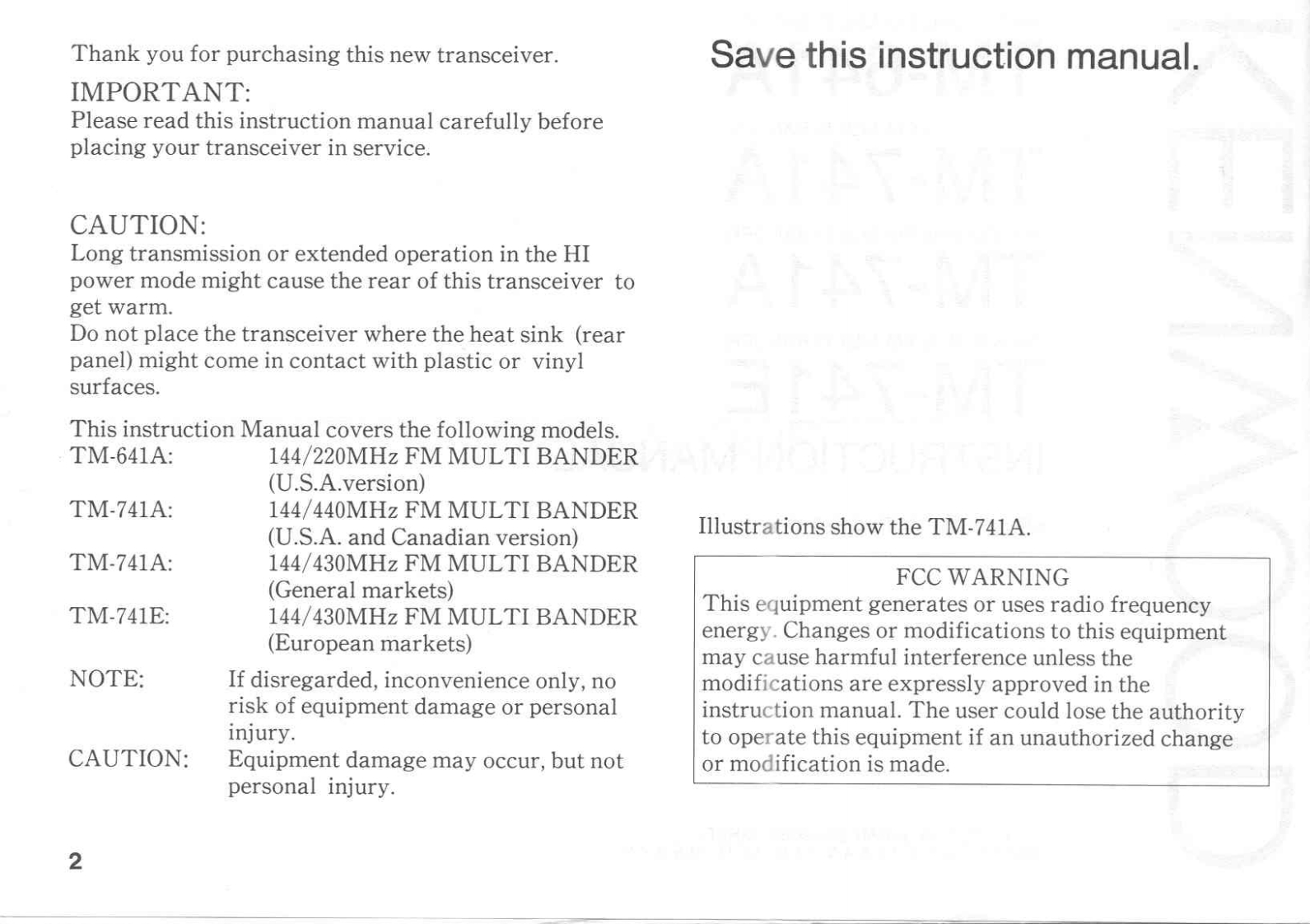 144/220 MHz FM MULTI BANDERTM-641A144/440 MHz FM MULTI BANDERKENWOODTM-741A144/430 MHz FM MULTI BANDERTM-741A144/430 MHz FM MULTI BANDERTM-741EINSTRUCTION MANUALKENWOOD CORPORATIONOPRINTED IN JAPAN B62-0082-10(K)(T)92/12111098765432191/1211109876