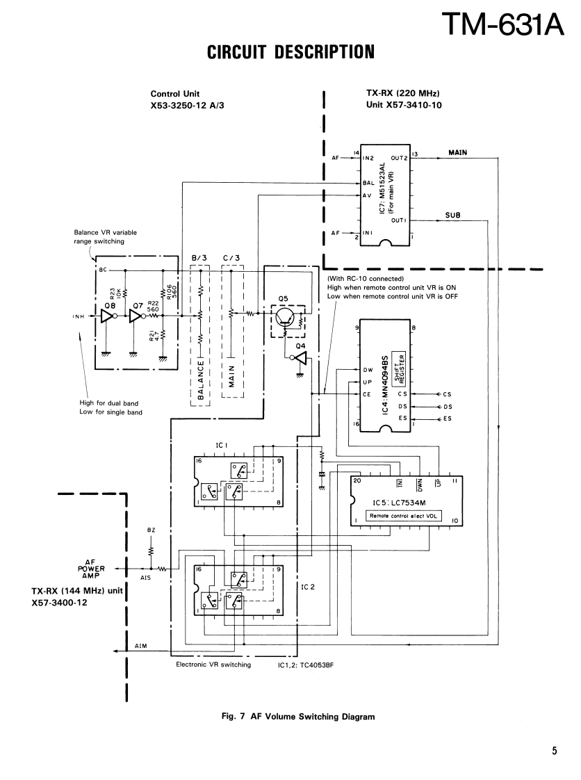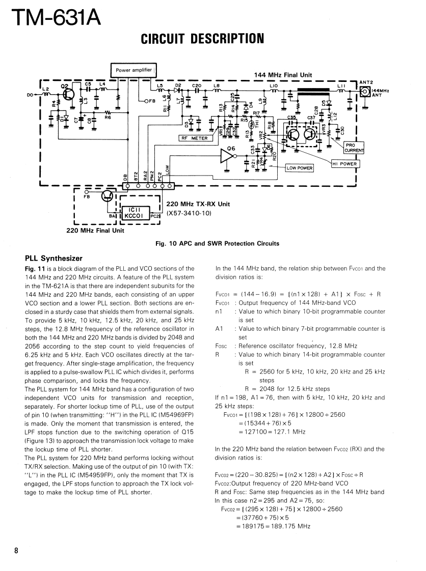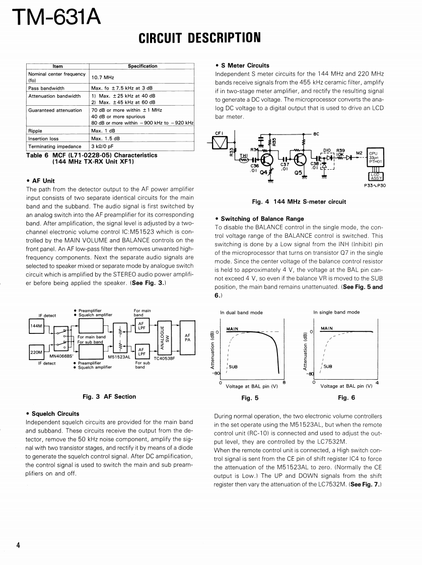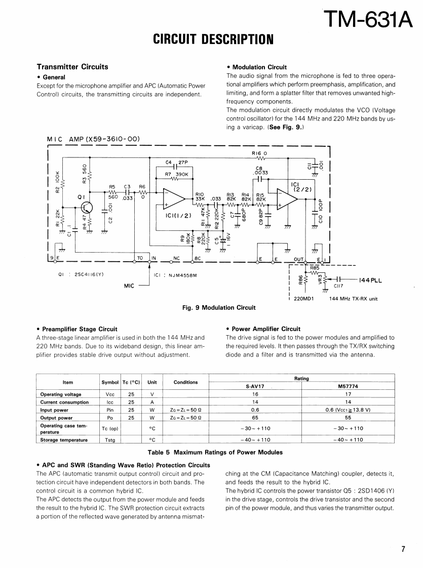 144/220MHz FM DUAL BANDERTM-631AKENWOODBRyan Fields WqcRSERVICE MANUALBRYan@Bryan Fells.netC1989-8 PRINTED IN JAPANB51-8016-00(T633KnobMicrophoneK29-3111-04)×3(T91-0380-25Panel ass'yA20-7014-021Knob (SQ](K29-3116-041Knob(AF月Metallic cabinet (Top)K29-3115-041 Panel{A01-1048-02)(A20-7021-021FM CUALKnob (MAIN)K29-3060-041469702298Knob (SCAN,MUTE)K29-3112-041×5Knob (Up/Down)K29-3114-04)×2Knob (F)Knob (Sub-Encoder)Knob (DUAL](K29-3143-04K29-3145-04K29-311304}×3Knob (Button)(K27-3026-041×2Knob [Low)Knob (Button)K29-3144-04)K27.3028-04)Metallic cabinet (Bottom)A01-1076-02CONTENTSCIRCUIT DESCRIPTION........3C0 NTROL UNIT(X53-3250-12)..61DESCRIPTION OF ELEMENTS.................17144 MHz TX-RX UNIT(X57-3400-12)..63PARTS LIST...............25220 MHz TX-RX UNIT(X57-3410-10)65EXPLODED VIEW.46FINAL UNIT (220 MHz)(X45-3350-10)...................67PACKING..48F1 NAL UNIT(144MHz)(X45-3350-10)68ADJUSTMENT.49SCHEMATIC DIAGRAM....................69TERMINAL FUNCTIONS..................56LEVEL DIAGRAM..3PC BOARD VIEW/SCHEMATIC DIAGRAMBLOCK DIAGRAM.........75144 MHz PLL UNIT(X58-3670-10)....59TSU-6 (CTCSS UNIT)........76220 MHz PLL UNIT(X58-3690-10)..60SPECIFICATIONS..............Back cover