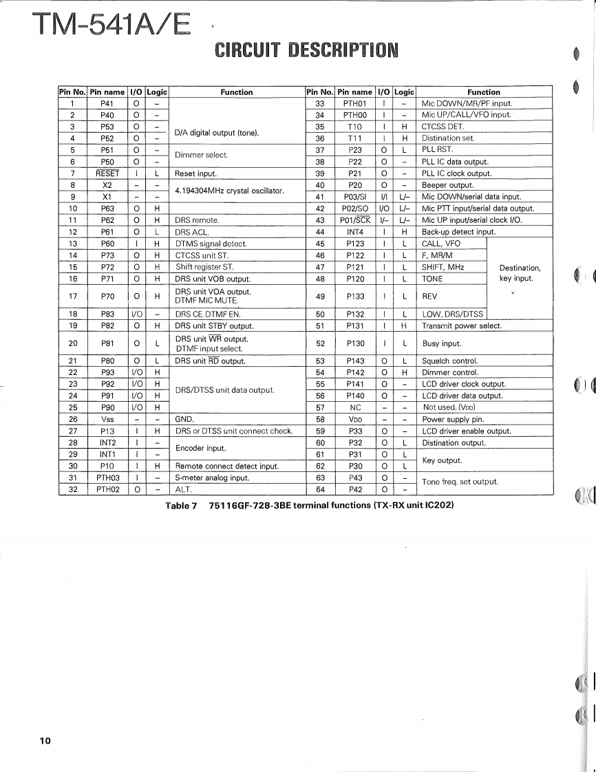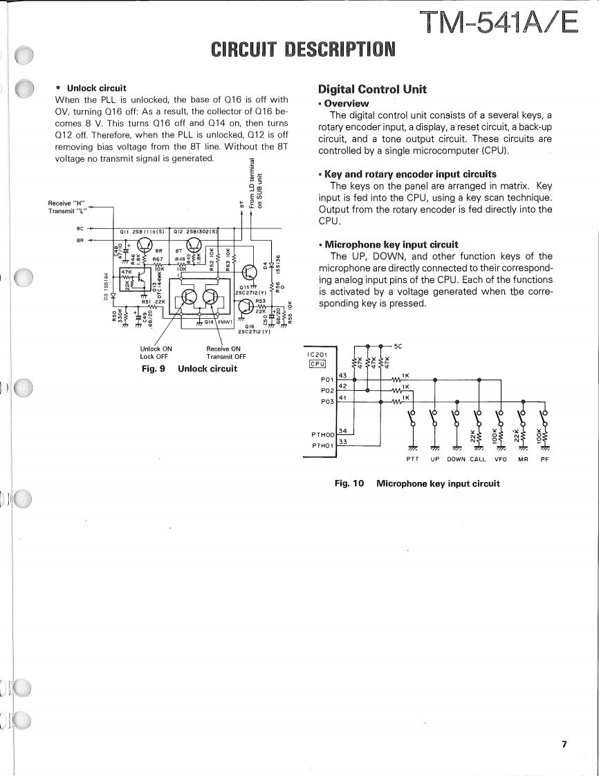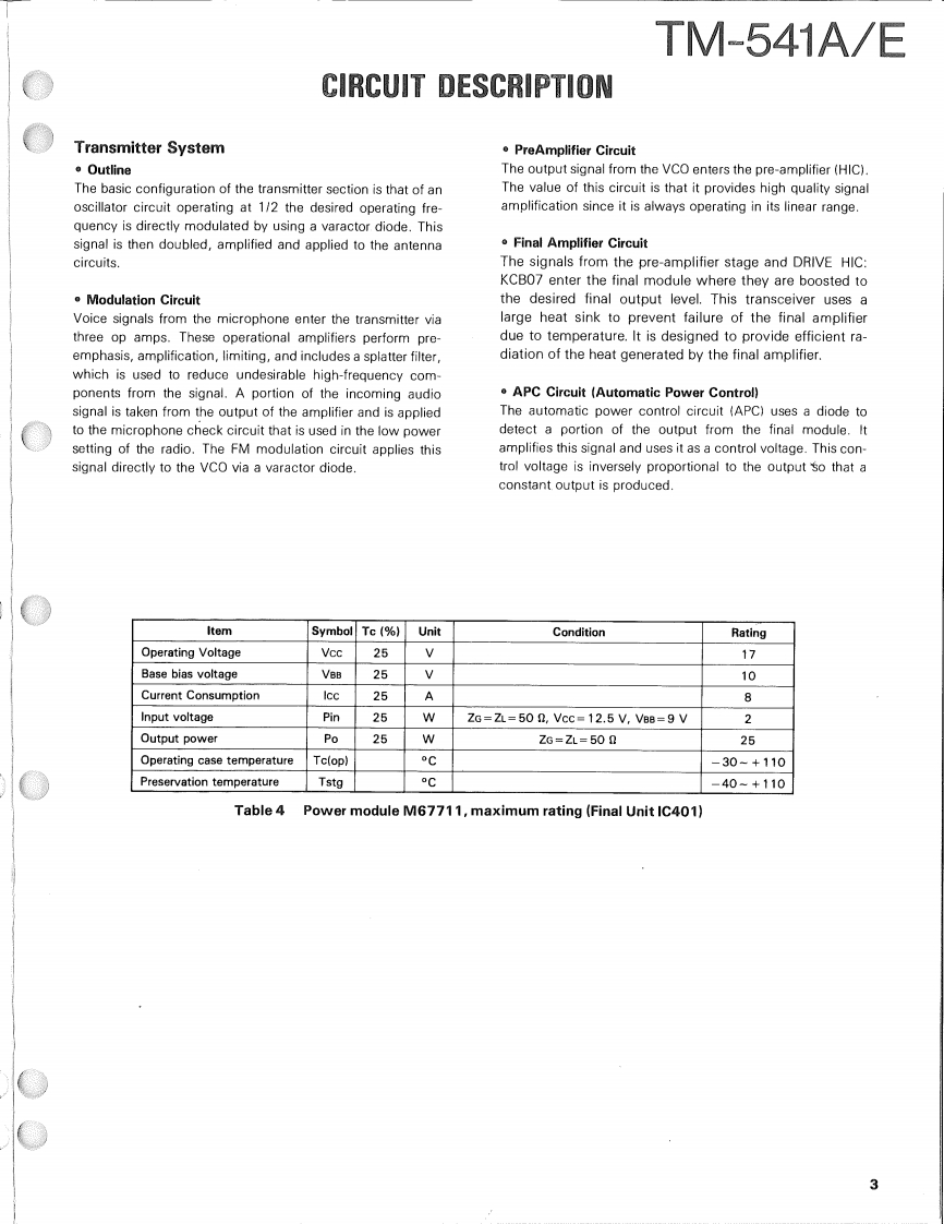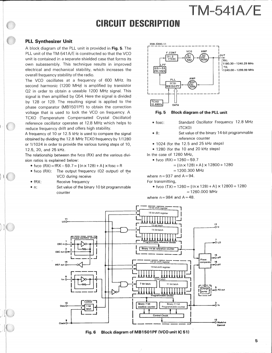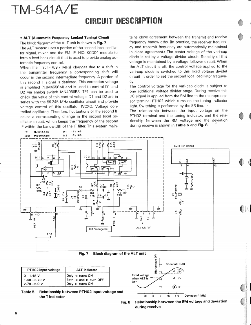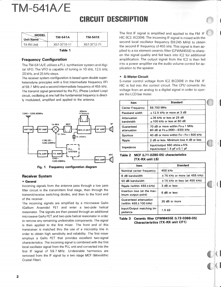 1200MHz FM TRANCEIVERTM-541AEKENWOODSERVICE MANUALC1990-9 PRINTED IN JAPANB51-8063-00(B)699Knob (VFO,MR,MHz)Metallic cabinet (UPPER)K27-3035-14(A01-1065-03)Microphone"T91-Panel ass'y'A62-0005-13:TM-541AA62-0010-13:TM-541EKnob (LOW)K27-3067-04Knob (POWER)K27-3066-04)KENWOODt296.000r28■卫▣Knob (MAIN)Knob (VOL,SQLK29-3156-041K29-3157-04Knob (CALL)Knob (DR/DT)8 Pin Metal socket (MIC)K27-3068-04K27-3075-04(E06-0860-05)Knob (F)Knob (REV)(K27-3069-04)K27-3072-04Knob(SHIFT)Knob (TONE)K27-3074-04)K27-3071-04)Refer to parts list on page 15.CONTENTSCIRCUIT DESCRIPTION.......................2SCHEMATIC DIAGRAM.....................41DESCRIPTION OF COMPONENTS...........11TERMINAL FUNCTIONS....................45PARTS LIST ................................15BLOCK DIAGRAM..........................46EXPLODED VIEW.…28LEVEL DIAGRAM...........................48PACKING.…29DRU-1 (DIGITAL RECORDING UNIT)........49ADJUSTMENT.............................30DRU-1 (SCHEMATIC DIAGRAM)............54PC BOARD VIEWS/CIRCUIT DIAGRAMDTU-2(DTMFUNIT)........................56LCD ASS'Y(B38-0330-05)...34MC-44E (MULTI FUNCTIONAP℃(X59-3130-00)..35MICROPHONE)...........................58MIC AMP(X59-3610-00}.....35MC-44 DM/MC-44 DME (MULTI FUNCTIONALTX59-3510-00}...36MICROPHONE WITH AUTOPATCH.......59PLL(X58-3490-11..37MC-44 (MULTI FUNCTION MICROPHONE).60TX-RX UNIT (X57-371X-XX)................39TSU-6(CTCSS UNIT).......................61SPECIFICATIONS................BACK COVER