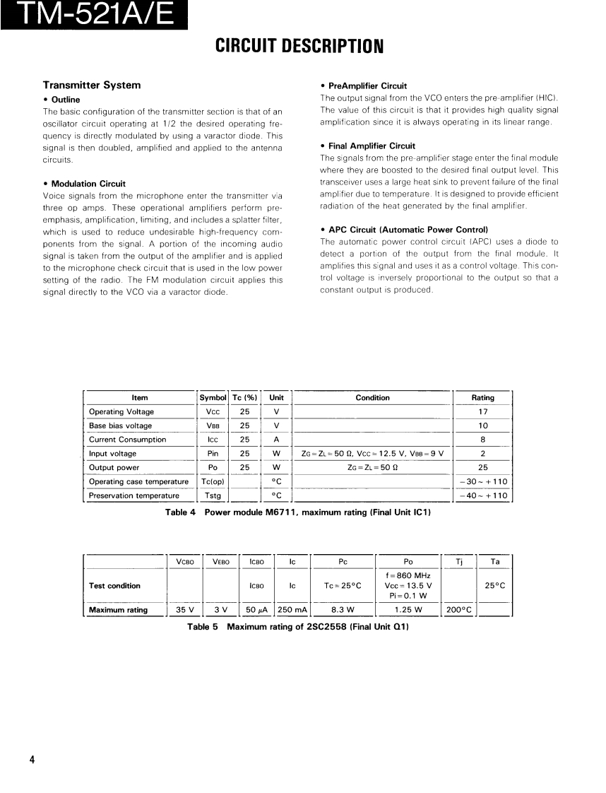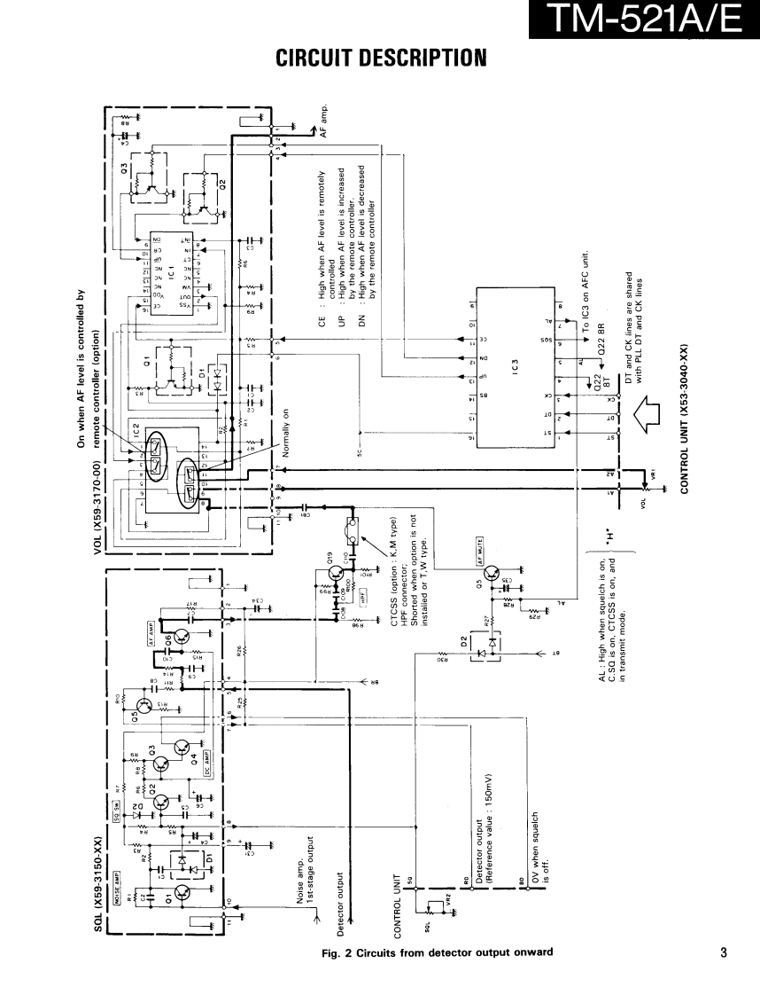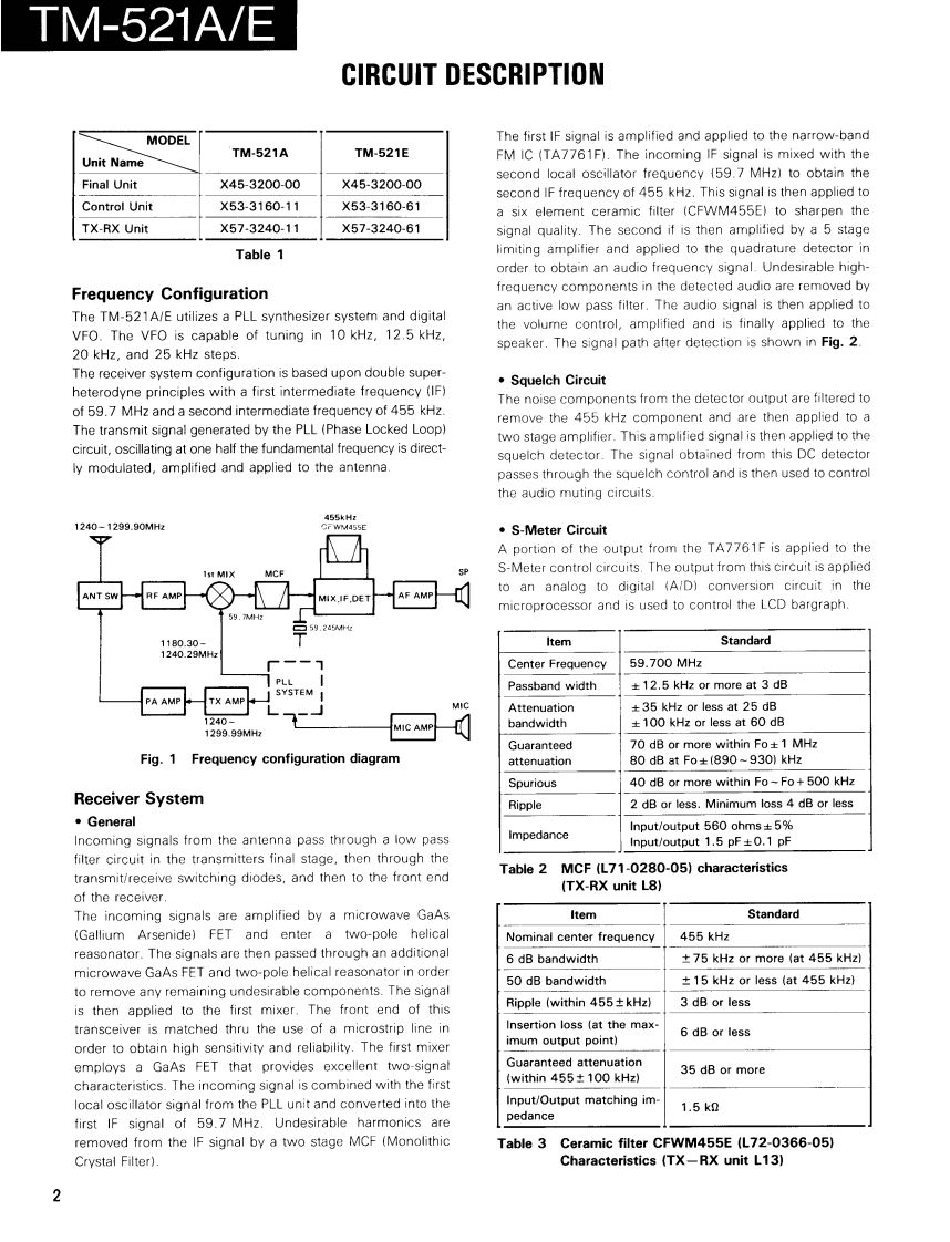 1200MHz FM TRANSCEIVERTM-521A/EKENWOODSERVICE MANUALC1988-3 PRINTED IN JAPANB51-3477-00(T)645Knob (MHz,M.IN.VFO/M)Metallic cabinet (Top)(K29-3058-041×3A01.1021-031Knob (VOL,SDL)Panel ass'y(K29-3061-041×2IA20-1Knob IPOWER,LOW]K29-3061-04)×25541295.000Knob (MAIN)K29-3060-04】Knob ass'y (SHIFT)Microphone'Knob ass'y (TONET91-)K29-3069-04)K29-3070-04)Knob (REV)Knob ass'y (CTCSS)(K29-3065-04(K29-3068-04)Knob (SCAN)(k29-3067.04)*Refer to parts list on page 18.Supplied free by VK5ZLRPhoto is TM-521A.CONTENTSCIRCUIT DESCRIPTION.....2IF UNIT(X59-3140-00)..44SEMICONDUCTOR DATA.........13SQL UNIT(X59-3150-00)..44DESCRIPTION OF ELEMENTS.......14MIC UNIT(X59-3160-00..44PARTS LIST....8V0 L UNIT(X59-3170-00).…44EXPLODED VIEW........33APC UNIT(X59-3130-00).PACKING.3444FINAL UNIT(X45-3200-00.45DISASSEMBLY FOR REPAIR..35CONTROL UNIT (X53-3160-XX).........................46LEVEL DIAGRAM......37TX-RX UNIT (X57-3240-XX)..........................4BLOCK DIAGRAM.38SCHEMATIC DIAGRAM............49ADJUSTMENT..........39TERMINAL FUNCTIONS.53PC BOARD VIEWSTSU-5 (CTCSS UNIT)...54VC0UNT(X58-3350-11)..43SPECIFICATIONS....Back coverAFC UNIT(X59-3410-00)…..44