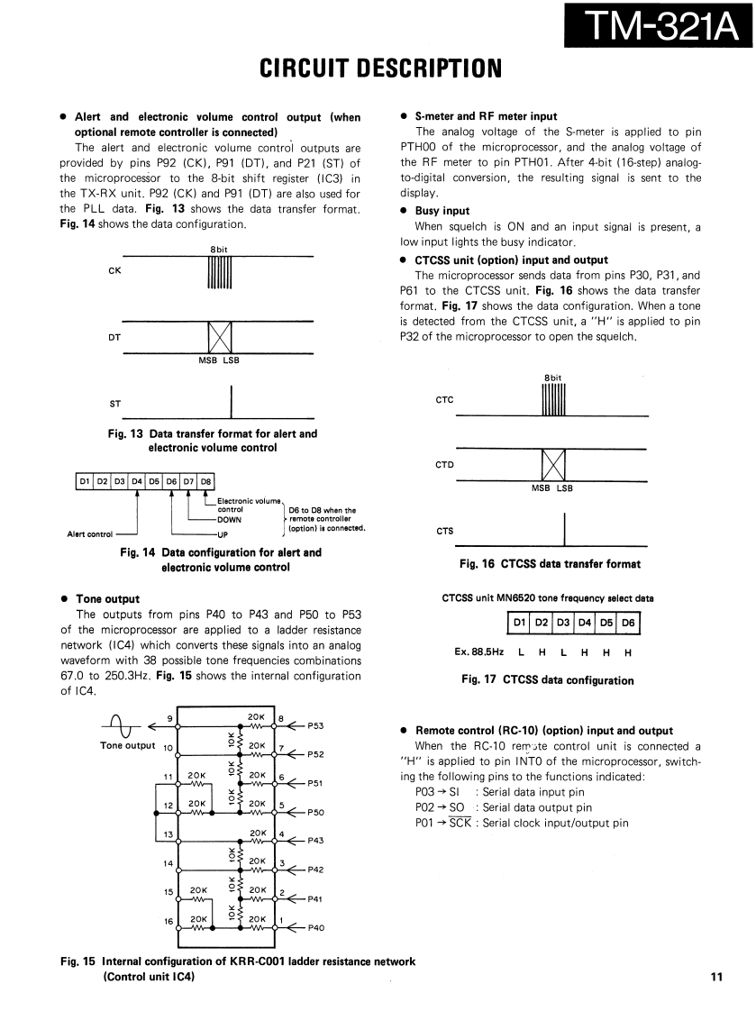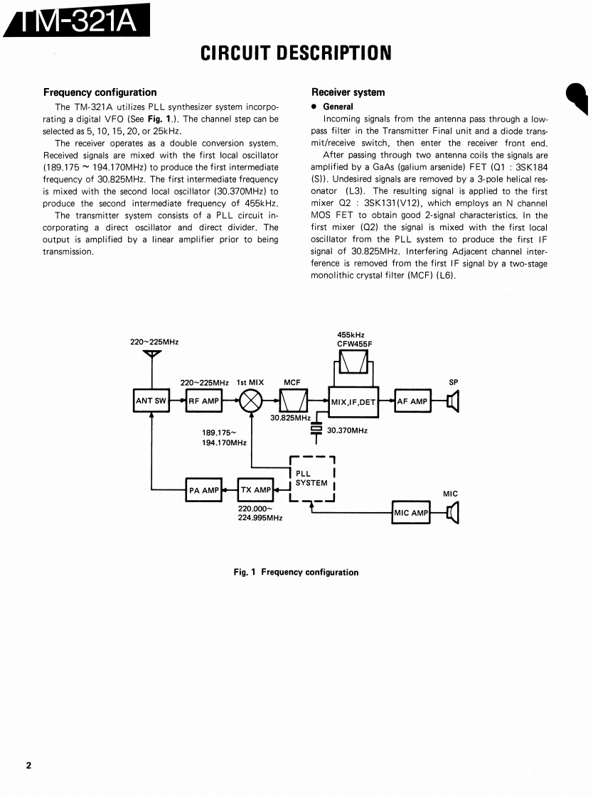 220MHz FM TRANSCEIVERTM-321AKENWOODSERVICE MANUALC)1987-8 PRINTED IN JAPANB51-3305-00(0)1196BRyan FieldswqcRKnob(Button)Matallic cabinet (Upper)Knob (Button)(K29-3058-041(A01-1021-03)(K27049604)×2BRan⊙Bryan Felds时Panel ass'yKnob (VOL,SQL)Microphone(A20-262902)(K29-3061-04)x2(T91-035905)KENWOODO220MH:FM TRANSCEIVER IM 321A2219809Knob (Main)Knob (Button)(K29-3060-04)(K29-3070-04)】Knob (Button)Knob (Button)(K29-3069-04)(K29-306804】Knob(Button)Knob(Button】(K29-306504)(K29-3067-04)CONTENTSCIRCUIT DESCRIPTION....·..·..21F(X59-3140-00)40SEMICONDUCTOR DATA..................12S0L(X59-3150-00).···%DESCRIPTION OF ELEMENTS......·.·13M1C(X59-316000....·.…40PARTS LIST.·16V0L(X59-3170-00).,....,..·.....40EXPLODED VIEW,......,·,·30FINAL UNIT(X45-1360-11).....41PACKING .............................31TX-RXUN1T(X57.3170-10142DISASSEMBLY..........................32CONTROL UNIT (X53-3040-13)44ADJUSTMENT..·,33SCHEMATIC DIAGRAM,.,·.·.··,·45PC BOARD VIEWSLEVEL DIAGRAM......................49LCD ASS'Y(B38-0303-05)..·.···39BLOCK DIAGRAM···50VC0(X58-3090-11)·..·····39TERMINAL FUNCTIONS..······51DRIVE(X59-3120-11).·.····39TSU-5(CTCSS UNIT)..··52APC(X59-3130-00).····40SPECIFICATIONS,..·····BACK COVER