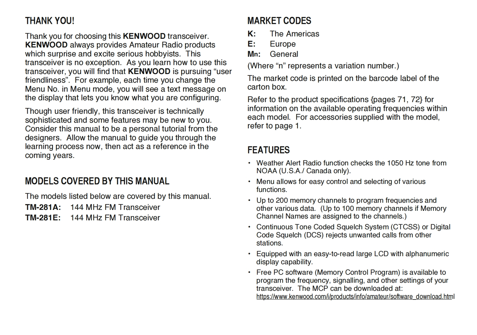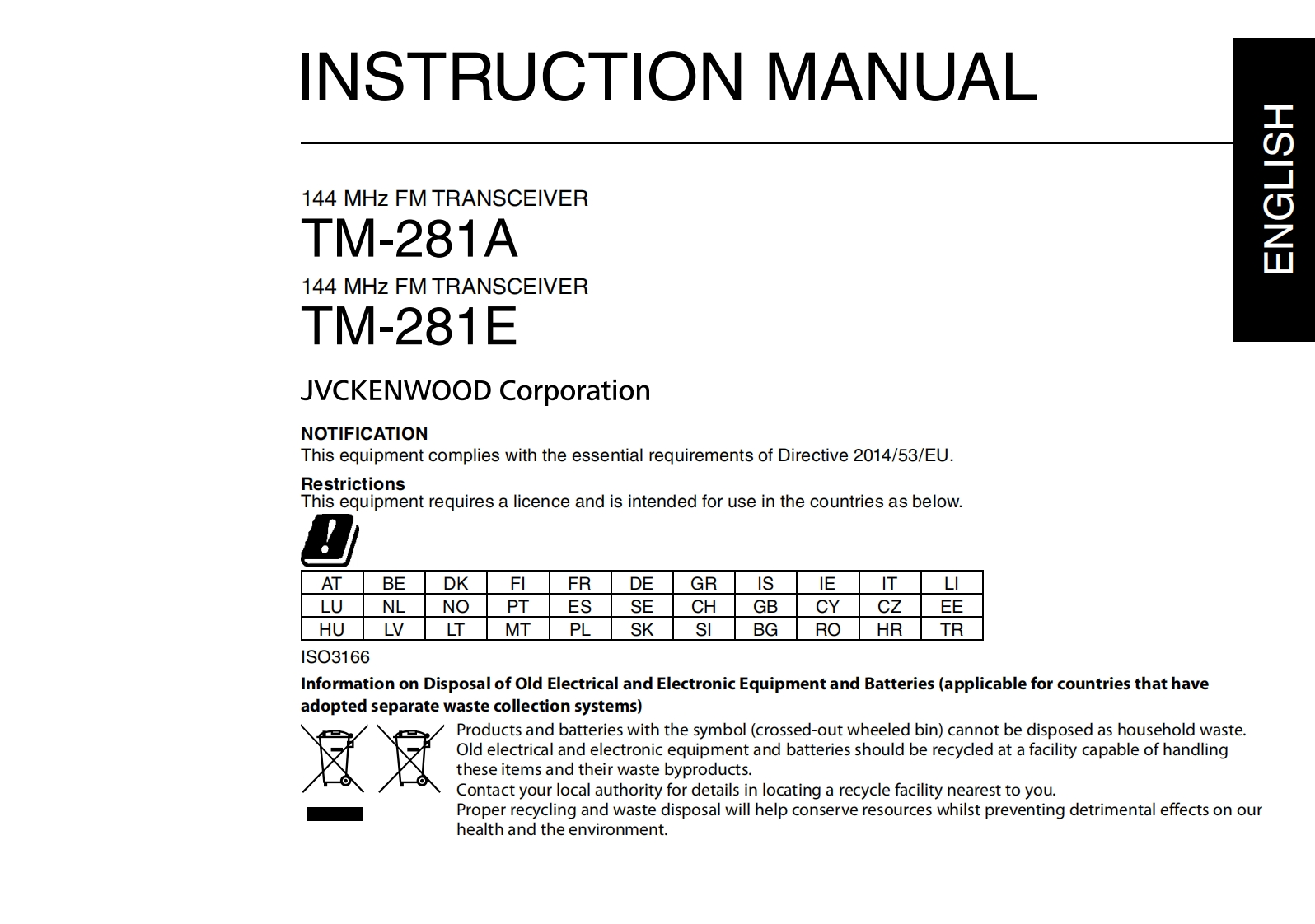 tm281ae_使用说明书手册找手册网30天前发布关注私信4.19MB244页048tm281ae_使用说明书手册此内容为付费资源,请付费后查看¥19¥21黄金会员免费钻石会员免费登录购买付费资源 第1页 / 共244页 第2页 / 共244页 第3页 / 共244页 第4页 / 共244页 第5页 / 共244页 第6页 / 共244页 第7页 / 共244页 第8页 / 共244页 第9页 / 共244页 第10页 / 共244页 试读已结束,还剩234页,您可下载完整版后进行离线阅读 THE END建武 文本预览 TM-281A/TM-281E144 MHz FM TRANSCEIVERINSTRUCTION MANUALEMETTEUR-RECEPTEUR FM 144 MHzMODE D'EMPLOIKENVOODTRANCEPTOR FM 144 MHzMANUAL DE INSTRUCCIONES型ONEM-VMJN SOLJVCKENWOOD Corporation回5回B62-2347-50(K,E,M2)照 查看更多 收起部分 喜欢就支持一下吧收藏