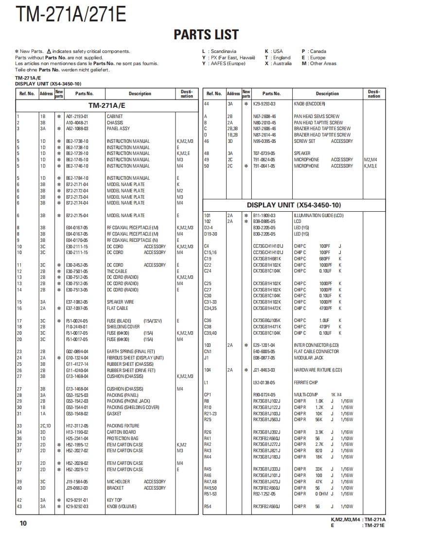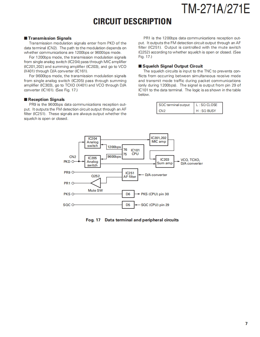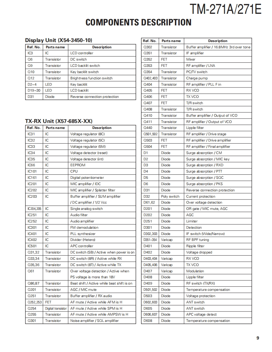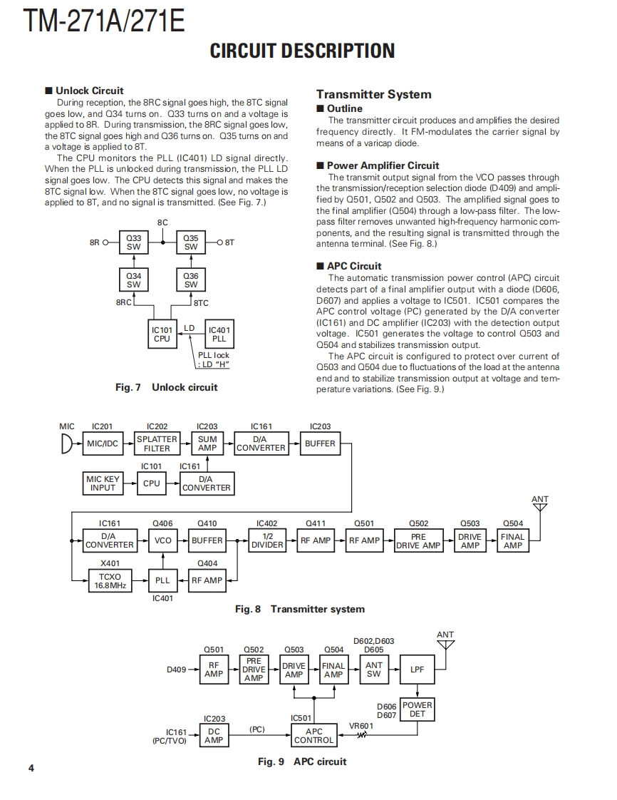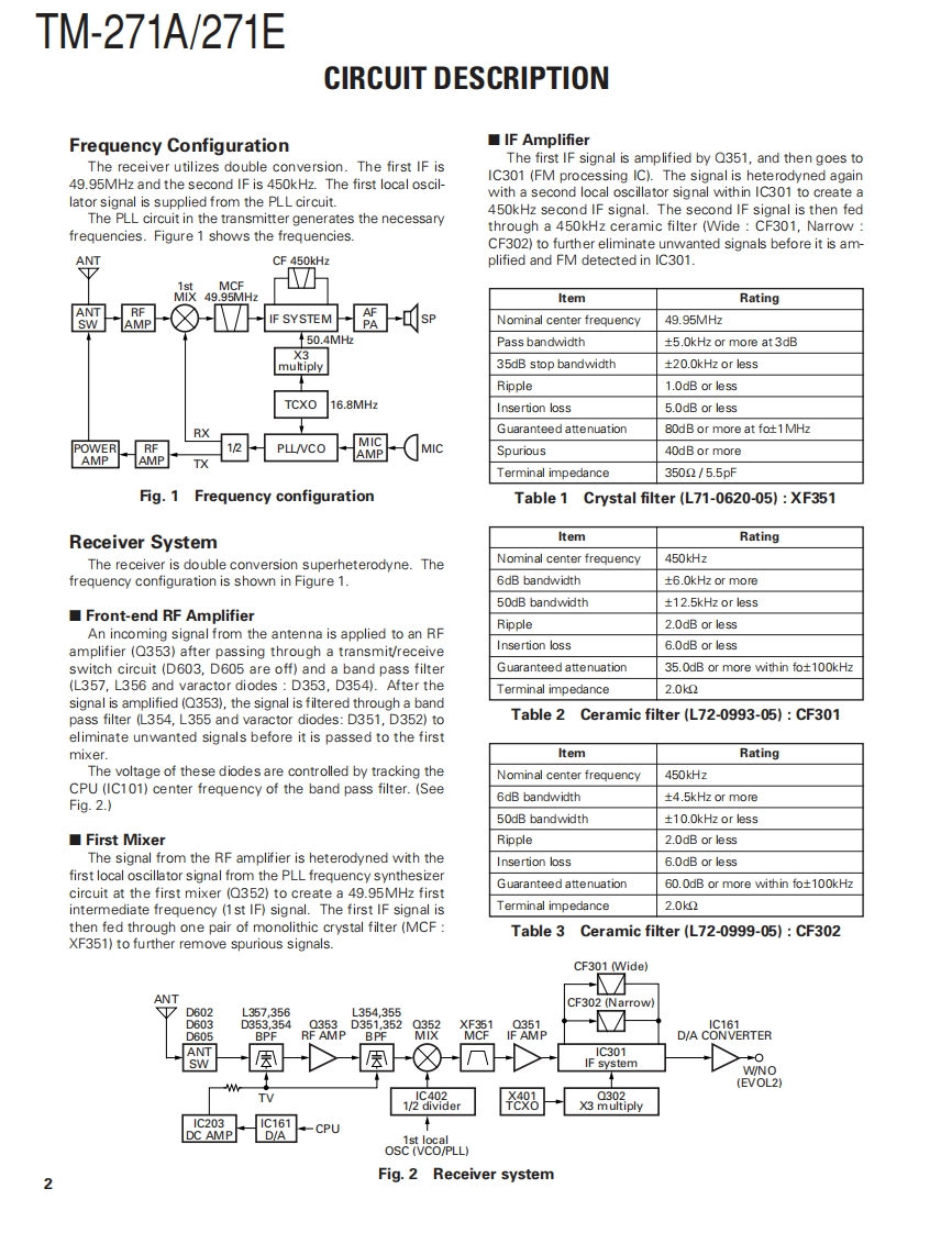 VHF FM TRANSCEIVERTM-271A/271EKENWOODSERVICE MANUAL2003-10 PRINTED IN JAPANB51-8663-00(N743TM-271A(M2,M4)Key top(K29-9291-01)MicrophoneKnob(Volume)(T91-0624-05)(K29-9292-03)Cabinet(A01-2193-01)1697099Knob (Encoder)(K29-9293-03)Panel assy(A62-.1088-03)TM-271A/E (K,M3,E)Key top(K29-9291-01)MicrophoneKnob (Volume)(T91-0641-05)(K29-9292-03)⊙⊙3图明用Cabinet(A01-2193-01)网580099Knob (Encoder)(K29-9293-03)Panel assy(A62.1088-03)CONTENTSCIRCUIT DESCRIPTION.........2TERMINAL FUNCTION .........27SEMICONDUCTOR DATA...................8PC BOARDCOMPONENTS DESCRIPTION...9DISPLAY UNIT (X54-3450-10).........28PARTS LIST...10TX-RX UNIT (X57-685X-XX)...............30EXPLODED VIEW.…17SCHEMATIC DIAGRAM.............34PACKING…18BLOCK DIAGRAM.…38RESETTING THE TRANSCEIVER...........19LEVEL DIAGRAM....40ADJUSTMENT…20SPECIFICATION.BACK COVER