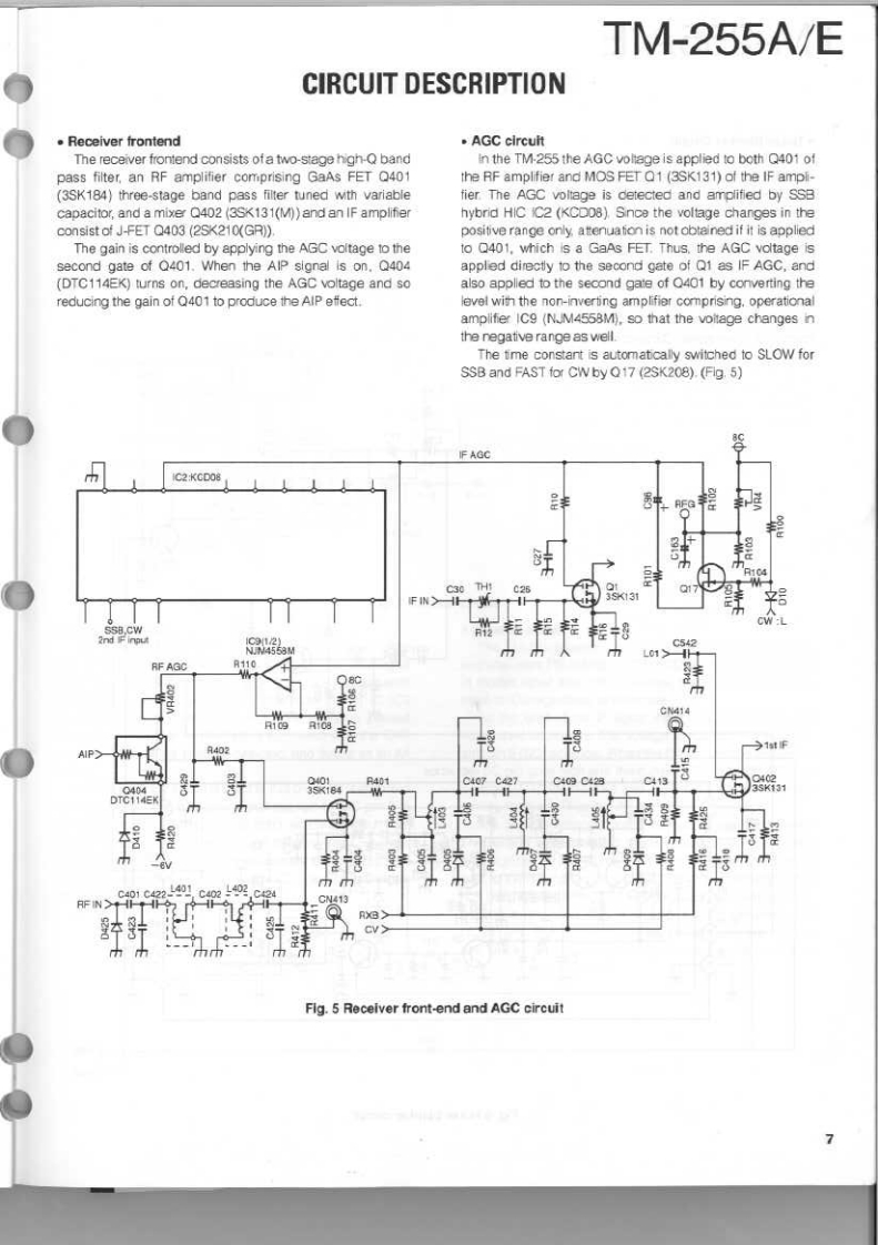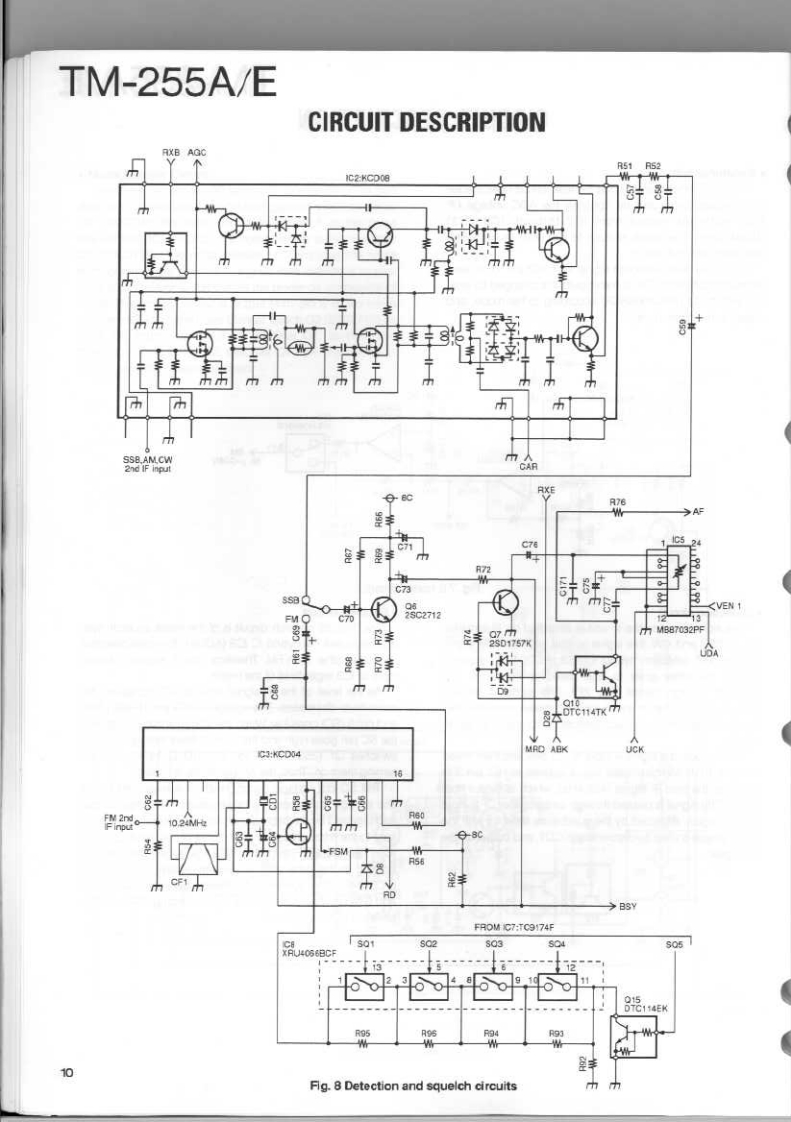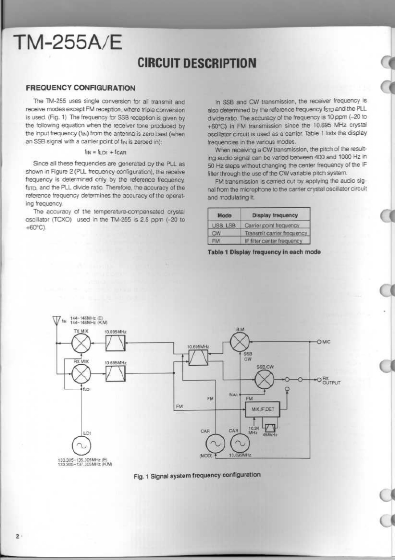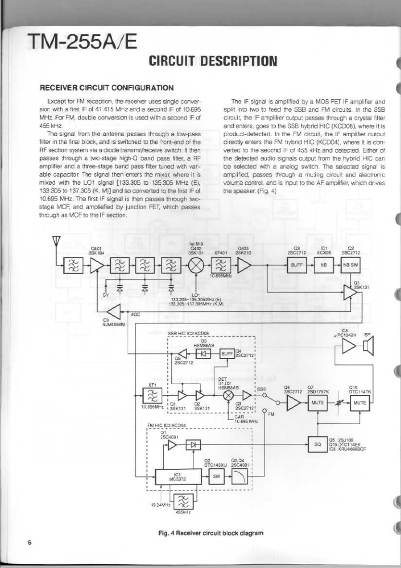 144MHz ALL MODE TRANSCEIVERKENWOODTM-255A/ESERVICE MANUALO 1994-2 PRINTED IN JAPANB51-8266-00(B)1095PanelKnobKnobMetallic cabinet (UPPER)(A62-0339-03):255A(K29-4870-04)(K294870-04(A01-207702)A62-0340-03:255EKnob(K294871-04)Knob (M.CH)(K29-3156-04146.9700a22684Panel(BASE)Knob(POWER)(A62-026503(0K27309104)Foot Insulation(02-0441-05)1路给器密4Knob(AF·VOL,RTKncb (F)Knob (SHIFT)(K294882-04K29-4916-04Knob (RIT)Knob (M.IN)K29-4809-04Knob(M>V)(K29-4861-14)(K29-4864-14)K29-4865-14Knob (TONE)Knob (REV)(K29-4868-04K29-4869-041Knob(SQL,SHIFT)K294310-04PHOTO is TM-255ECONTENTSCIRCUIT DESCRIPTION...….2SUB UNIT(DDS)(X58-4020-0X)94SEMICONDUCTOR DATA..............27TX-RX UNIT (X57-4530-XX)(A/5)......95DESCRIPTION OF COMPONENTS...............34CONTROL UNIT (X53-351X-XX)(A/2)..............99PARTS LIST...............4.40SUB UNIT(VCO)(X58-4110-00)…101EXPLODED VIEW..….64MODULE UNIT(FAN)(X59-4020-00)102EXPLODED VIEW (CONTROL)...........65LCD ASSY(B38-0701-25)4n.103PACKING**4.66SCHEMATIC DIAGRAM.........105ADJUSTMENT.........67TERMINAL FUNCTION.117PC BOARD VIEWSBLOCK DIAGRAM........123CONTROL UNIT (X53-351X-XX)(B/2).............88WIRING DIAGRAM.125TX-RX UNIT(X57-4530-X0(D5).88LEVEL DIAGRAM.......127TX-RX UNIT(X57-4530-X0(E5.….89DFK-7A(PANEL SEPARATE KIT).129TX-RX UNIT (X57-4530-XX)(B/5).......90PG-5A (DATA CABLE).129TX-RX UNIT(CX57-4530-X0(C/5)..92SPECIFICATIONS............BACK COVERDESTINATION LISTTypeUnitDestinationFreq.rangeTransmit(Guaranteed speciflcalion)powerTM-255AKY52-3190-11North America144.0b147999395MH240wTM-255AMY32.3190-21GeneralMarket14d.0b147999995MHz40WTM-255EY52-3192.71Euroge144.0to.145992995MH240wTM-255EEgY52-3192-72Frarce144.0tD145999995NHz40w