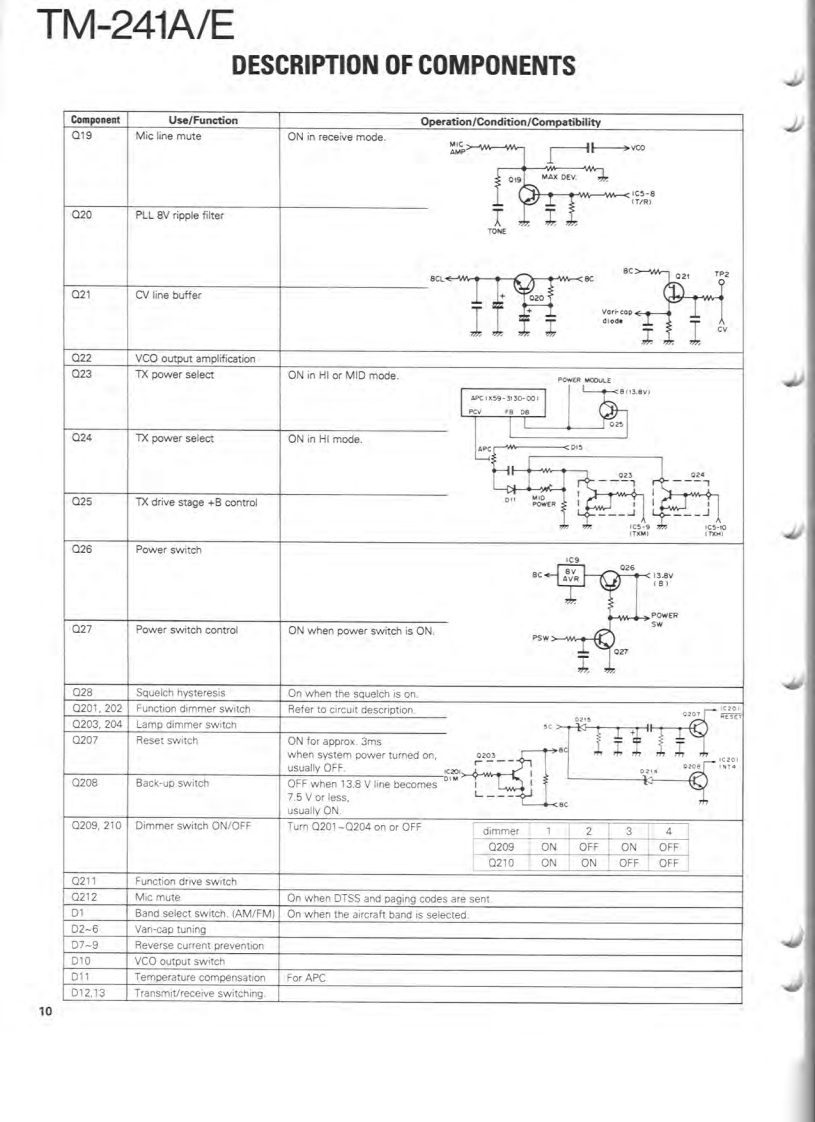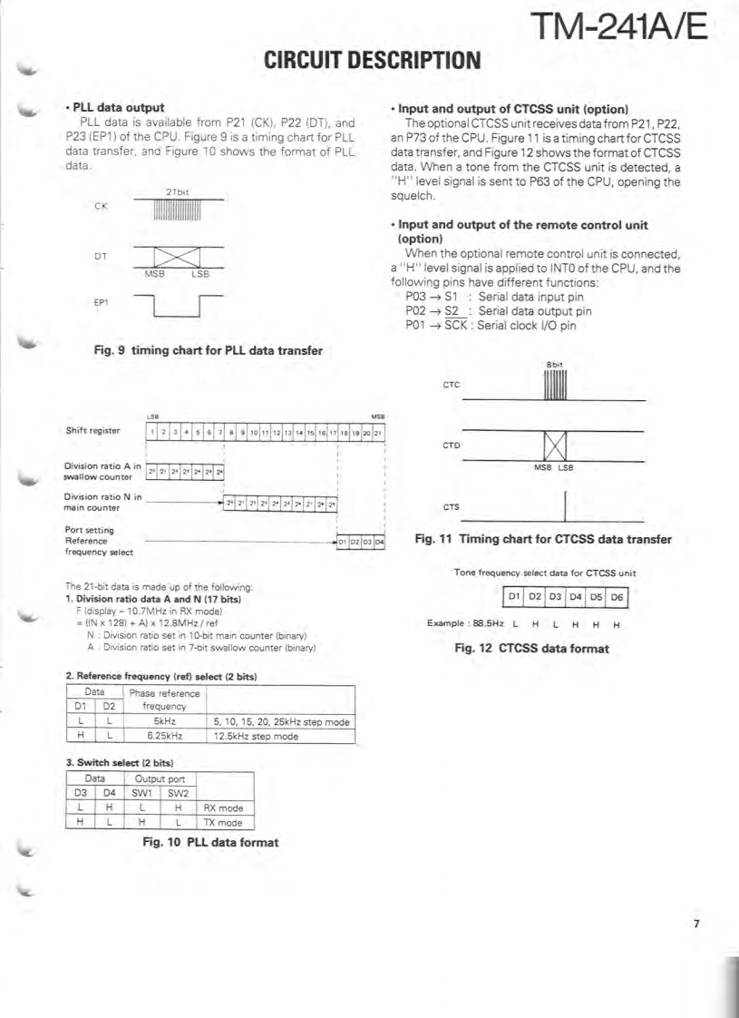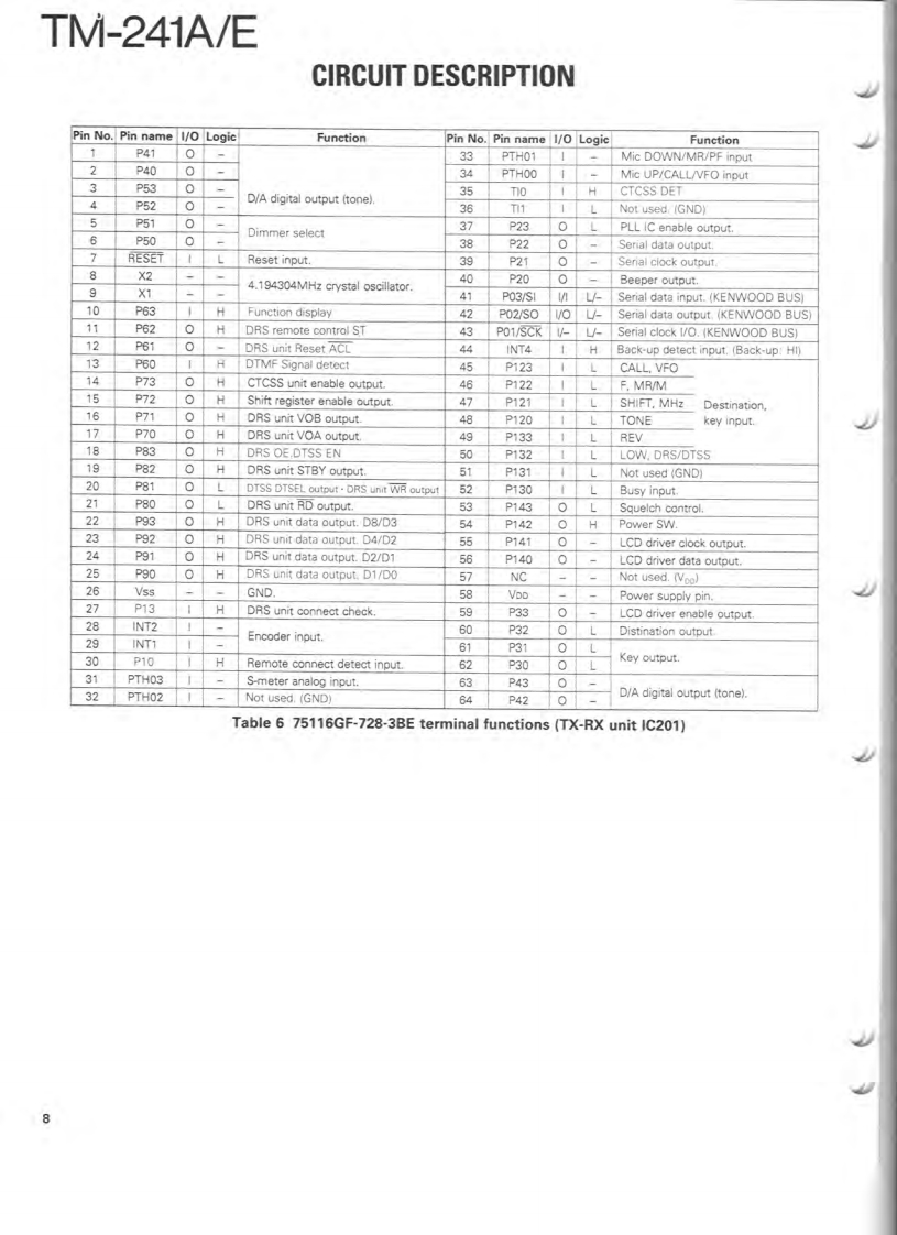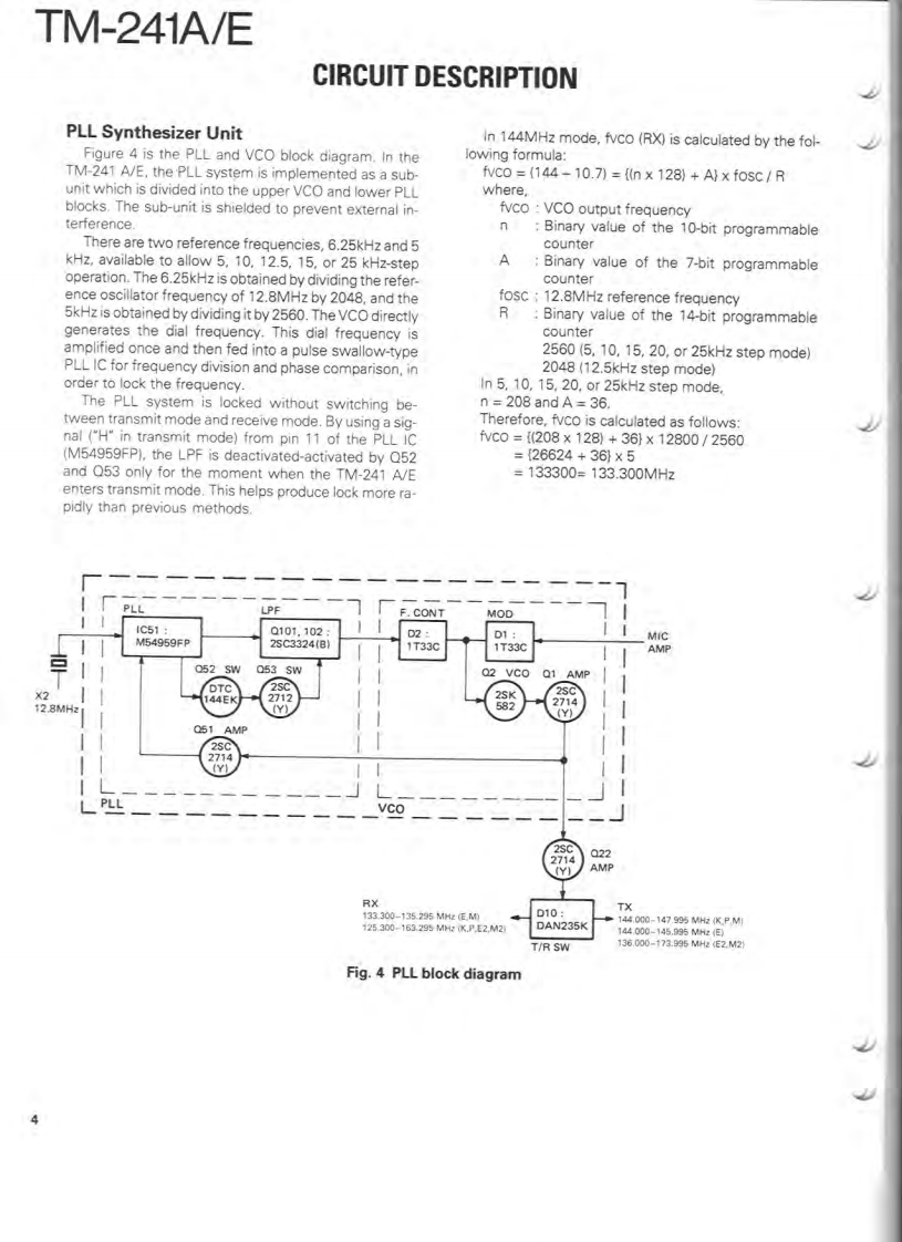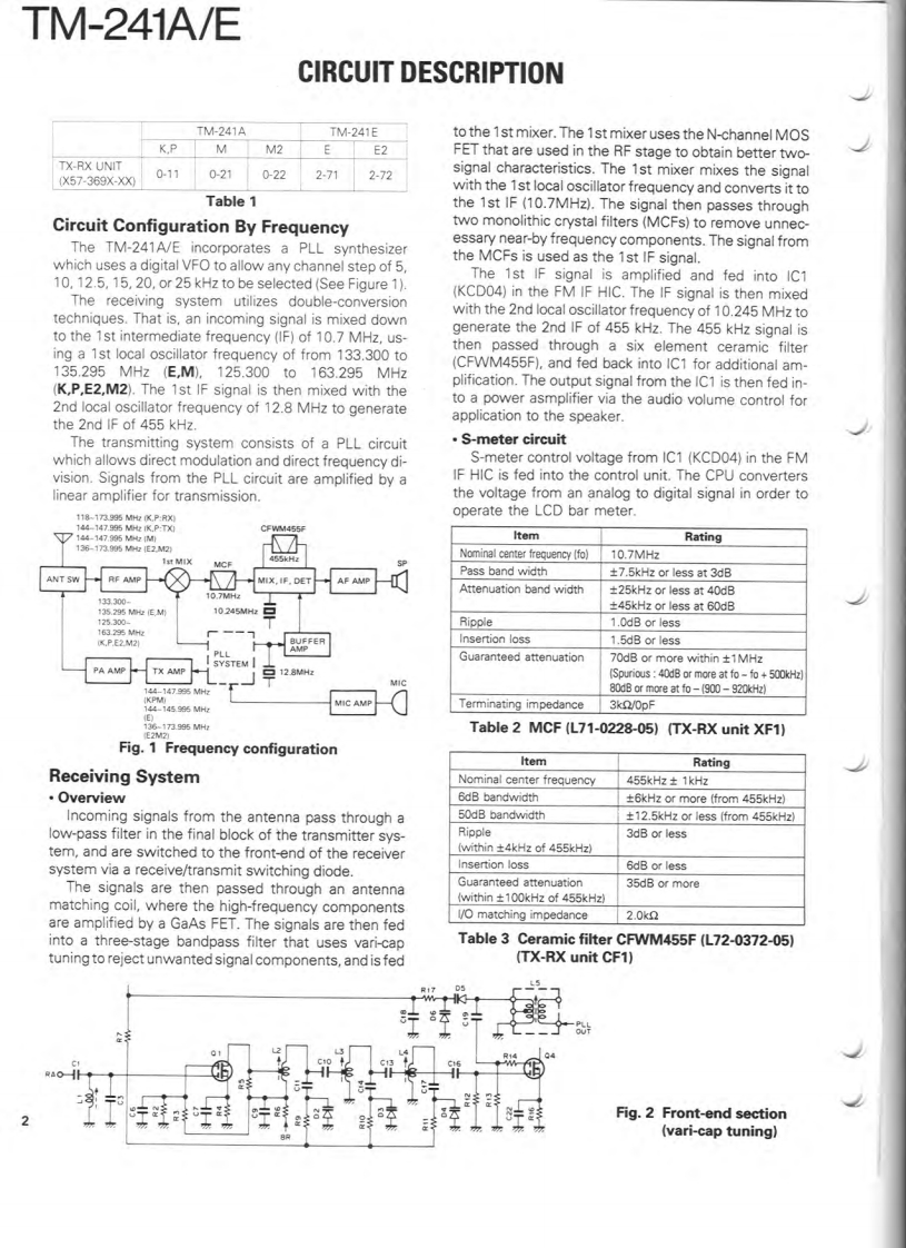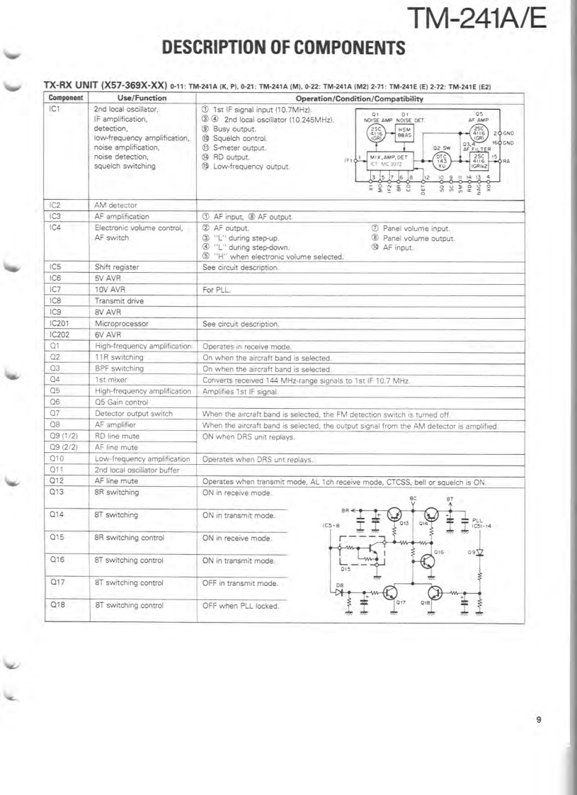 144MHz FM TRANSCEIVERTM-241A/EKENWOODSERVICE MANUALC1990-9 PRINTED IN JAPANB51-8059-00(B)1406Knob (VFO,MR,MHz)Microphone"K27-303514)×3(T91-Panel ass'y"(A62-Knob [VOL,SOLK29-3157-04)Knob (LOW)K27-3067-041Knob (POWER)K273066-04)KENWOODy6.970F28■单■Knob (BELL)Knob (REV]K27-3070-041K27-3072-04)Knob (MAIN)Knob (CALL)Knob (F)Knob (TONE)Knob (DR/DT)Mic receptacleK293156-04)K27-3068-04)K27-306904)K27-3071-041K27-3075-04E06-0860-051Photo is TM-241A.Refer to parts list on page 12.CONTENTSCIRCUIT DESCRIPTION...SCHEMATIC DIAGRAM..................35DESCRIPTION OF COMPONENTS...9TERMINAL FUNCTIONS.......................39PARTS LIST.2BLOCK DIAGRAM..40EXPLODED VIEW..3LEVEL DIAGRAM.....42PACKING24DRU-1 (DIGITAL RECORDING UNIT)...............43ADJUSTMENT........25DTU-2 (DTMF UNIT)....51PC BOARD VIEWS/CIRCUIT DIAGRAMMC-44 (MULTI FUNCTION MICROPHONE)..........54LCD ASS'Y(B38-0330-05)29MC-44DM/MC-44DME(MULTI FUNCTIONP儿L0X58-3470-00)30MICROPHONE WITH AUTOPATCH)..............53APCX59-3130-00).32MC-44E (MULTI FUNCTION MICROPHONE).......55MIC AMP(X59-3610-00)32TSU-6(CTCSS UNIT)..........56TX-RX UNIT (X57-369X-XX).33SPECIFICATIONS............BACK COVER