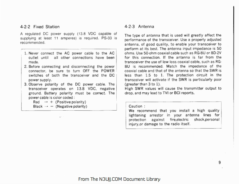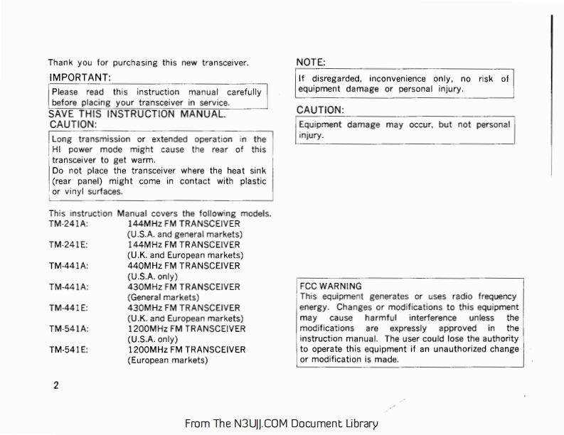 TM-241_Operating_操作说明书手册找手册网30天前发布关注私信1.68MB57页025TM-241_Operating_操作说明书手册此内容为付费资源,请付费后查看¥19¥21黄金会员免费钻石会员免费登录购买付费资源 第1页 / 共57页 第2页 / 共57页 第3页 / 共57页 第4页 / 共57页 第5页 / 共57页 第6页 / 共57页 第7页 / 共57页 第8页 / 共57页 第9页 / 共57页 第10页 / 共57页 试读已结束,还剩47页,您可下载完整版后进行离线阅读 THE END建武 文本预览 144MHz FM TRANSCEIVERTM-241A/241E430/440MHz FM TRANSCEIVERKENWOODTM-441A/441E1200MHz FM TRANSCEIVERTM-541A/541EINSTRUCTION MANUALKENWOOD CORPORATIONCe62-0031-3012111009080706050403From The N3UJJ.COM Document Library 查看更多 收起部分 喜欢就支持一下吧收藏