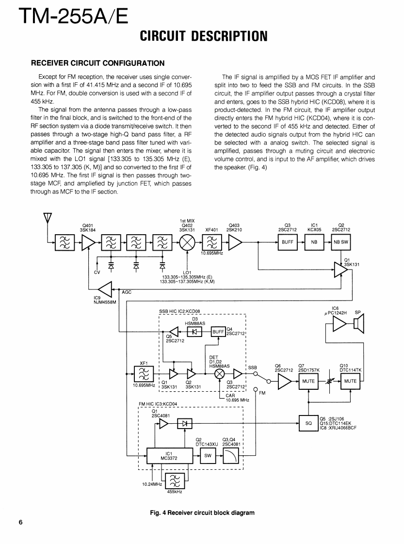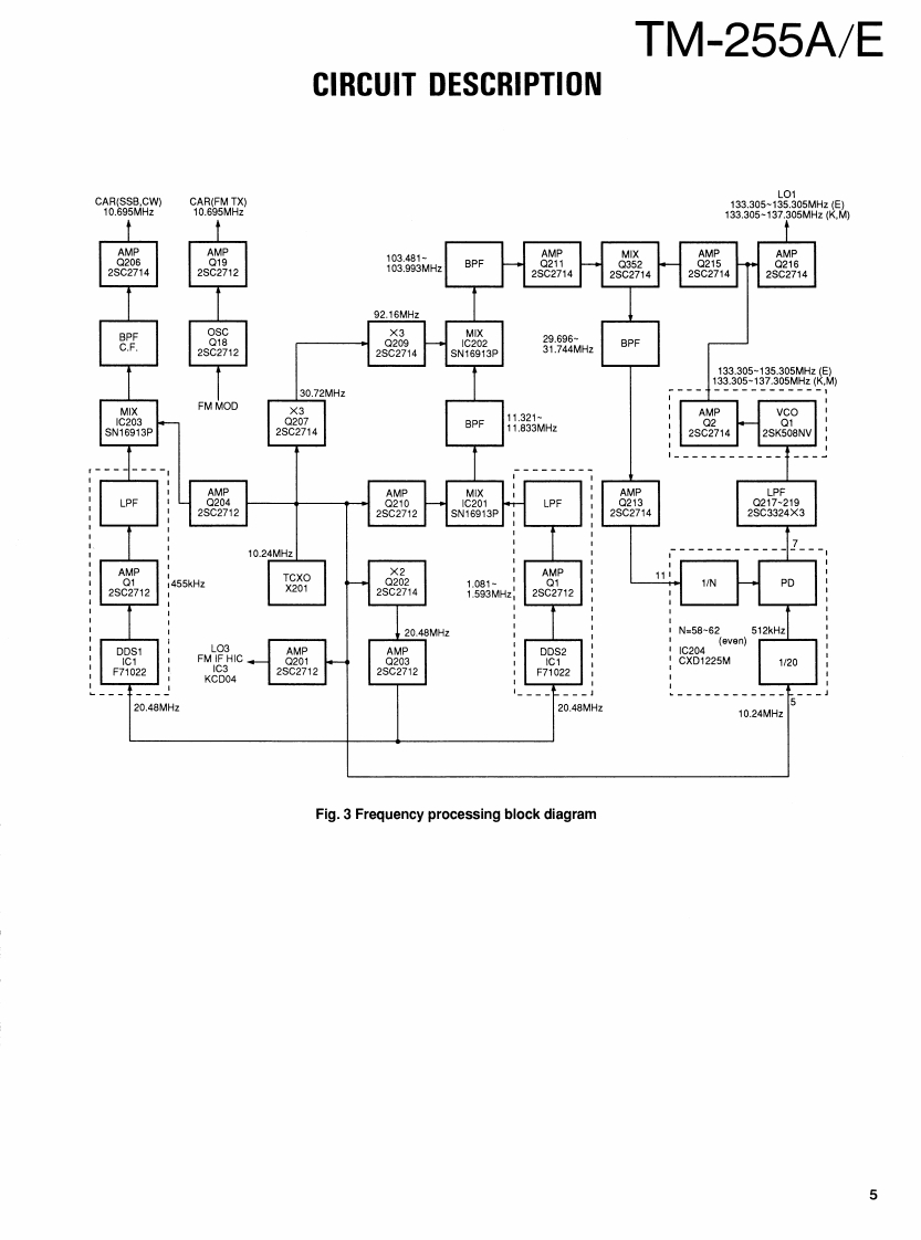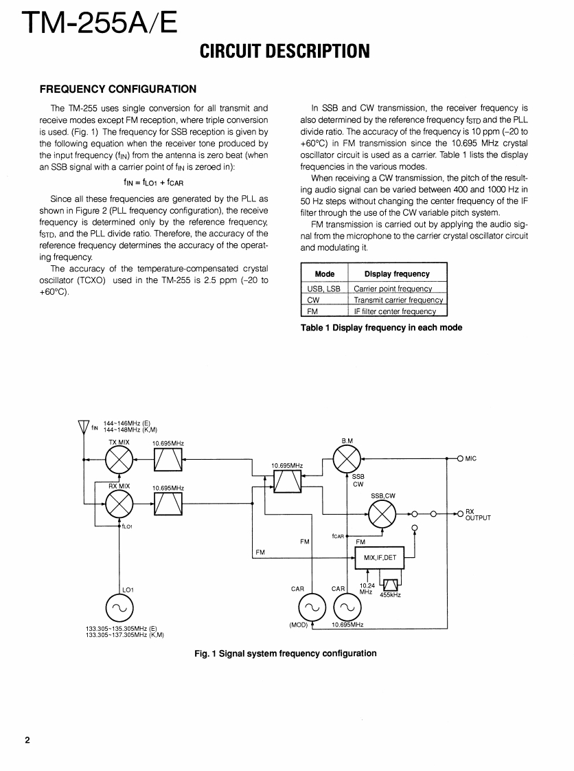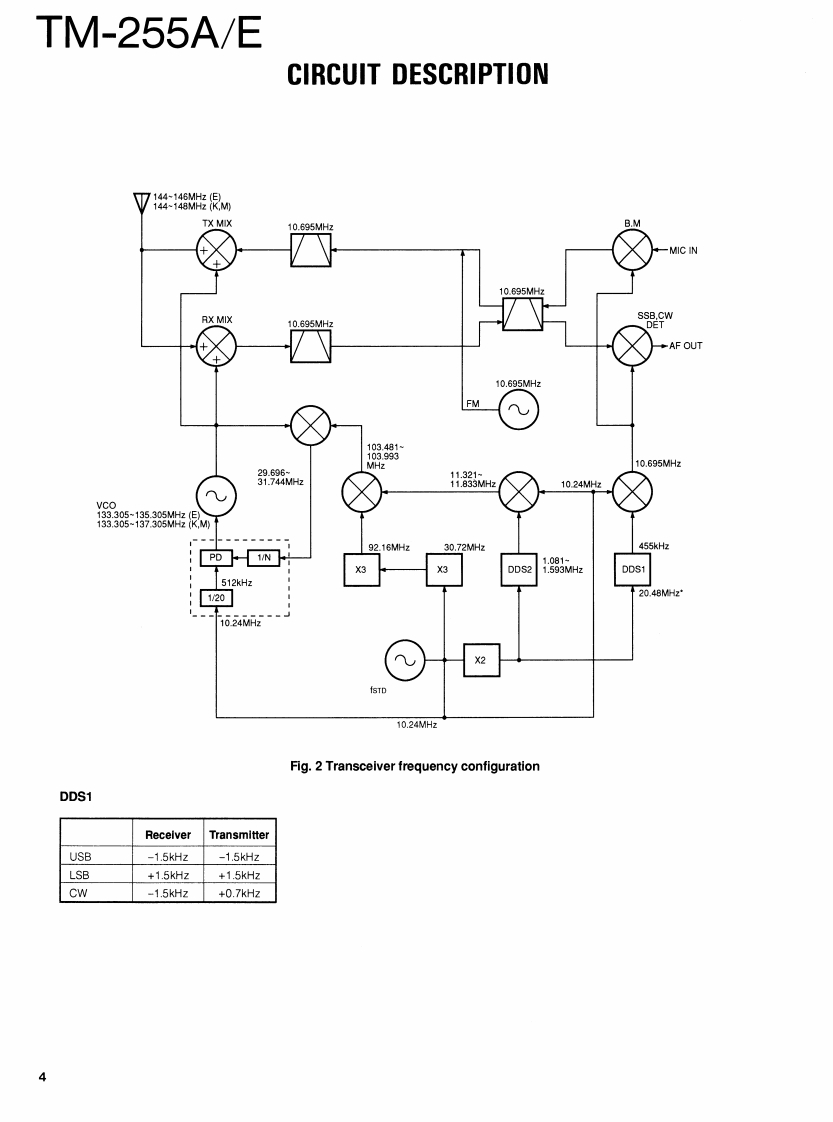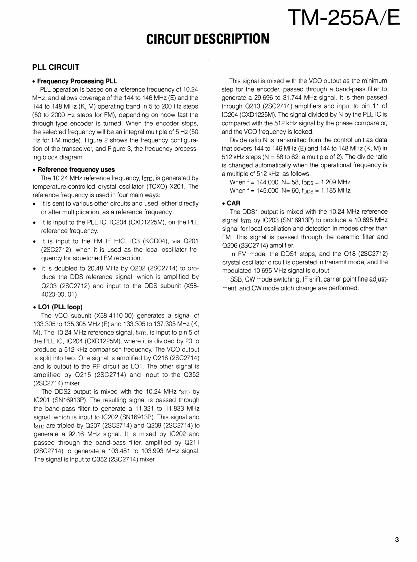 144MHz ALL MODE TRANSCEIVERKENWOODTM-255A/EBRXAN FieldSWACRSERVICE MANUALBRyANO BRYAN Fields.NetO 1994-2 PRINTED IN JAPANB51-8266-00(B)1095PanelKnobKnobMetallic cabinet (UPPER)(A62-0339-03):255A(K29-4870-04)(K29-4870-04)(A01-2077-02)(A62-0340-03):255EKnob(K29-4871-04)KENWOODKnob (M.CH)(K29-3156-04)469700uE79吗VOL -9-SOLKnob(MAIN)(K21-0793-04)Panel (BASE)Knob(POWER)(A62-0265-03(K27-3091-04)Foot Insulation(J02-0441-05)Knob (MR)Knob (A/B)Knob (MHz)(K29-4858-14)(K29-4859-14)(K29-4860-14)Knob(AF·VOL.RITKnob (F)Knob(SHIFTK29-4809-04)(K29-4862-04(K29-4916-04)Knob(RITKnob (M.IN)Knob (M>V)K29-4861-14)(K29-4864-14)(K29-4865-14)Knob (TONE)Knob(REV)K29-486804)(K29-4869-04)Knob(SCAN)Knob (CLR)Knob(SQL,SHIFT)(K29-4866-14)K29-4867-14)(K29-4810-04)PHOTO is TM-255ECONTENTSCIRCUIT DESCRIPTION.2SUB UNIT (DDS)(X58-4020-0X)..................94SEMICONDUCTOR DATA.....................................27TX-RX UNIT(X57-4530-XX)(A/5).95DESCRIPTION OF COMPONENTS.............34CONTROL UNIT (X53-351X-XX)(A/2)...............99PARTS LIST…40SUB UNIT(NCO)(X58-4110-00)…101EXPLODED VIEW….64MODULE UNIT(FAN)(X59-4020-00).............102EXPLODED VIEW (CONTROL)...............65LCD ASSY(B38-0701-25)…103PACKING66SCHEMATIC DIAGRAM..............105ADJUSTMENT.................67TERMINAL FUNCTION.......…117PC BOARD VIEWSBLOCK DIAGRAM…123CONTROL UNIT (X53-351X-XX)(B/2)...............88WIRING DIAGRAM.....125TX-RX UNIT(X57-4530-XX)(D/5).88LEVEL DIAGRAM......127TX-RX UNIT (X57-4530-XX)(E/5)...............9DFK-7A(PANEL SEPARATE KIT)129TX-RX UNIT(X57-4530-XX(B/5).90PG-5A (DATA CABLE)......129TX-RX UNIT (X57-4530-XX)(C/5)..92SPECIFICATIONS...................BACK COVERDESTINATION LISTTypeUnitDestinationFreq.rangeTransmit(Guaranteed speclfication)powerTM-255A个Y52.3190-11North America144.01o147.999995MHz40wTM-255AY52-3190-21General Market144.0to147.999995MHz40WTM-255EEY52.3192-71Europe144.01o145.999995MHz40WTM-255EE9Y52.3192.72France144.010145.999995MHz40W