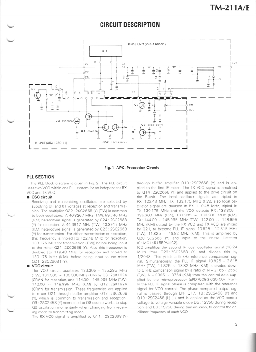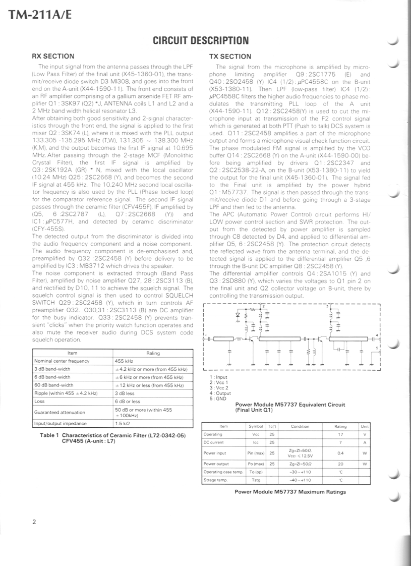 KENWOODSERVICE MANUALTM-211A/EOPTIONTU-3AVHF FM TRANSCEIVER6.9708CONTENTSCIRCUIT DESCRIPTION..2DIMENSIONS26PARTS LIST11PACKING.2PC BOARD VIEWADJUSTMENT…28AUN1T(X44-1590-11,51).22LEVEL DIAGRAM...........................3FINAL UNIT(X45-1360-01)...23BLOCK DIAGRAM......35D1 SPLAY UNIT(X54-1810-11,51,61).3SCHEMATIC DIAGRAM (K.M)............................37BUN1T(X53-1380-11,51,61)23OPTION(TU-3A).39DISASSEMBLY..24SPECIFICATIONSBACK COVER