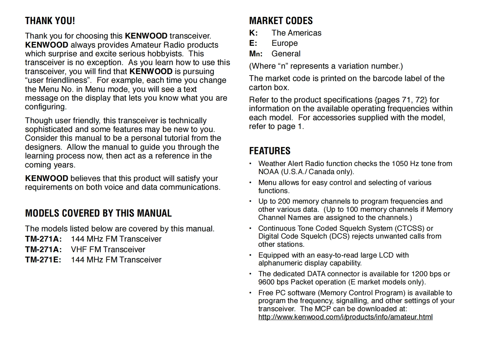 tm_271操作说明书手册找手册网30天前发布关注私信2.14MB80页032tm_271操作说明书手册此内容为付费资源,请付费后查看¥19¥21黄金会员免费钻石会员免费登录购买付费资源 第1页 / 共80页 第2页 / 共80页 第3页 / 共80页 第4页 / 共80页 第5页 / 共80页 第6页 / 共80页 第7页 / 共80页 第8页 / 共80页 第9页 / 共80页 第10页 / 共80页 试读已结束,还剩70页,您可下载完整版后进行离线阅读 THE END建武 文本预览 INSTRUCTION MANUALKENWOOD144 MHz FM TRANSCEIVERVHF FM TRANSCEIVERTM-271A144 MHz FM TRANSCEIVERTM-271E271G+=8日BsYi1J15I☑1a116RNUmONESOLKENWOODKENWOOD CORPORATION©B62-1804-00(K,E,M2,M3,M4)09080706050403020100 查看更多 收起部分 喜欢就支持一下吧收藏
