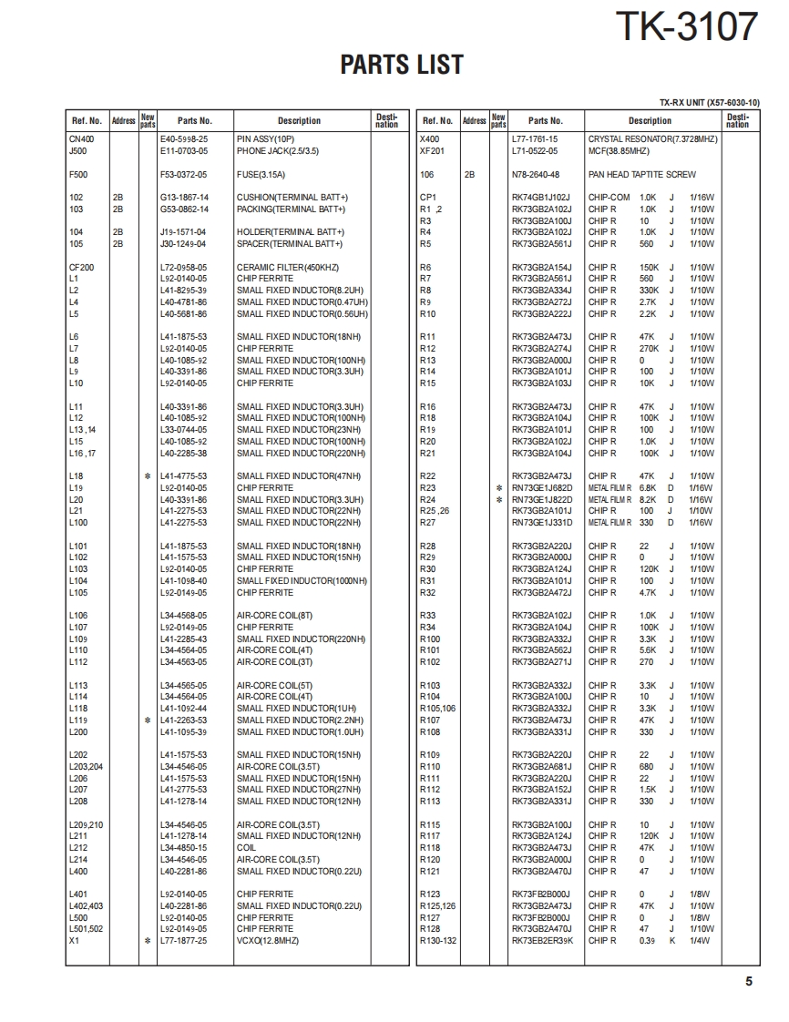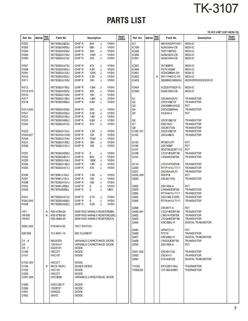 UHF FM TRANSCEIVERTK-3107KENWOODJVC KENWOOD CorporationSERVICE MANUALSUPPLEMENTM version2012-4 PRINTED IN JAPANB53-7023-00Y)PDFThis service manual has been revised due to the modification of the Drive Final FET andissues it as a supplement manual.This service manual applies to products with B2400001 orsubsequent serial numbers.Refer to the TK-3107 series service manual for any informationwhich has not been covered in this manual.Whip antennaT90-1039-25Knob(Selector)K29-5278-03)Knob (VOL)K29-5255-03)CONTENTSKENWOODGENERAL...................2PARTS LIST.....3PC BOARDTX-RX UNIT(X57-6030-10).8SCHEMATIC DIAGRAM.12Plastic cabinet assyA02-2448-53)LFThis product uses Lead Free solder.