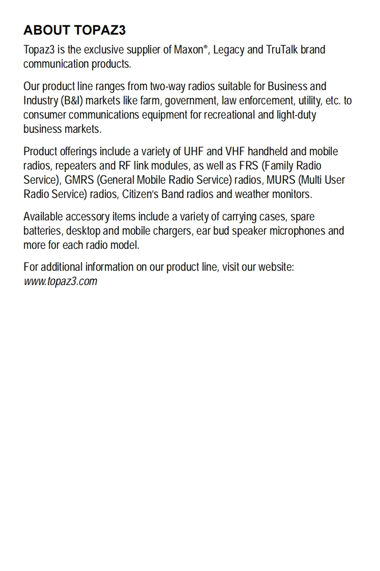 TK514操作说明书手册找手册网30天前发布关注私信0.34MB72页037TK514操作说明书手册此内容为付费资源,请付费后查看¥19¥21黄金会员免费钻石会员免费登录购买付费资源 第1页 / 共72页 第2页 / 共72页 第3页 / 共72页 第4页 / 共72页 第5页 / 共72页 第6页 / 共72页 第7页 / 共72页 第8页 / 共72页 第9页 / 共72页 第10页 / 共72页 试读已结束,还剩62页,您可下载完整版后进行离线阅读 THE END建武 文本预览 TRUTALK(TK514FRS Base StationTwo-Way UHF Radio with Weather四D4300CALLUTALKU形8a11Operating Instructions 查看更多 收起部分 喜欢就支持一下吧收藏