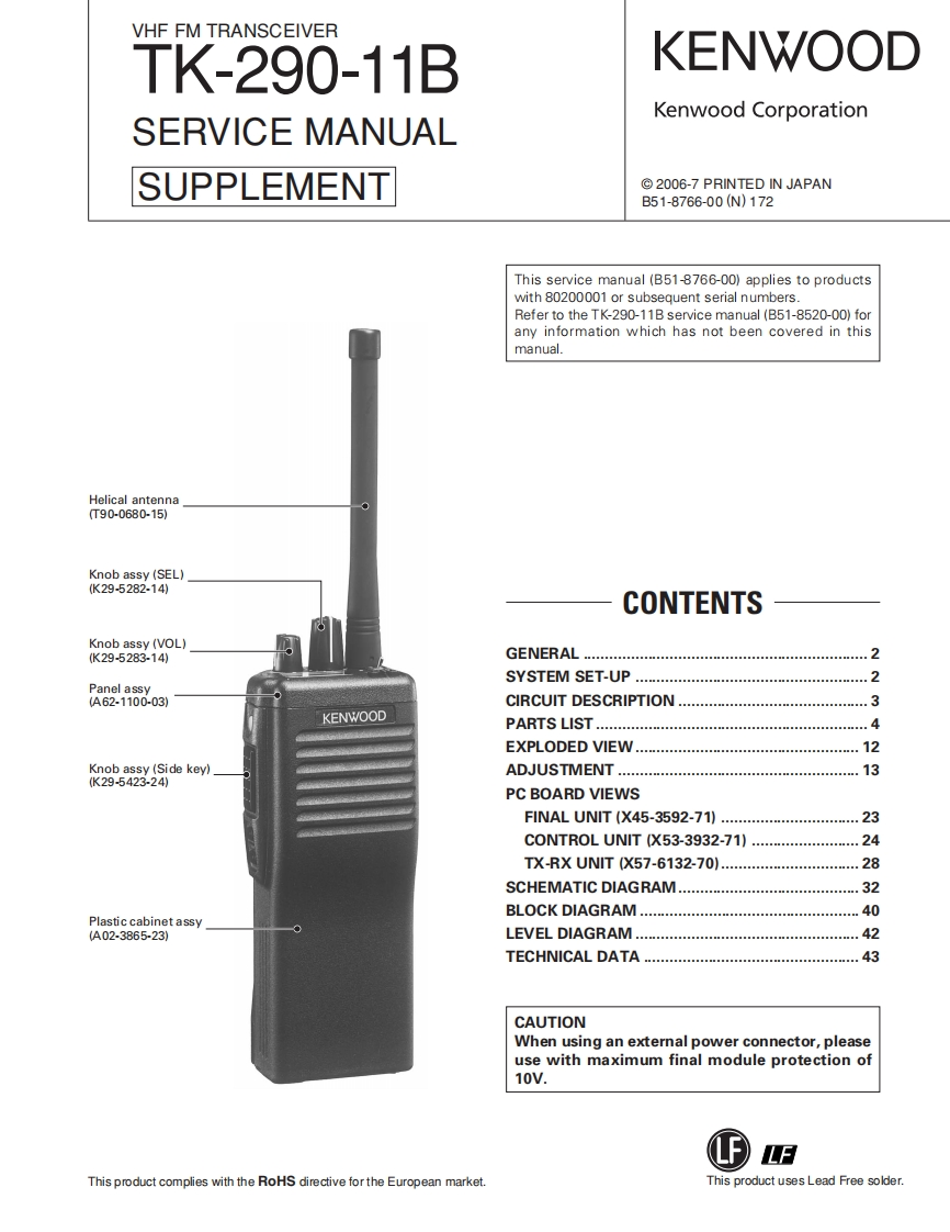 KENWOODDocument CopyrightsCopyright 2006 by Kenwood Corporation.All rights reserved.No part of this manual may be reproduced,translated,distributed,or transmitted in anyform or by any means,electronic,mechanical,photocopying,recording,or otherwise,forany purpose without the prior written permission of Kenwood.DisclaimerWhile every precaution has been taken in the preparation of this manual,Kenwoodassumes no responsibility for errors or omissions.Neither is any liability assumed fordamages resulting from the use of the information contained herein.Kenwood reservesthe right to make changes to any products herein at any time for improvement purposes.