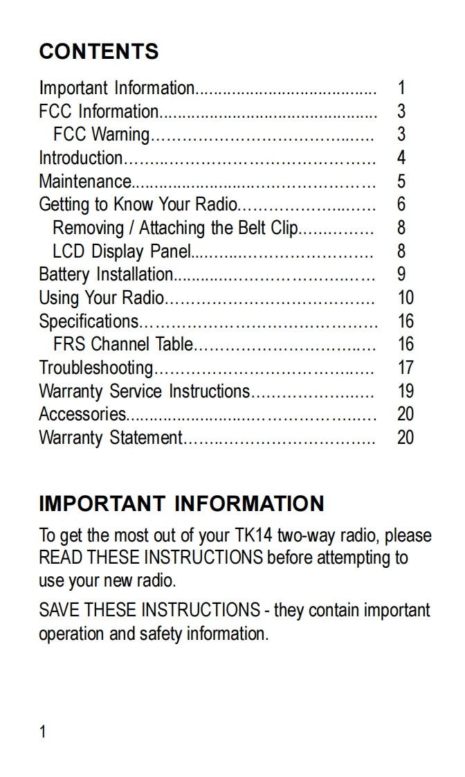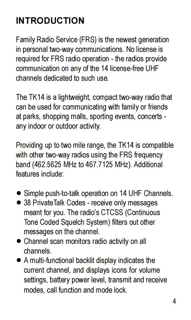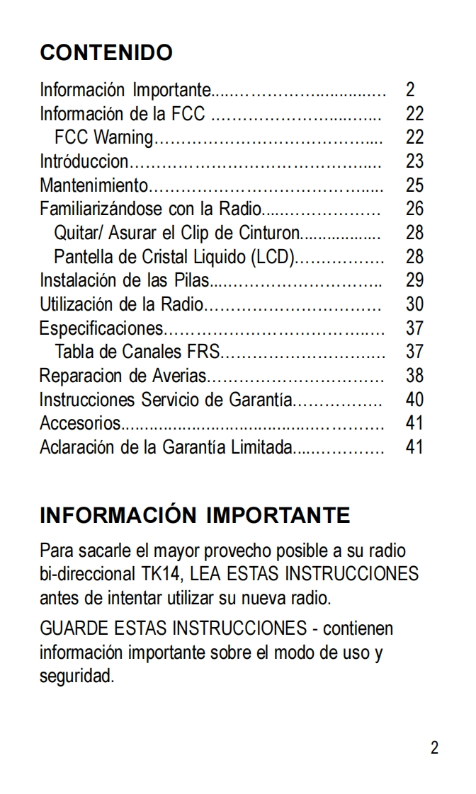 TK-14操作说明书手册找手册网31天前发布关注私信0.34MB44页047TK-14操作说明书手册此内容为付费资源,请付费后查看¥19¥21黄金会员免费钻石会员免费登录购买付费资源 第1页 / 共44页 第2页 / 共44页 第3页 / 共44页 第4页 / 共44页 第5页 / 共44页 第6页 / 共44页 第7页 / 共44页 第8页 / 共44页 第9页 / 共44页 第10页 / 共44页 试读已结束,还剩34页,您可下载完整版后进行离线阅读 THE END建武 文本预览 TK14TRUTALK@(Family Radio Service)UHF FM TRANSCEIVER(Servicio de radio familiar)UHF FM TRANSMISOR-RECEPTOR件超网14 CHANNEL FRSCALL可ASPWR88器d@回可@回可@回O©⊙OO◎@◎◇dO@◎@◎@◎@回回@回回@回6d⊙⊙⊙⊙⊙⊙⊙◎O@@©回@ 查看更多 收起部分 喜欢就支持一下吧收藏