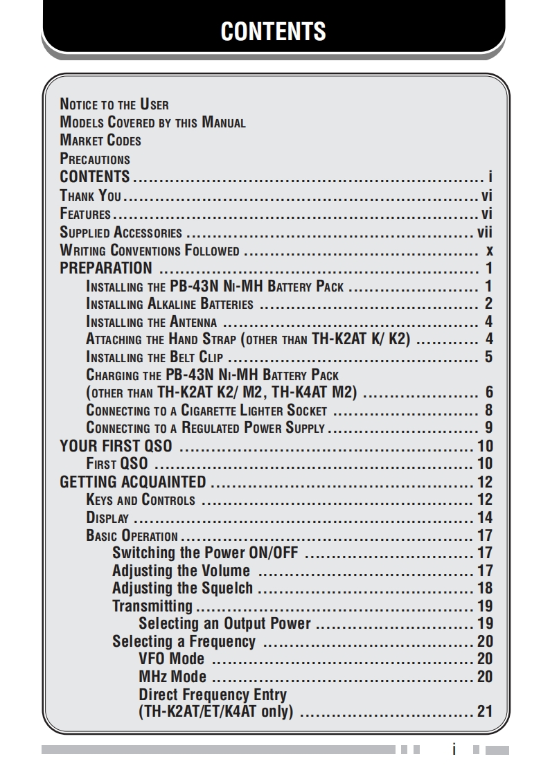 thk2-k4-series_使用说明书手册找手册网31天前发布关注私信1.23MB154页048thk2-k4-series_使用说明书手册此内容为付费资源,请付费后查看¥19¥21黄金会员免费钻石会员免费登录购买付费资源 第1页 / 共154页 第2页 / 共154页 第3页 / 共154页 第4页 / 共154页 第5页 / 共154页 第6页 / 共154页 第7页 / 共154页 第8页 / 共154页 第9页 / 共154页 第10页 / 共154页 试读已结束,还剩144页,您可下载完整版后进行离线阅读 THE END建武 文本预览 INSTRUCTION MANUALKENWOOD欢阳9144MHz FM TRANSCEIVERTH-K2ATTH-K2ETH-K2ET430MHz FM TRANSCEIVERTH-K4ATTH-K4EKENWOOD CORPORATION©B62-1696-00(K,K2,E,E3,M,M2)09080706050403020100 查看更多 收起部分 喜欢就支持一下吧收藏