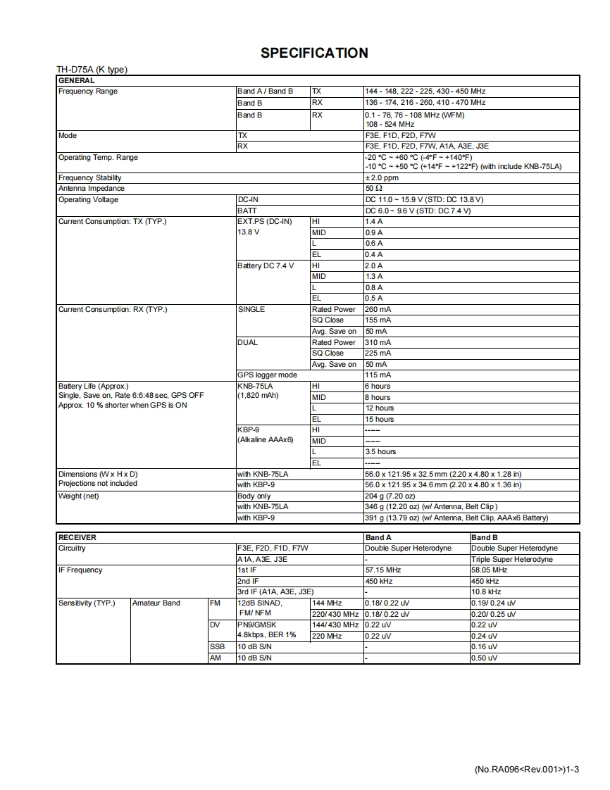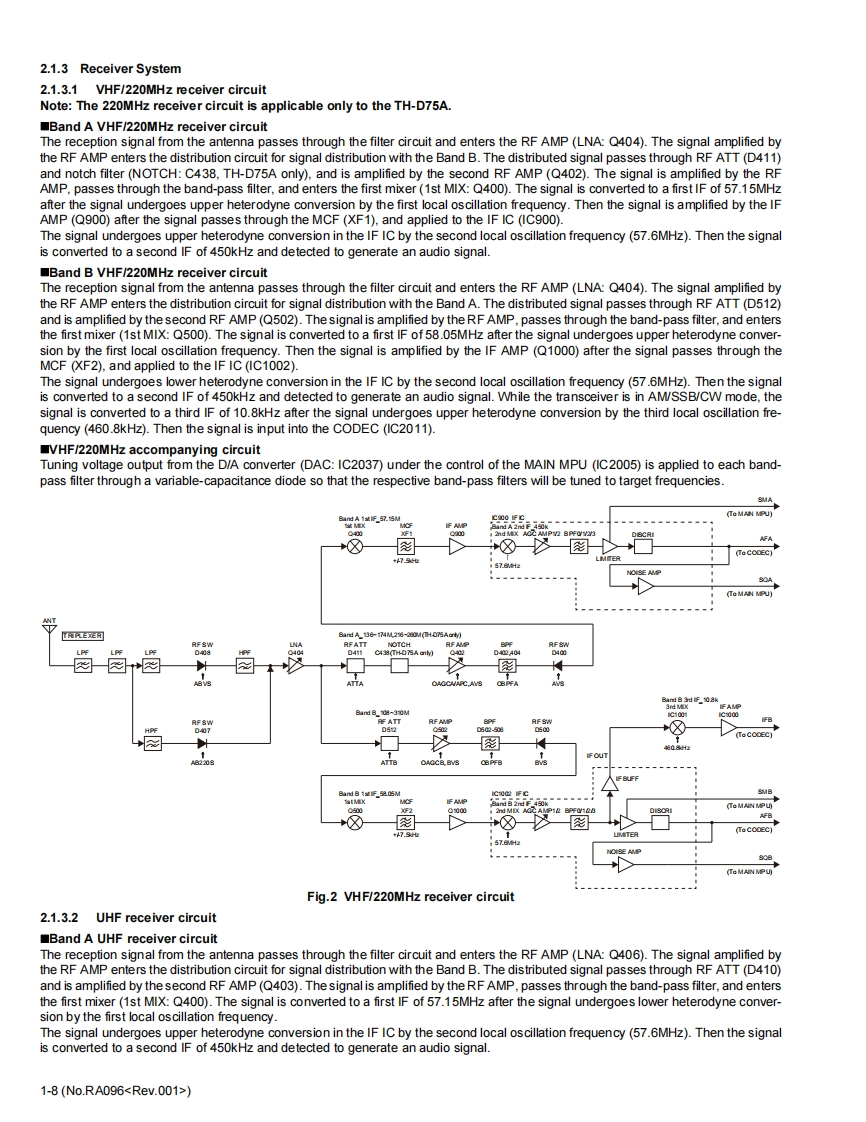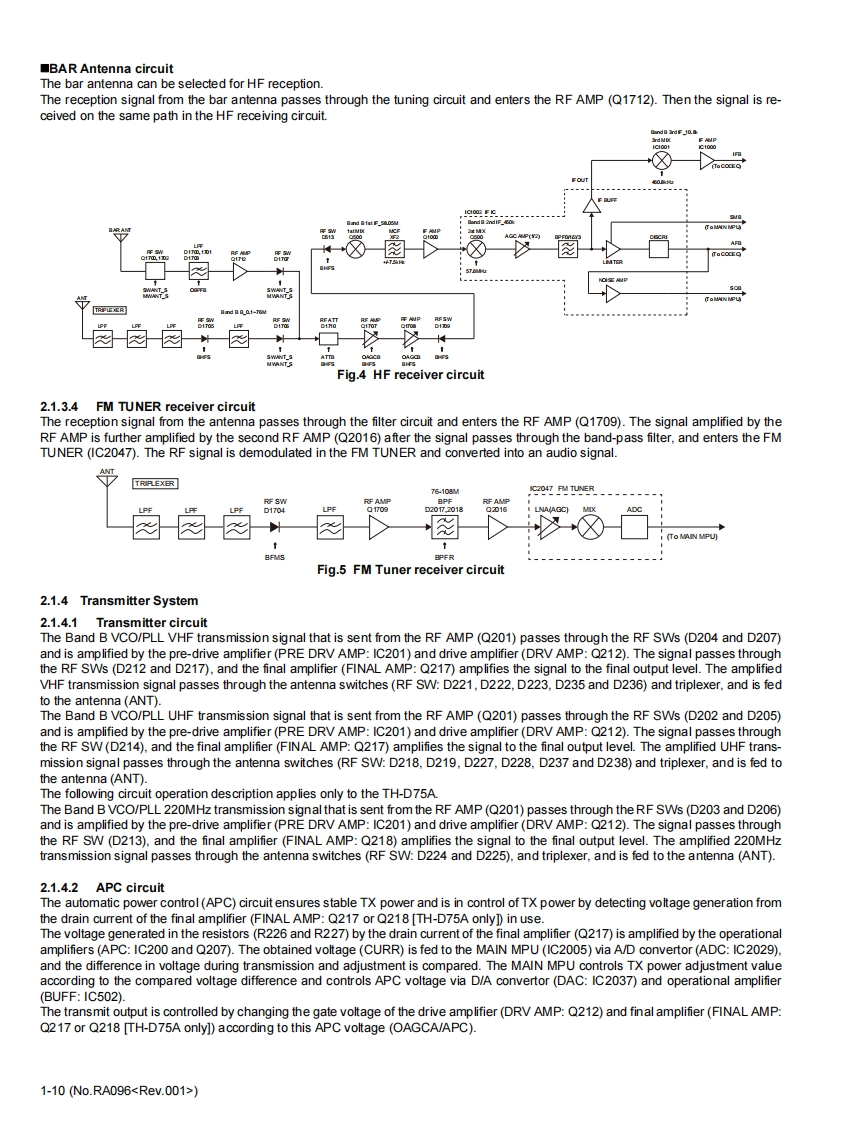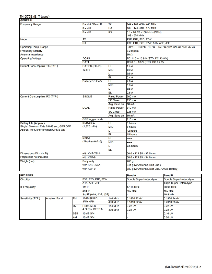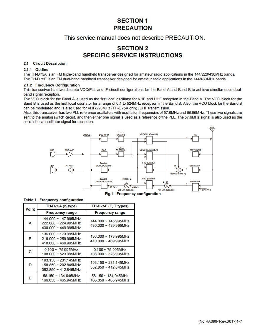 KENWOODSERVICE MANUAL144/220/430MHz TRIBANDER,144/430MHz DUAL BANDERTH-D75A.TH-D75EKENWOODTH-D75TABLE OF CONTENTS1PRECAUTION.........................................................................1-72SPECIFIC SERVICEINSTRUCTIONS......................................................1-73DISASSEMBLY1-274ADJUSTMENT.......................................................................1-325TR0 UBLESH00TNG............................1-68LFThis product complies with the RoHS directive for the European market.This product uses Lead Free solder.B5B-7364-00COPYRIGHT 2024 JVCKENWOOD CorporationNo.RA0962024/1