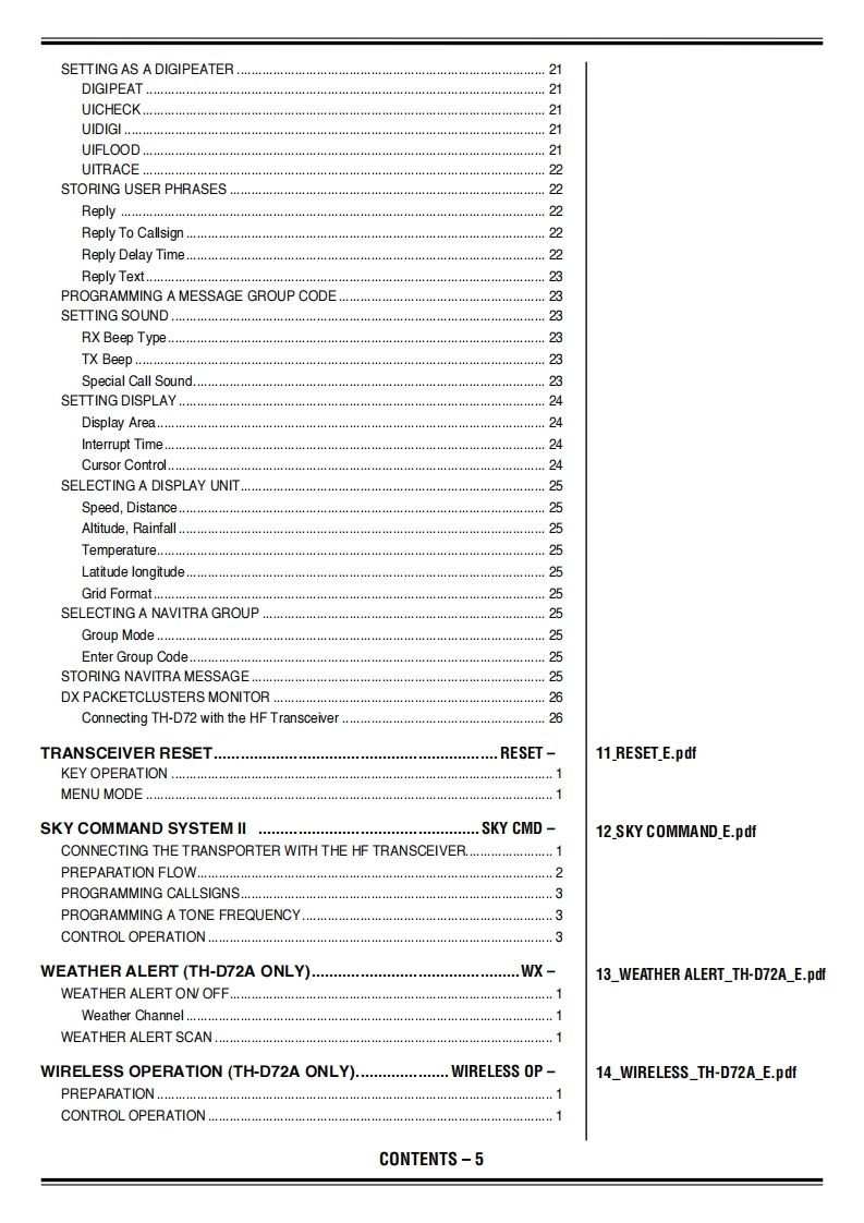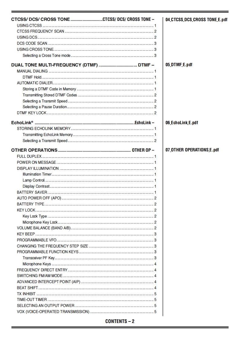thd72ae_advanced找手册网31天前发布关注私信6.85MB75页027thd72ae_advanced此内容为付费资源,请付费后查看¥19¥21黄金会员免费钻石会员免费登录购买付费资源 第1页 / 共75页 第2页 / 共75页 第3页 / 共75页 第4页 / 共75页 第5页 / 共75页 第6页 / 共75页 第7页 / 共75页 第8页 / 共75页 第9页 / 共75页 第10页 / 共75页 试读已结束,还剩65页,您可下载完整版后进行离线阅读 THE END建武 文本预览 KENWOODINSTRUCTION MANUAL144/440 MHz FM DUAL BANDERTH-D72A144/430 MHz FM DUAL BANDERTH-D72EVersion:1.05JVC KENWOOD Corporation 查看更多 收起部分 喜欢就支持一下吧收藏